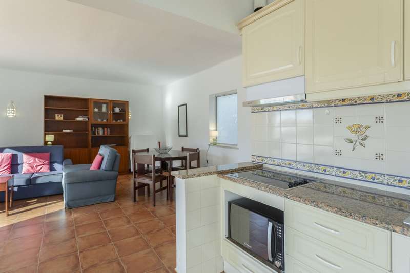Excellent duplex apartment, with sea views and close to the beach in Porches, Algarve. On the first floor, we have an entrance hall, a pantry, a small kitchen in open plan with the living room with fireplace and large windows that provide plenty of natural light, and access to the spectacular and large terrace. On the upper floor there are the two bedrooms and a bathroom. This duplex is located in a prestigious residential area, with various services available within walking distance, such as access to swimming pools, mini-golf, exercise courts, generous leisure areas, gardens, a restaurant-bar and access to Praia Nova of Porches. Due to its excellent location, this duplex could be an excellent investment opportunity. It is within walking distance of beaches and all the services for everyday life, and just 45 minutes from Faro International Airport. CHARACTERISTICS:Useful area: 86 m2 | 926 sq ft Bedrooms: 2 Bathrooms: 1 Energy efficiency: D FEATURES: 2-bedroom Duplex Equipped kitchen Fireplace Terrace