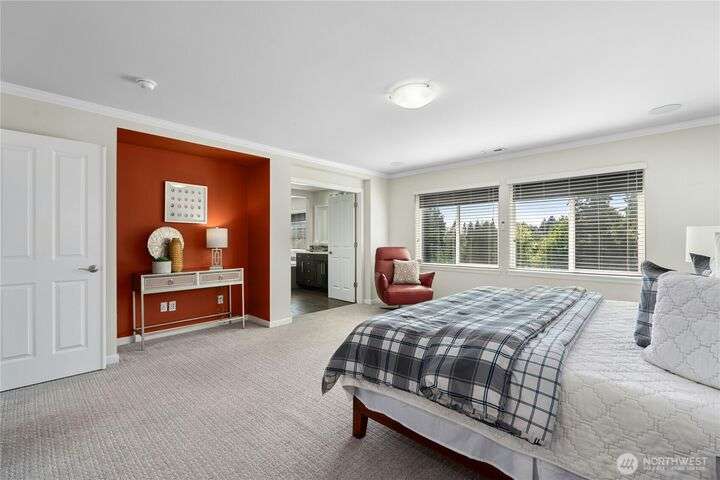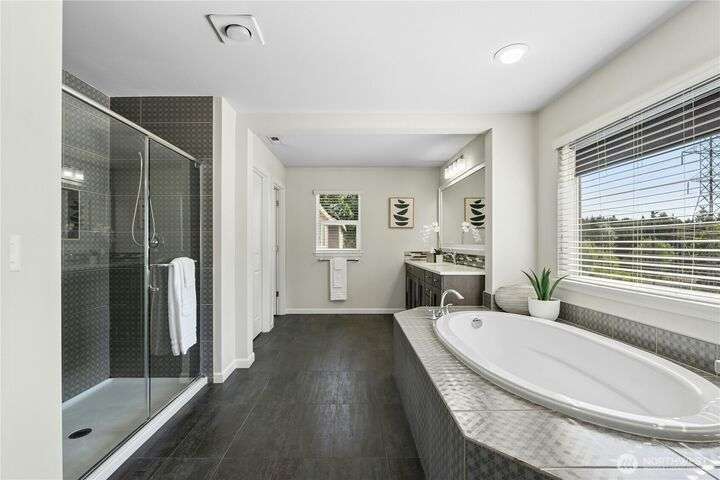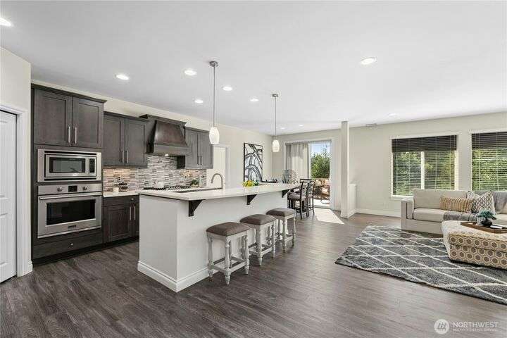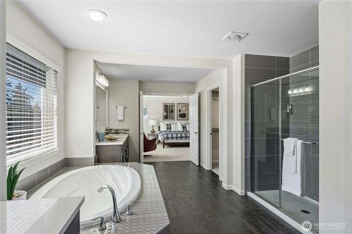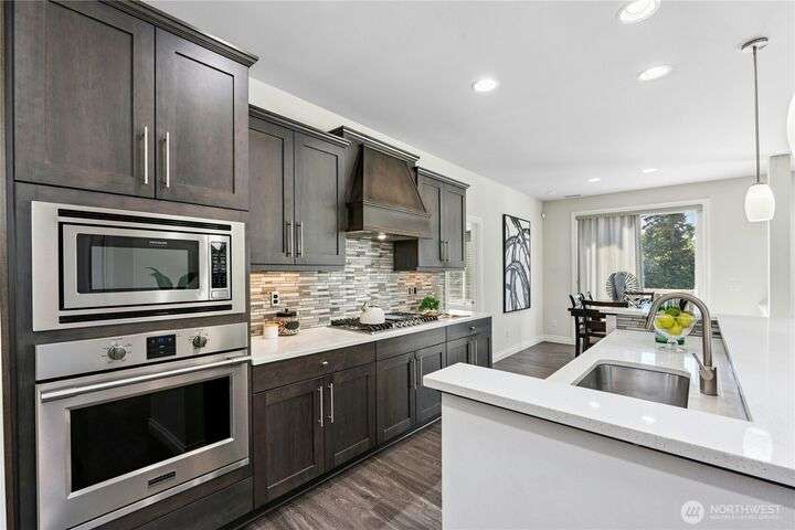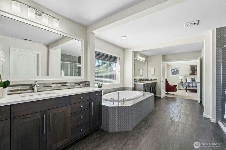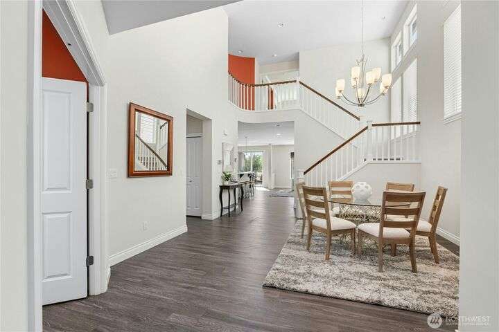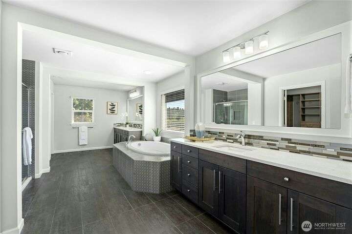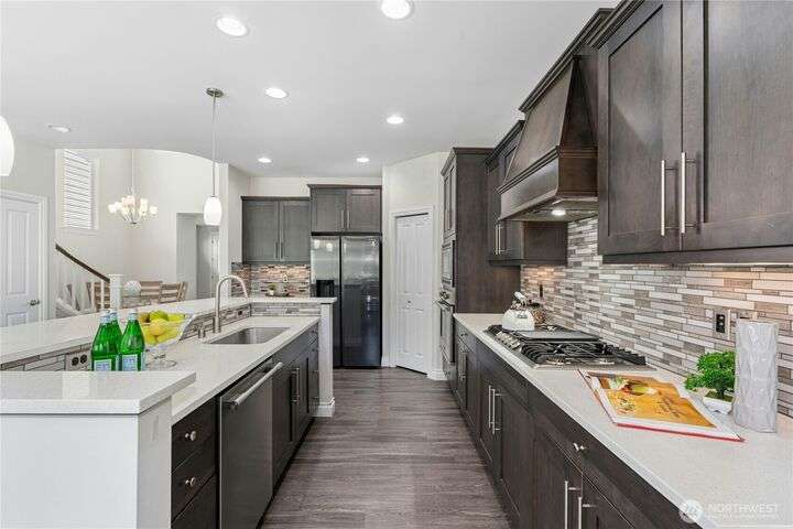 Located in the desirable Vinterra community, this east facing upgraded 5-bedroom home with an office blends style and function. Enjoy a gourmet kitchen with walk-in pantry and upgraded custom countertops, flooring, carpet, and stonework throughout the house. The main level features a private mother-in-law suite with en suite bath and separate entrance. Upstairs offers a luxurious primary suite with 5-piece bath and walk-in closet, three additional bedrooms, a full bath, and a bonus room. Smart features include smart blinds, speakers in the living and bonus rooms, EV charger, and security system with remote locks.