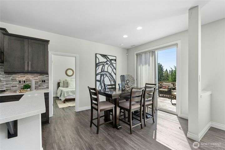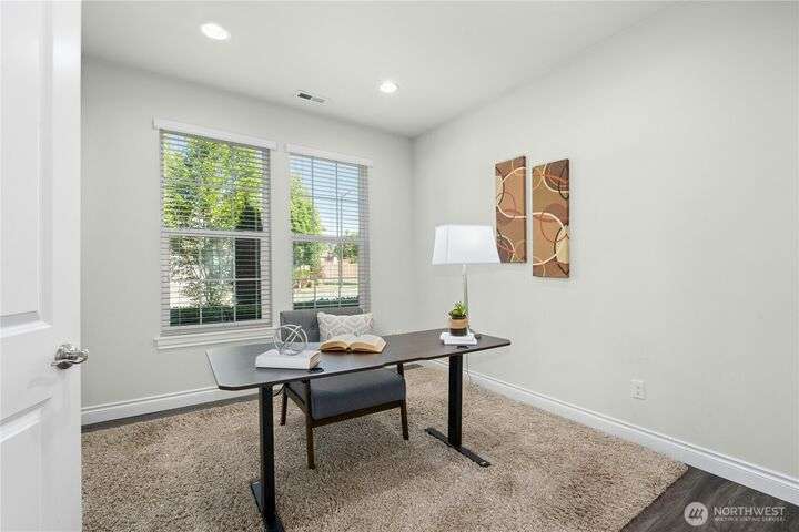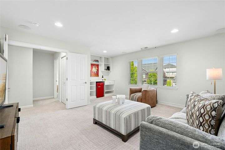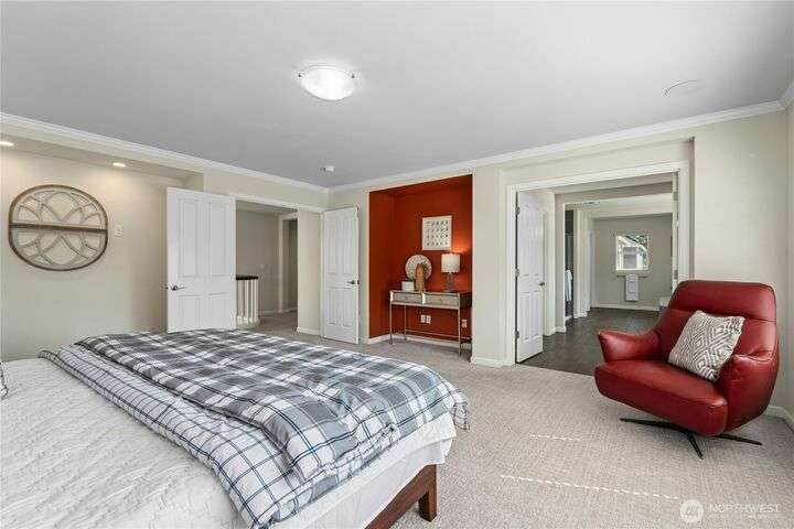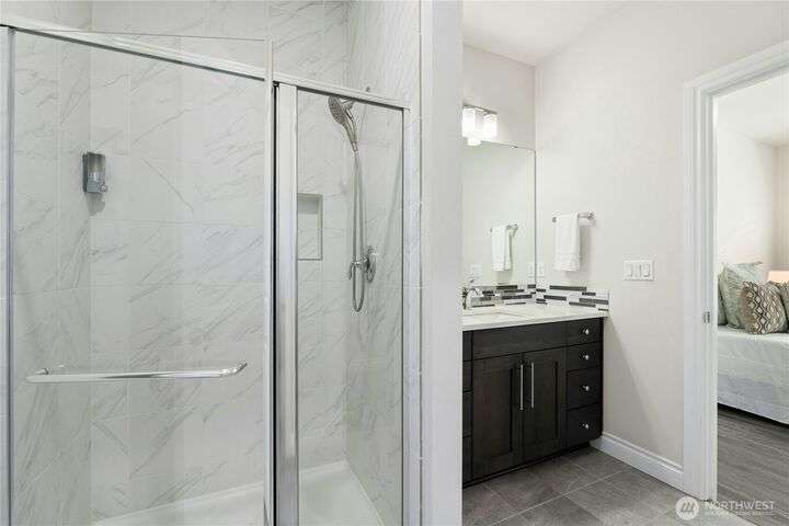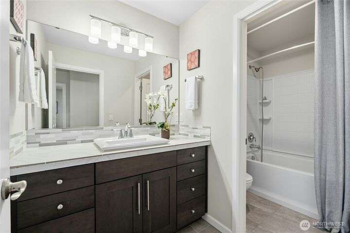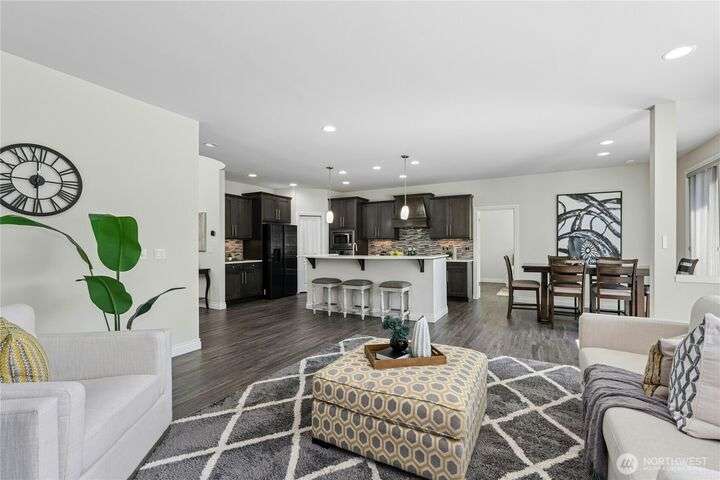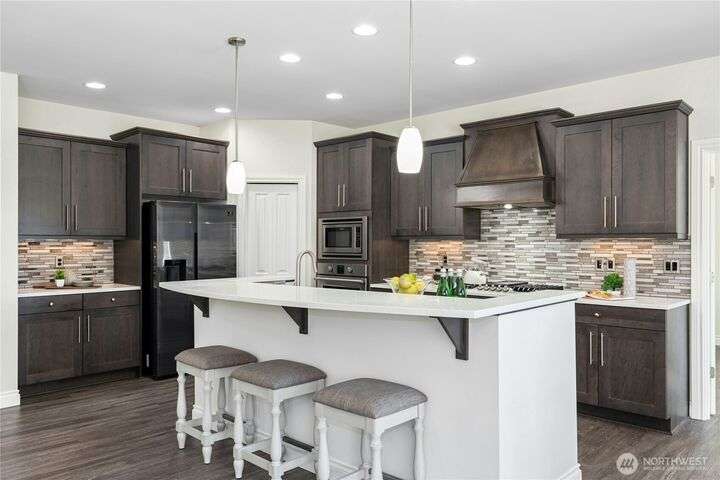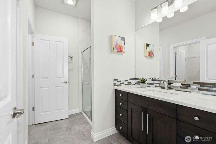Located in the desirable Vinterra community, this east facing upgraded 5-bedroom home with an office blends style and function. Enjoy a gourmet kitchen with walk-in pantry and upgraded custom countertops, flooring, carpet, and stonework throughout the house. The main level features a private mother-in-law suite with en suite bath and separate entrance. Upstairs offers a luxurious primary suite with 5-piece bath and walk-in closet, three additional bedrooms, a full bath, and a bonus room. Smart features include smart blinds, speakers in the living and bonus rooms, EV charger, and security system with remote locks.