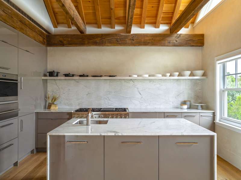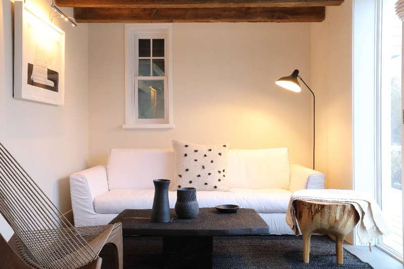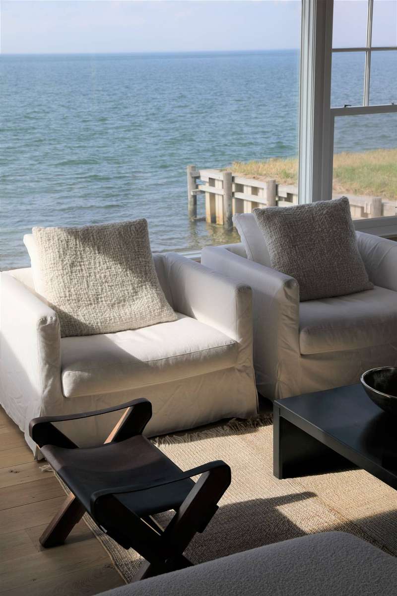 Perched on the water's edge, this recently transformed waterfront house features a timeless design and the luxury of a private beach overlooking the tranquil Gardiners Bay. Imagine leisurely lunches with your feet in the sand, swimming just steps away and watching wide open sunsets day after day.This unique offering includes the .22 acre adjacent lot providing space for a pool and guest house.The main level blends antique wooden beams with sleek Venetian plaster complemented by an abundance of natural light. Every detail, inside and out, is state of the art and has been incorporated to contribute to a feeling of quiet luxury and complete comfort. Natural landscaping from the dunes to the entrance ensures your privacy. A comprehensive list of systems and fittings, as well as a recent survey and certificate of occupancy are available. The home has deservedly garnered attention in multiple design publications. Private showing by appointment.10LazyPointRoad.com