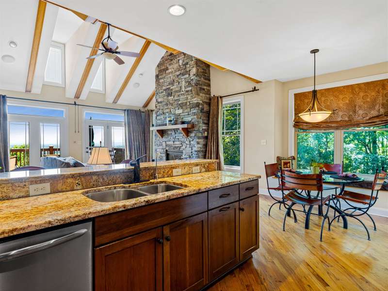 The views from this beautiful home will take your breath away. Sit on one of the 3 decks & enjoy majesticmountain views. The Biltmore House is in clear view! In the winter, you can see downtown Asheville. Youwill notice the exceptional quality & attention to detail all through this home. Walk into a large foyer& vestibule, enjoy the large, designer kitchen, gather in the great room with soaring ceilings & stonefireplace & enjoy family gatherings in the dining room. The primary bedroom has a wall of windows so youwake up to the sun rising over the mountains. There are two guest bedrooms, a bath & another deck on theupper level. The basement level has another stone fireplace, family room, office/4th bedroom, laundryroom, lots of storage & another large deck to enjoy outdoor living. The 3.26 acre lot is wooded andserene.