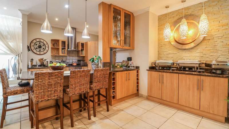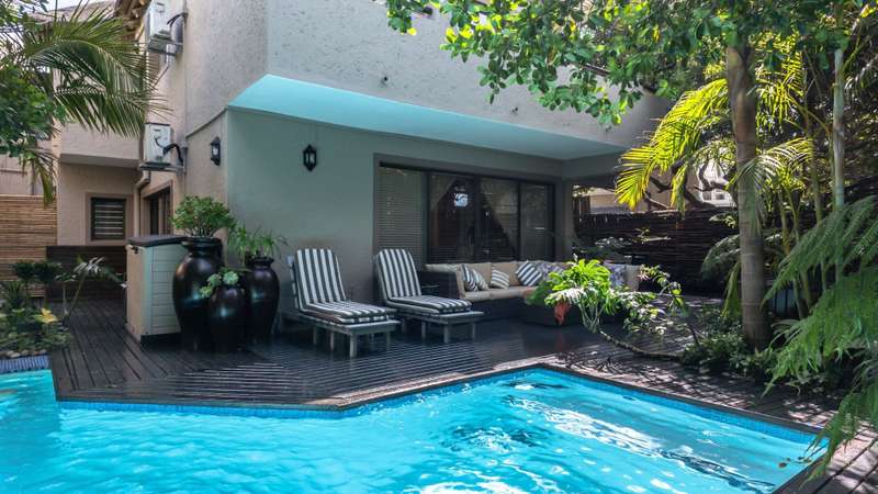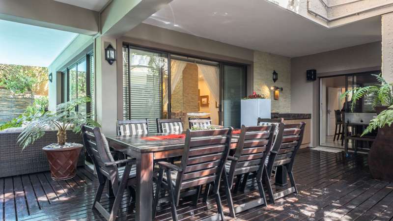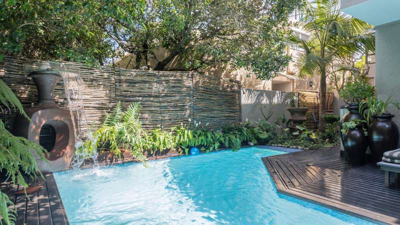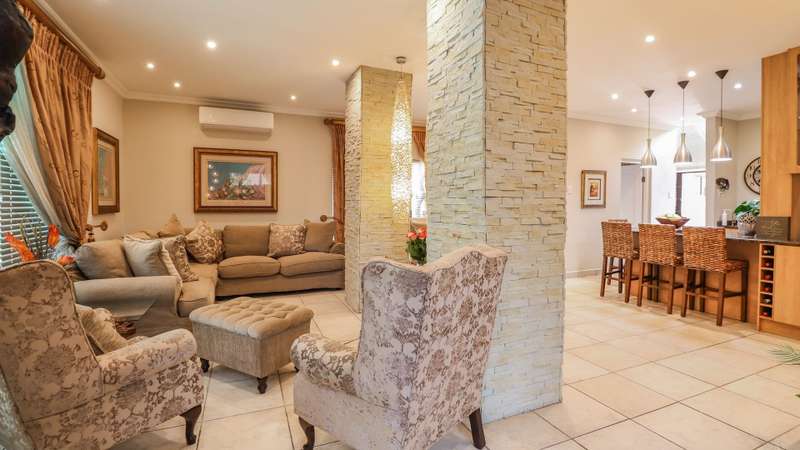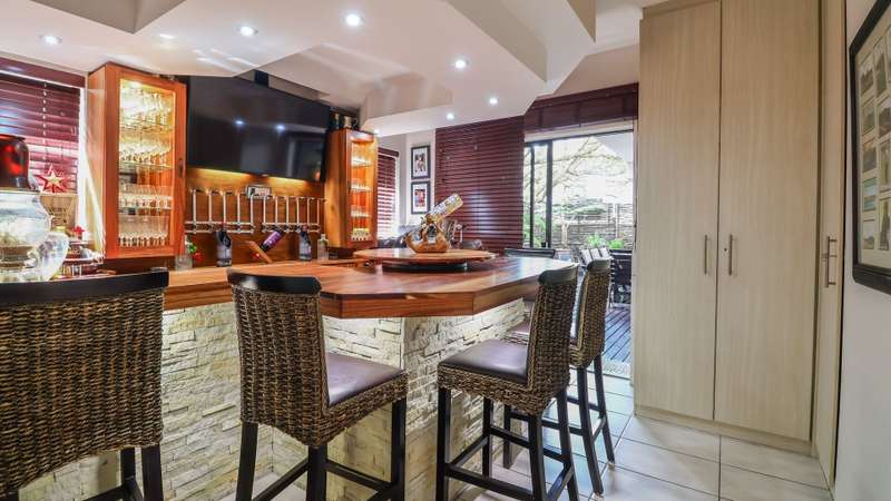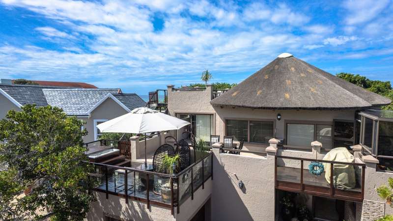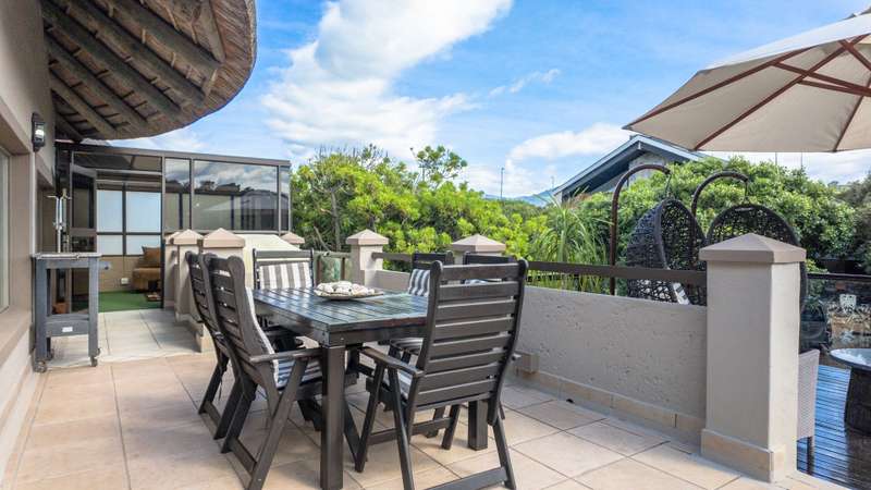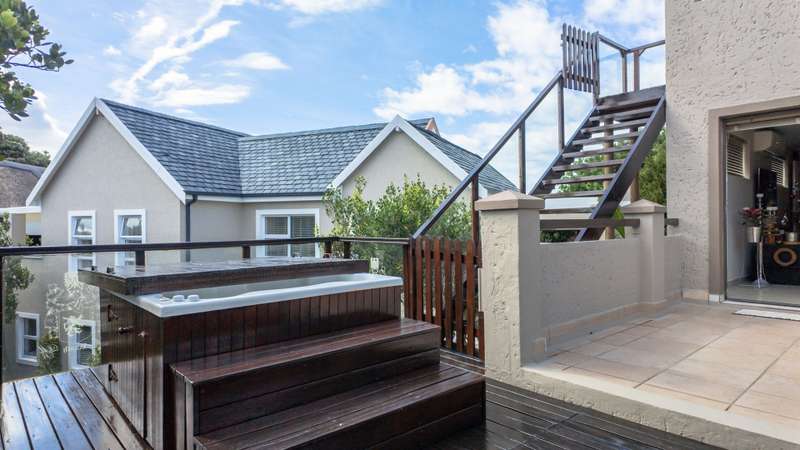 Discover the epitome of elegance in this exclusive four-bedroom, four-bathroom home located within the prestigious Wilderness Garden Estate, just 100 meters from the beach. A true entertainer's dream, this high-end property offers spacious living with premium amenities for a refined coastal lifestyle. Sold with the furniture included (With exception of a few personal items). Key Features: Ground Level: A modern, entrance hall with lovely staircase and chandelier leading to the first floor. A spacious, open plan kitchen with separate scullery, flows seamlessly into a stylish living area with cozy dining room and lounge, opening on both sides onto a wooden deck, with a beautifully manicured garden and heated swimming pool with a tranquil waterfall feature. A lovely Ladies Bar, leading out onto the deck, with built in braai. Two guest bedrooms with access to a well-appointed bathroom. Double automated Garages The first level offers: A large main bedroom with en-suite bathroom. Built for privacy, this room opens onto a deck with stairs leading up to a roof top terrace. A second bedroom with en-suite bathroom boasts its own patio. A second lounge/TV room with coffee station and small kitchen, leads out onto a large deck area, with Jacuzzi, ideal for entertaining. A Glass Sunroom retreat with en-suite bathroom, perfect for cozy winter days, this can serve as an additional bedroom or a peaceful relaxation space. Staircase to the stunning rooftop terrace with sea view. The perfect spot for sundowners with the sound of the waves in the background. There's more: Inverter 5.5kw batteries Outside shower Thatch roof with fire protection Plastered ceilings & Bulk Heads Cul-de-Sac, for privacy This exceptional home in a sought-after Estate, combines style, comfort, and unmatched location, offering you the ultimate coastal lifestyle. Contact me for a viewing