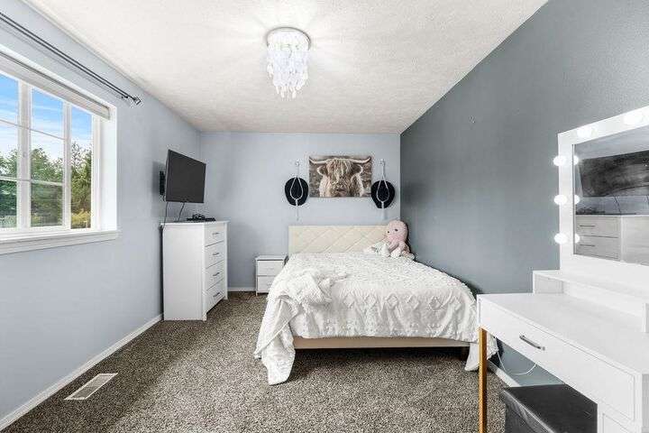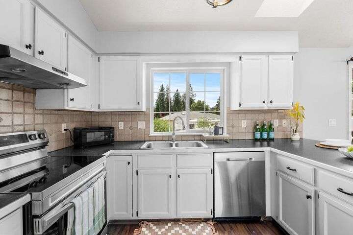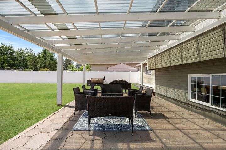 Nestled on a spacious corner lot at the end of a quiet cul-de-sac, this beautifully maintained home offers room to spread out, both inside and out. Step inside to fresh paint, vaulted ceilings, and an open floor plan that feels bright and welcoming. The large kitchen features an eating bar, ample cabinet space, a pantry, and included range and dishwasher—making it as functional as it is inviting. With four generously sized bedrooms plus a versatile bonus room, there's flexibility to fit a variety of needs—whether you’re working remotely, need a hobby space, or just want room to grow. Light pours in through vinyl windows, and the large dining area makes it easy to gather and enjoy the space. Step outside to the fully fenced backyard with a charming paver patio and pergola—ideal for relaxing or entertaining. There's even potential space for a shop in the back! Thoughtful updates and a prime location make this home a standout!