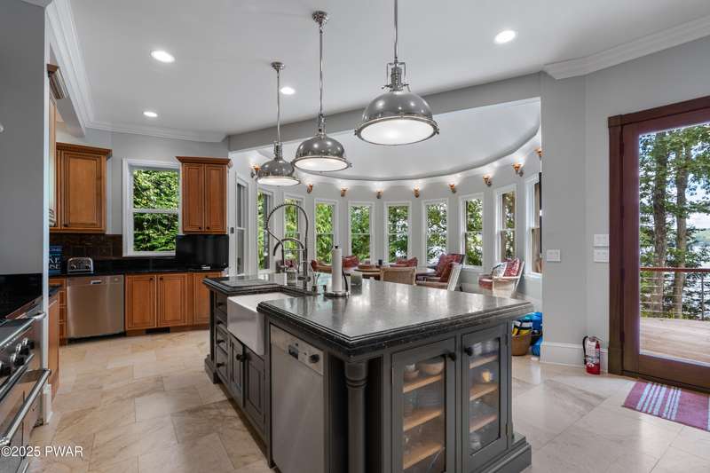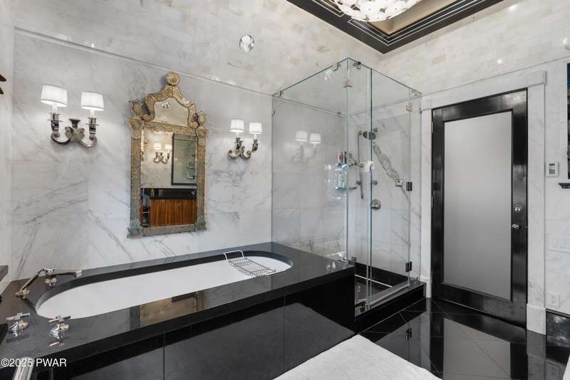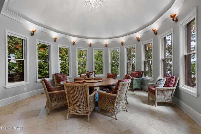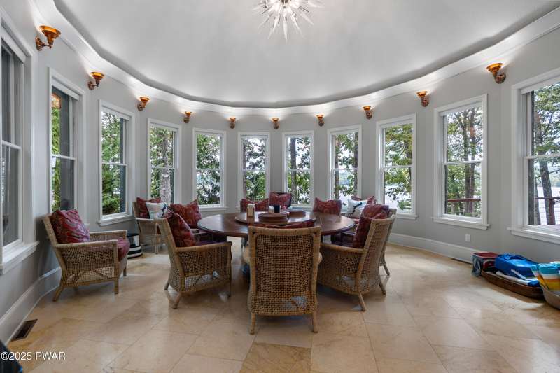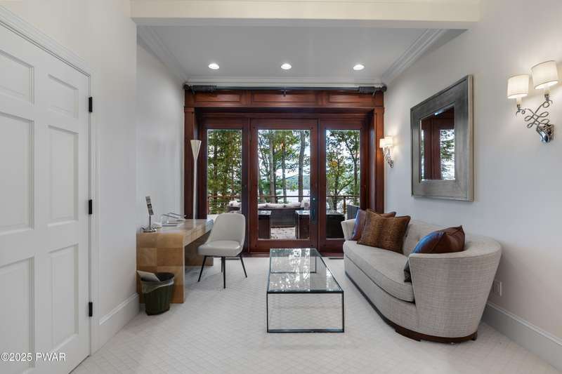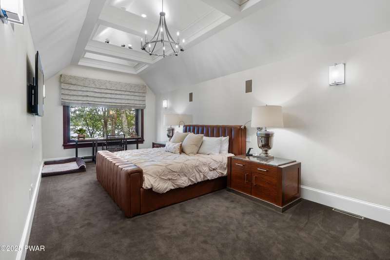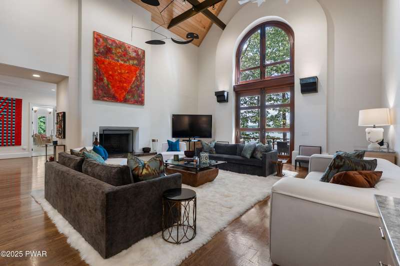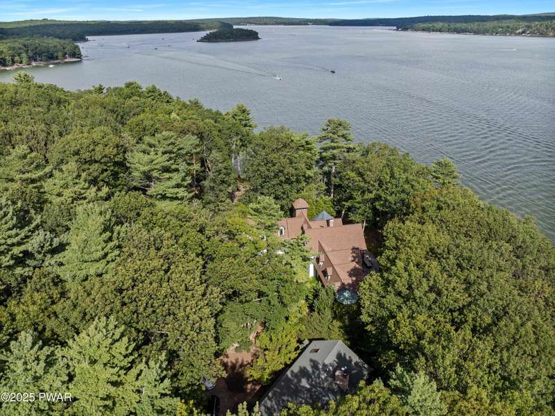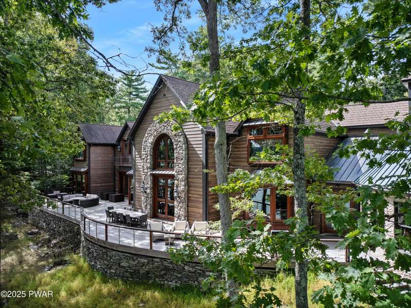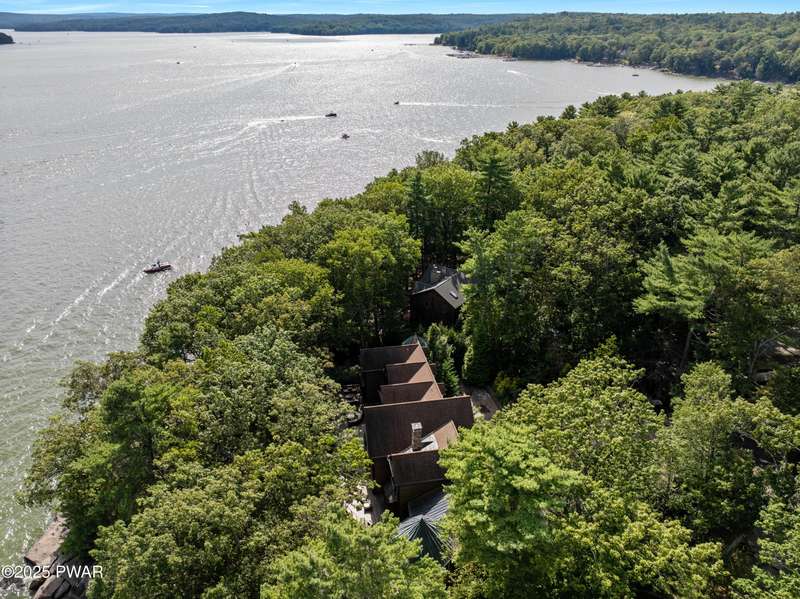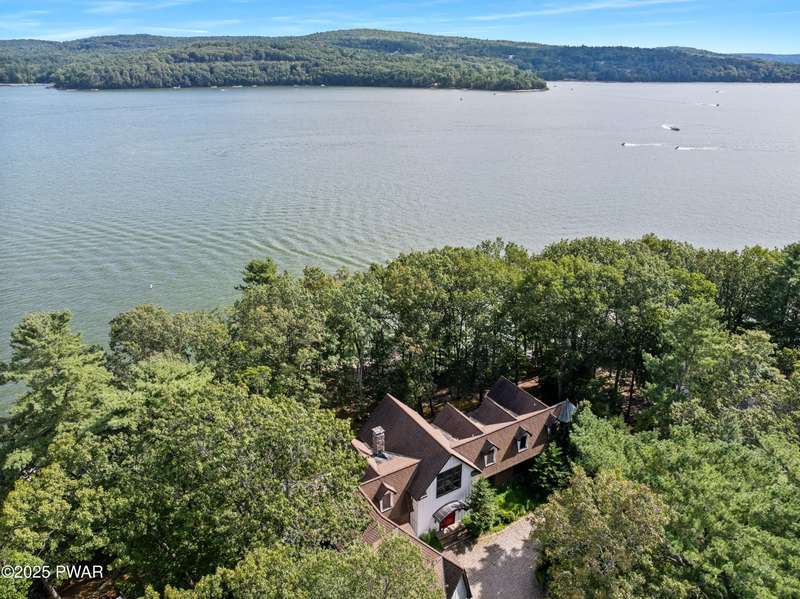 Boulder Point on Lake Wallenpaupack - A true lakefront masterpiece offering over 7,000 sq. ft. of luxury living.This remarkable home features 5 private bedroom suites and 5.5 marble-appointed baths, creating an elegant and comfortable retreat. The grand living room showcases soaring ceilings, a striking fireplace, and walls of glass doors opening to an expansive Trex lakeside deck--perfect for entertaining with unforgettable views.The chef's kitchen is a showstopper with an oversized island, sunlit dining nook, and top-of-the-line appliances. A formal dining room, office/den, and numerous thoughtful details complete the main level.Outdoors, enjoy nearly 200 feet of level, wooded lake frontage, ideal for peaceful mornings or evenings by the fire. An attached 2+ car garage, custom stonework, impeccable landscaping, a gated paver driveway, and additional parking add to the appeal.Privately situated in one of Lake Wallenpaupack's most prestigious communities, Boulder Point offers the ultimate combination of luxury, privacy, and lakeside living.