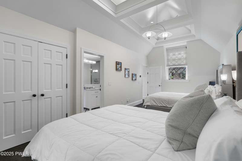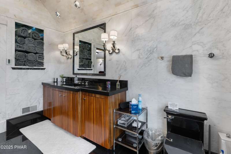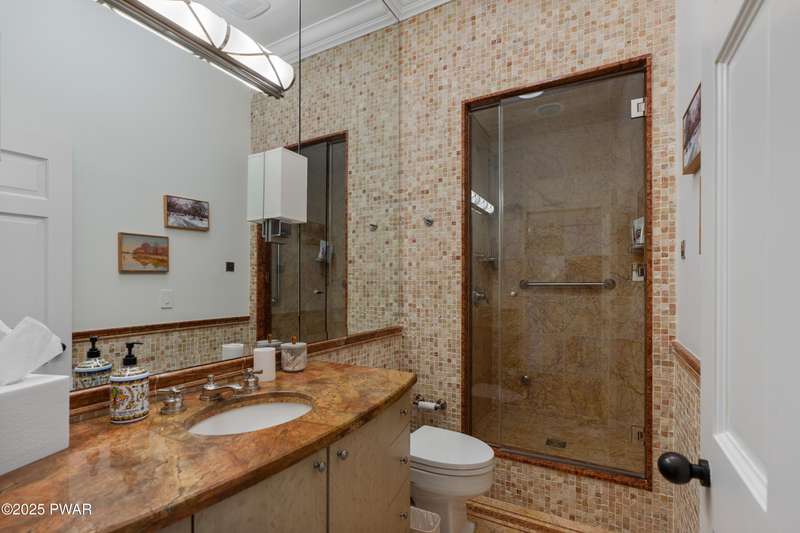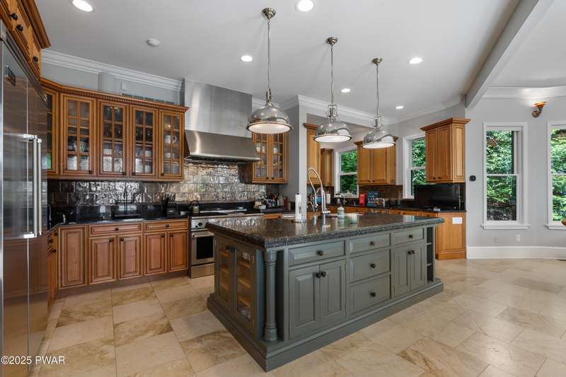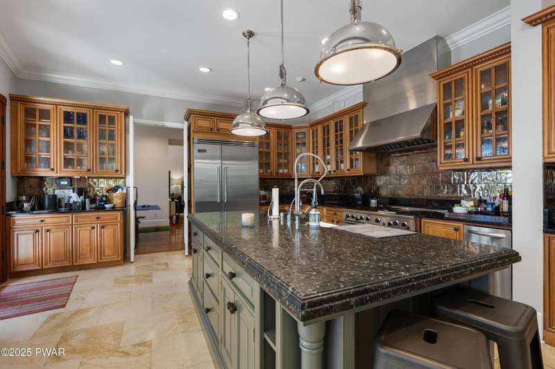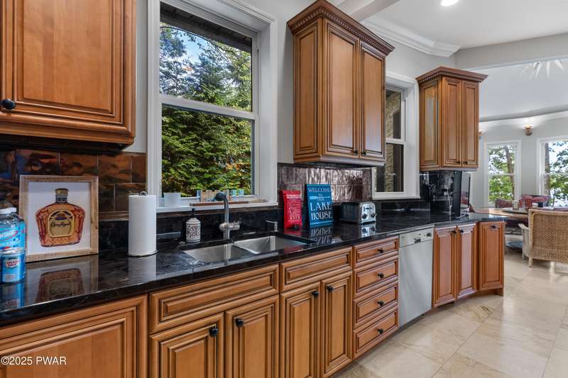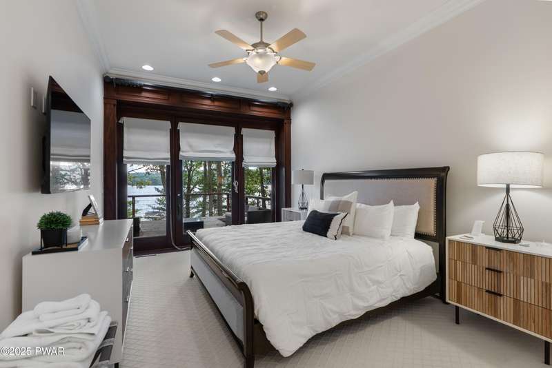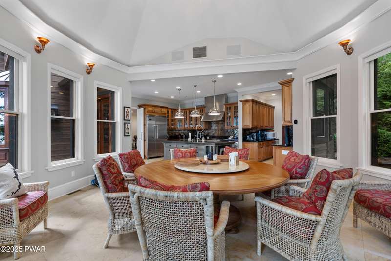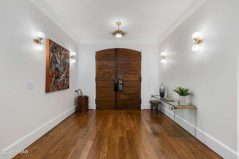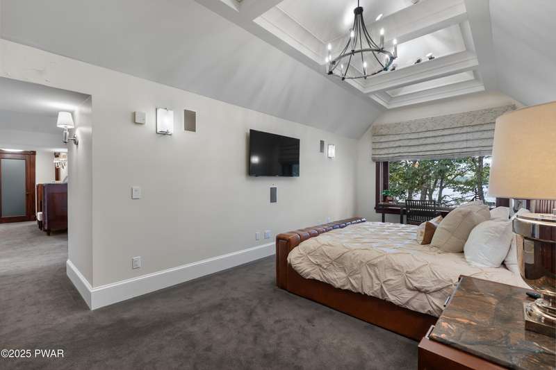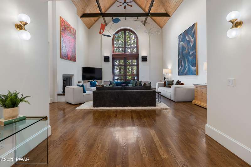 Boulder Point on Lake Wallenpaupack - A true lakefront masterpiece offering over 7,000 sq. ft. of luxury living.This remarkable home features 5 private bedroom suites and 5.5 marble-appointed baths, creating an elegant and comfortable retreat. The grand living room showcases soaring ceilings, a striking fireplace, and walls of glass doors opening to an expansive Trex lakeside deck--perfect for entertaining with unforgettable views.The chef's kitchen is a showstopper with an oversized island, sunlit dining nook, and top-of-the-line appliances. A formal dining room, office/den, and numerous thoughtful details complete the main level.Outdoors, enjoy nearly 200 feet of level, wooded lake frontage, ideal for peaceful mornings or evenings by the fire. An attached 2+ car garage, custom stonework, impeccable landscaping, a gated paver driveway, and additional parking add to the appeal.Privately situated in one of Lake Wallenpaupack's most prestigious communities, Boulder Point offers the ultimate combination of luxury, privacy, and lakeside living.