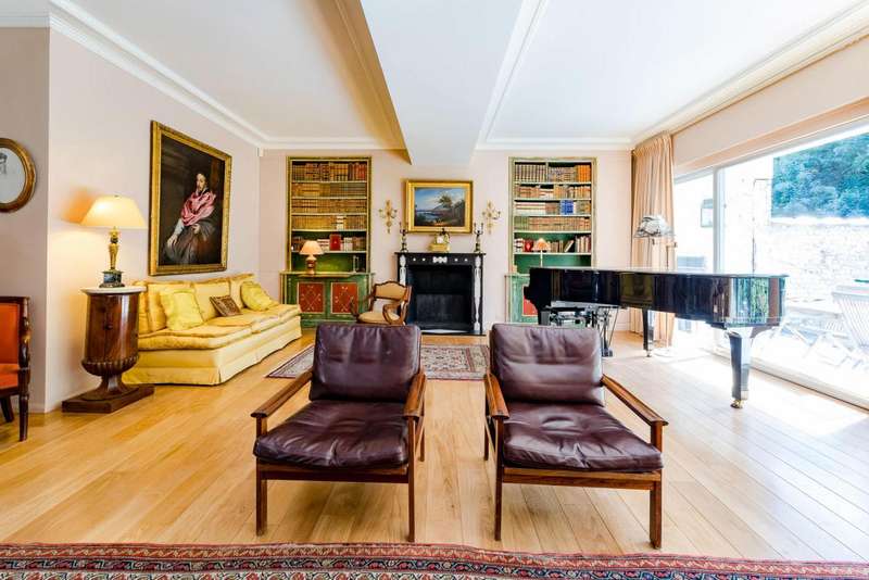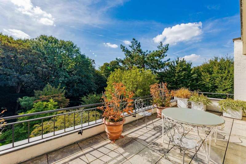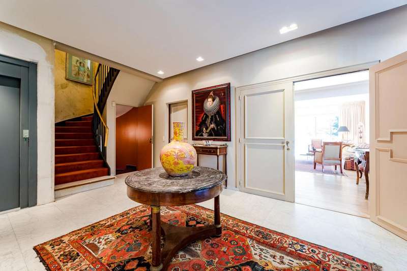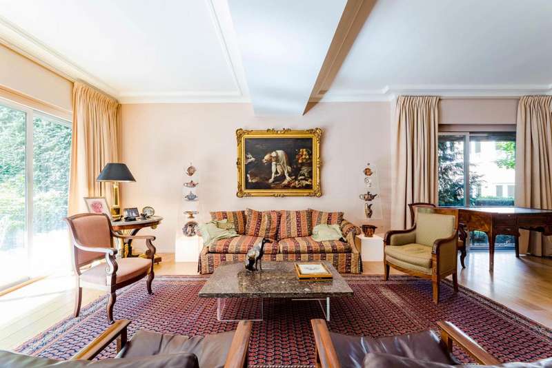 In the very exclusive Square du Bois, a beautiful house with character and a splendid south-facing garden designed by Jacques Wirtz, opening onto the Bois de la Cambre (plot of +/- 6 ares85). Living space of +/- 600 m² currently divided into two units: a duplex garden level of 400 m² and a duplex penthouse of 200 m² enjoying a beautiful panoramic terrace. Service flat (2 bedrooms, bathroom). Lift. Garage for 2 cars. PEB D