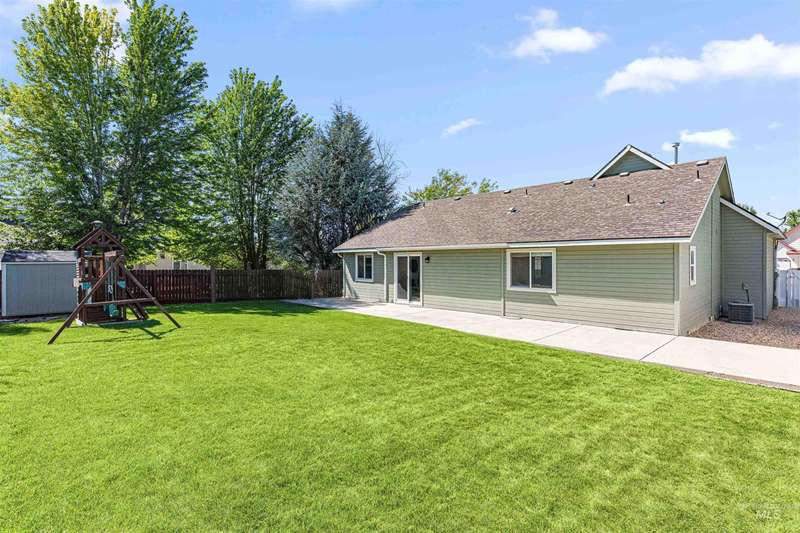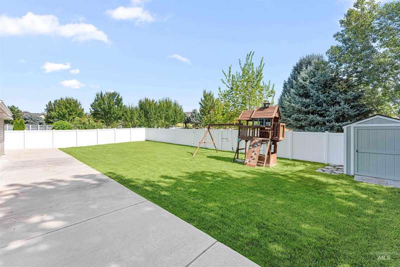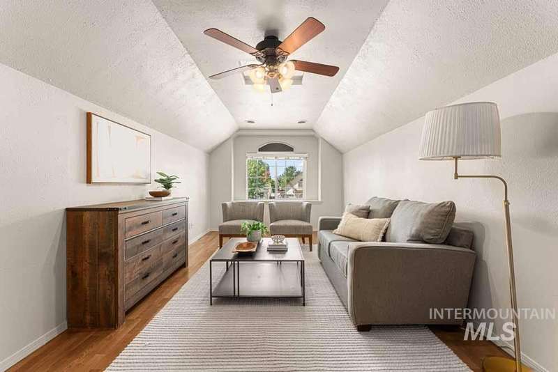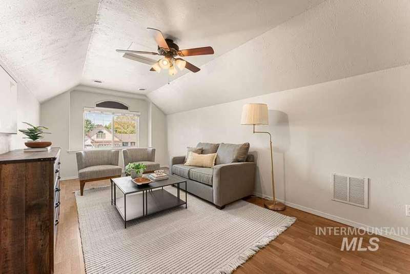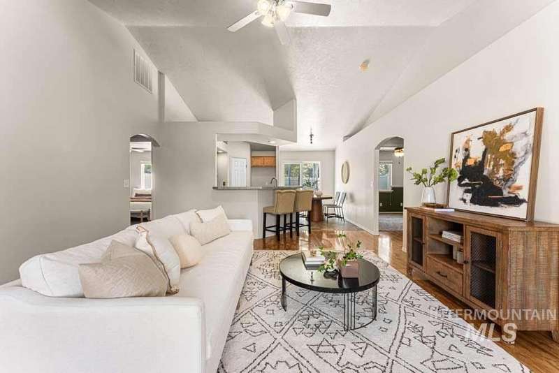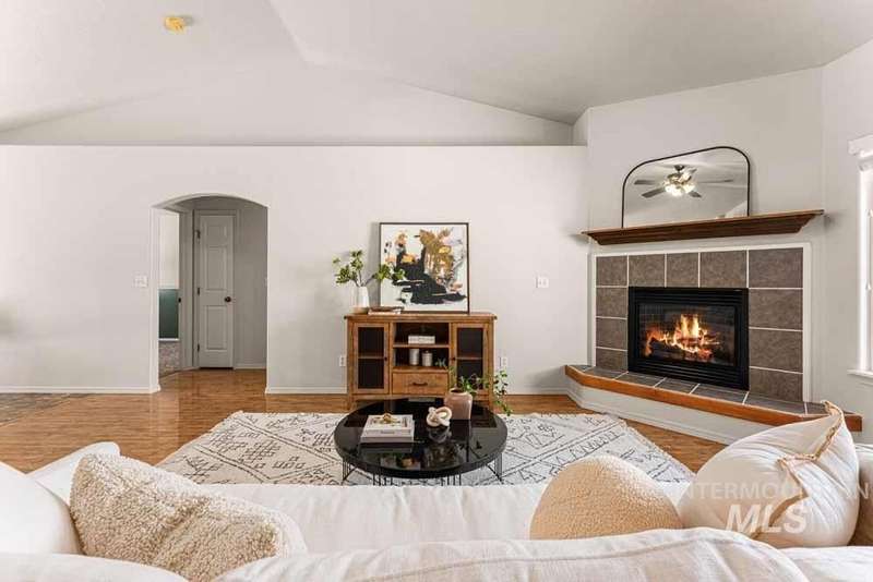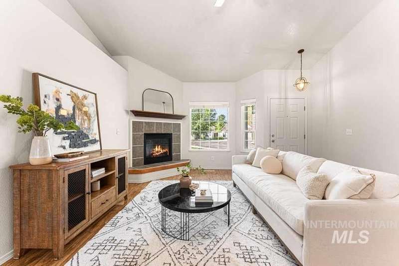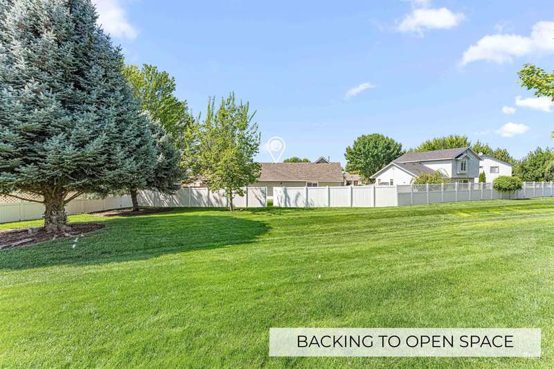 Stunning single-level home with an upstairs bonus room, nestled on a quiet South Boise cul-de-sac with direct access to open space. Inside, vaulted ceilings and a cozy stone fireplace create a warm, inviting atmosphere. Fresh interior paint and hardwood floors add a modern touch, while the kitchen features stainless steel appliances, an eat-in dining area, and seamless access to an extended patio and spacious backyard. The primary suite offers a walk-in closet, dual vanities, and private patio access. A split-bedroom layout enhances privacy and comfort, while the oversized upstairs bonus room is perfect for game nights or entertaining. Outdoors, enjoy a storage shed, charming vegetable garden, and plenty of space to relax. The garage impresses with epoxy flooring. All this, with the convenience of South Boise living - minutes from I-84, shopping, and top-rated schools.