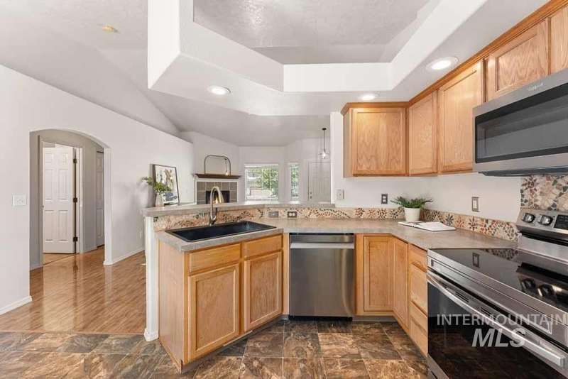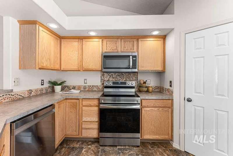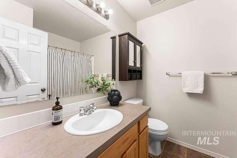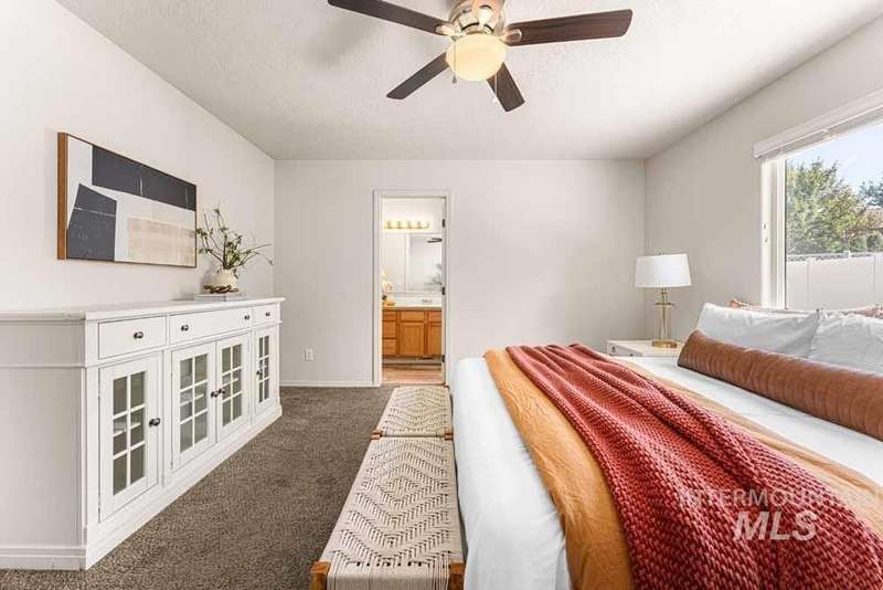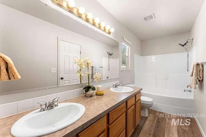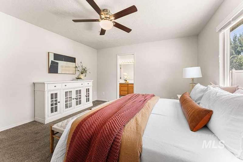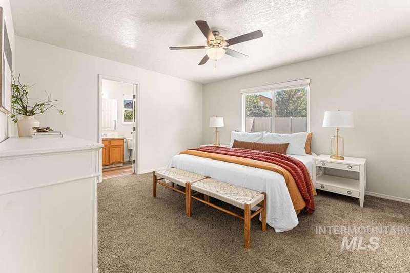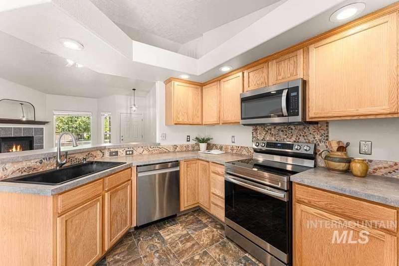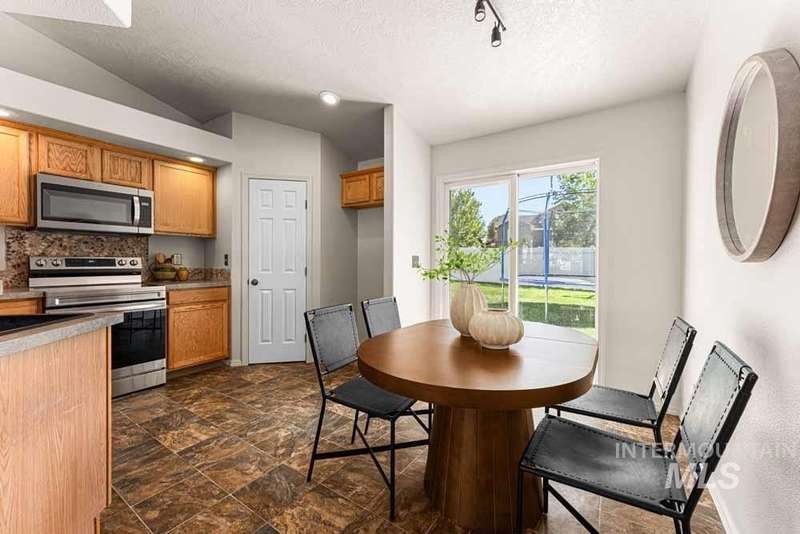 Stunning single-level home with an upstairs bonus room, nestled on a quiet South Boise cul-de-sac with direct access to open space. Inside, vaulted ceilings and a cozy stone fireplace create a warm, inviting atmosphere. Fresh interior paint and hardwood floors add a modern touch, while the kitchen features stainless steel appliances, an eat-in dining area, and seamless access to an extended patio and spacious backyard. The primary suite offers a walk-in closet, dual vanities, and private patio access. A split-bedroom layout enhances privacy and comfort, while the oversized upstairs bonus room is perfect for game nights or entertaining. Outdoors, enjoy a storage shed, charming vegetable garden, and plenty of space to relax. The garage impresses with epoxy flooring. All this, with the convenience of South Boise living - minutes from I-84, shopping, and top-rated schools.