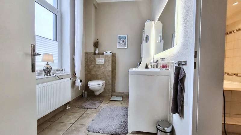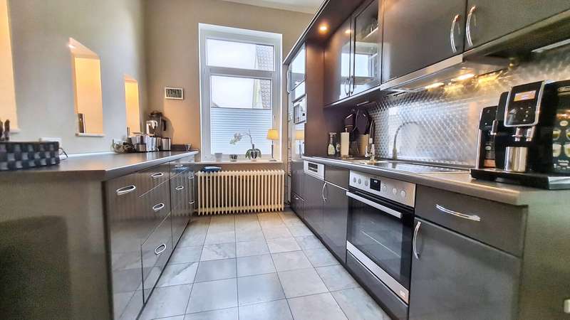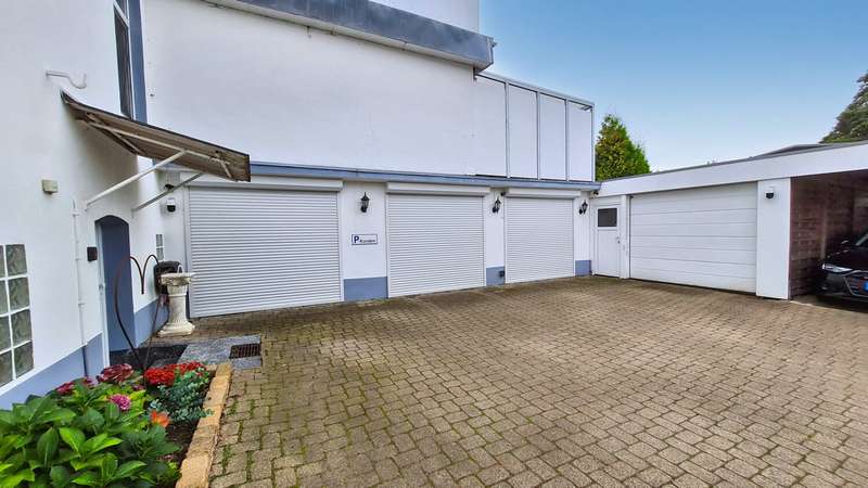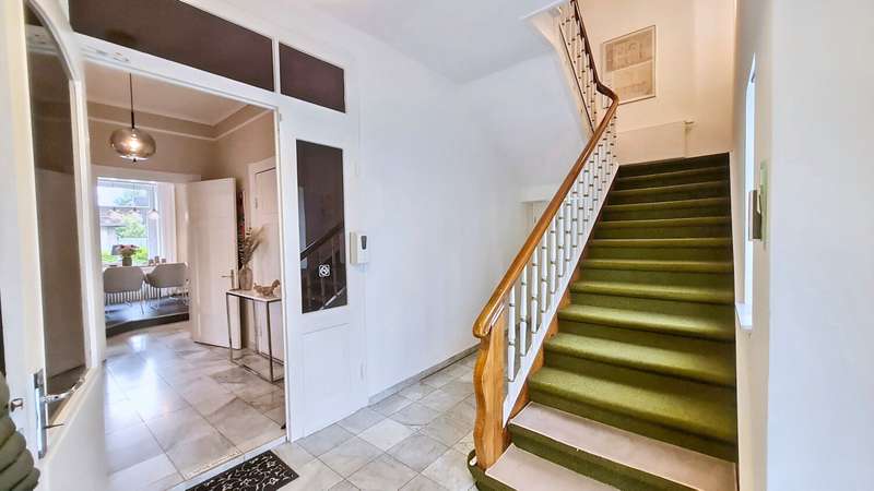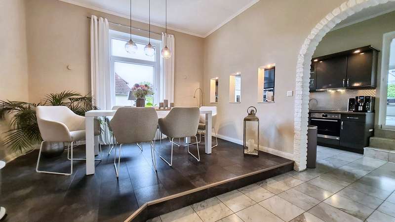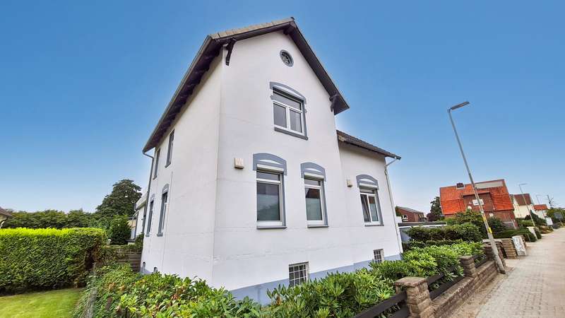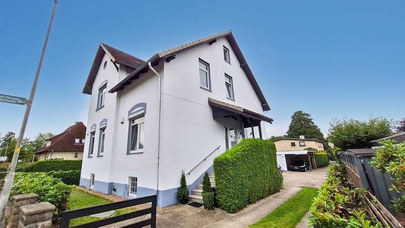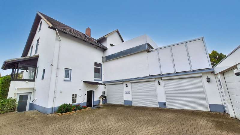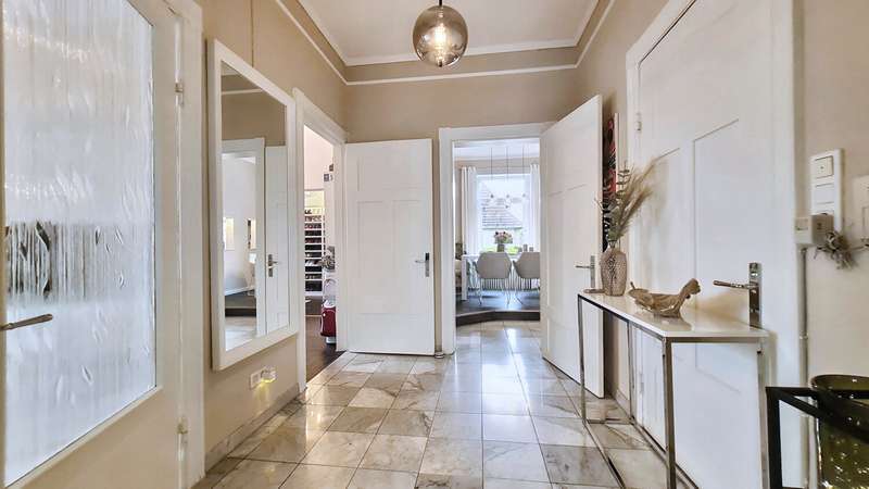 **Prestigious town villa with 1907 charm - Spacious two-family house with versatile usage options** This impressive town villa from 1907 combines historical charm with contemporary living comfort and offers a wide range of development options on approx. 201 m² of living space. The two-family house stands on a plot of approx. 653 m² in an attractive residential area and is suitable for spacious use as a single-family house or for dividing into two separate residential units. Upon entering the house, you are greeted by a well thought-out room concept: a total of nine rooms are available for individual use as living rooms, bedrooms, studies or guest rooms. The spacious living area is characterized by marble and granite floors and creates an upscale living atmosphere. A fireplace connection is prepared and offers potential for cozy hours. The kitchen on the first floor is equipped with a modern fitted kitchen and fulfills even the most demanding culinary wishes. A bathroom with bathtub on this level provides comfort, as does the modern guest WC. Two rooms on the first floor have a ventilation system. Soundproof windows installed on the street side ensure pleasant peace and quiet. The property also sets standards in terms of outdoor facilities: the low-maintenance garden faces south-west and offers both a large terrace in the garden and a covered terrace, which was modernized in 2022. In addition, a roof terrace invites you to enjoy sunny hours. The PV system increases energy efficiency and a wallbox is available for charging electric vehicles. The house offers a variety of storage and parking options: Three garages and a carport with electric door, which was installed in 2012, are at your disposal. A full basement provides additional storage space, while the loft serves as a reserve for conversion and opens up further potential uses. The living spaces can be divided up flexibly so that the house can easily be divided into two separate units - ideal for multi-generational living or as a combination of living and working. Two bathrooms, one per unit, offer sufficient privacy and comfort. The furnishings are completed by central heating (built in 2003). Built in 1907, the town villa has been regularly maintained and boasts a harmonious combination of historical details and modern furnishings. This property is a rare opportunity for anyone looking for spacious, stylish living in a traditional and sought-after location. See the many advantages of this special house for yourself during an on-site viewing and experience the unique charm of bygone times, skillfully combined with contemporary living comfort. Contact us for more information or to arrange a viewing.