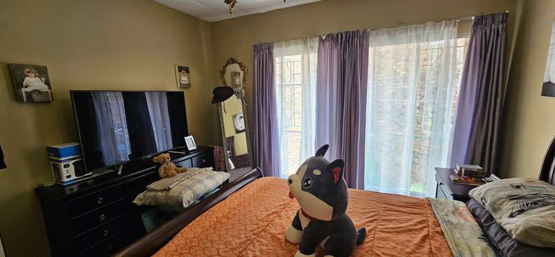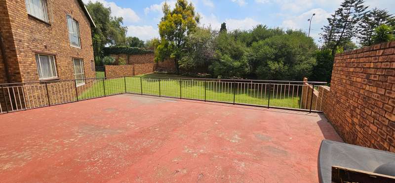 This first floor unit comprises of a spacious lounge an dining area with sliding doors that lead to a huge open patio that overlooks the well kept garden where you can enjoy the soothing sound of water and birds chirping.. The kitchen is cozy and neat with lovely cupboards. There are 3 bedrooms with built in cupboards and 2 bathrooms. Complete with 1 garage plus extra parking. This unit is fibre ready as well. Situated close to shops, schools, Alberton CBD and easy access to major roads and the highway as well. This unit is pet friendly for cats ONLY!!
