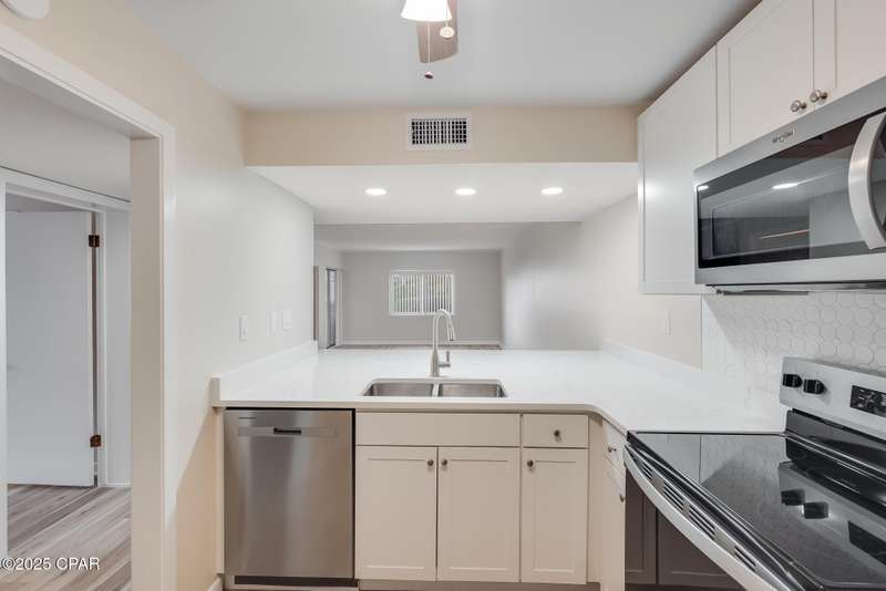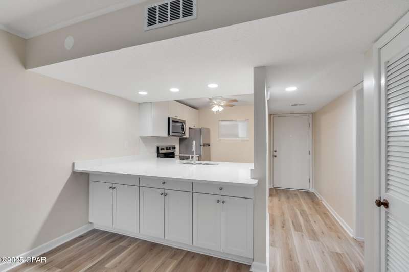 Completely renovated and move-in ready! This spacious 2-bedroom, 1-bath ground-floor end-unit condo offers the best of golf course living just minutes from the beach. Enjoy direct walkout access to a beautifully maintained lawn-ideal for relaxing or entertaining. The flexible floor plan allows for two bedrooms or one bedroom plus an office/den, perfect for remote work or hobbies. The large enclosed patio, accessible from the living room, provides extra living space year-round. Community amenities include a sparkling pool, clubhouse, and golf right outside your back door. No pets or short-term rentals permitted. Schedule your showing today and discover this perfect blend of comfort, convenience, and location!