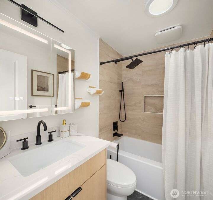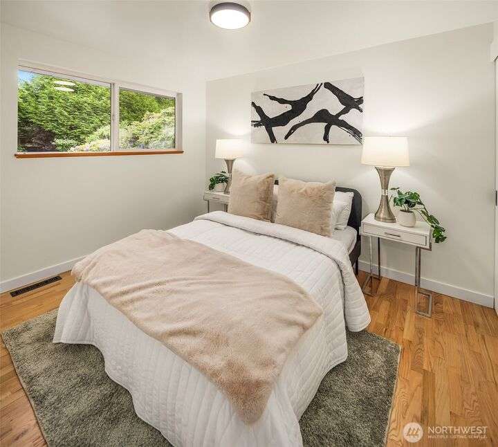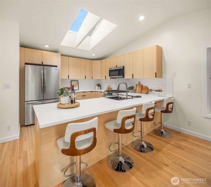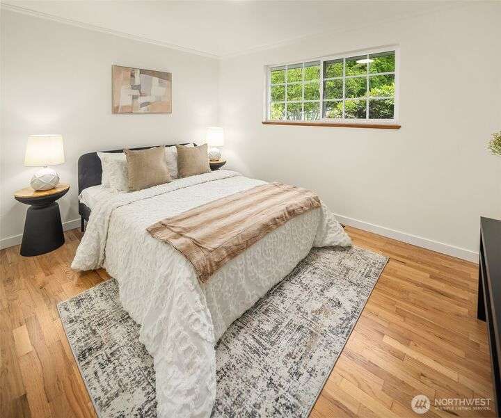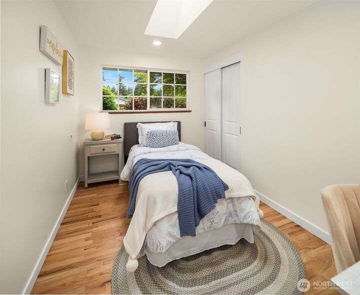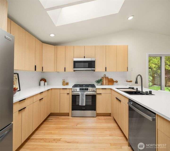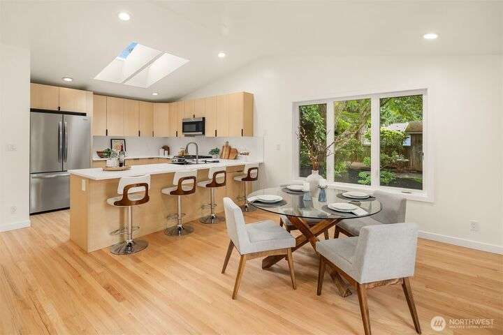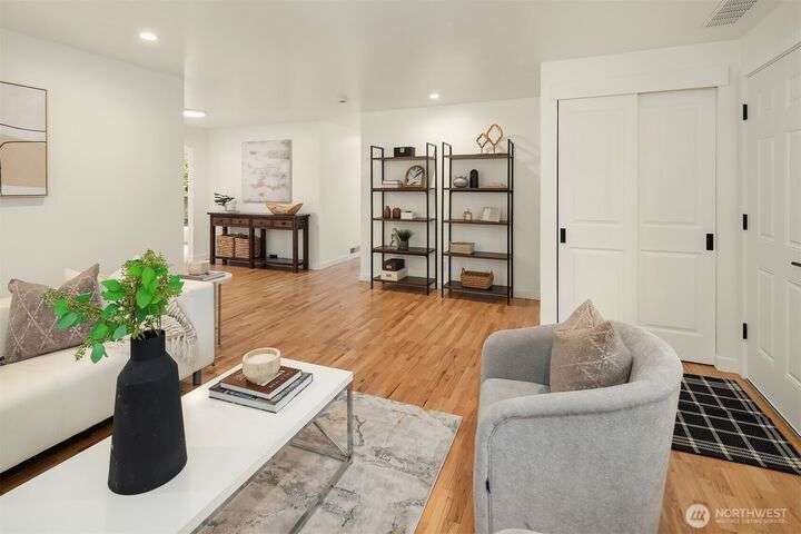 Exceptional single-level treasure in Edmonds’ desirable Forest Glen! Fully updated in 2025, this 3 bed, 1.75 bath, 1,296 SF home rests on a west-facing 9,148 SF lot with lush landscaping. Inside, vaulted ceilings, hardwood floors, and a light-filled open design await. The gourmet kitchen highlights quartz counters, stainless steel appliances, and a spacious walk-in pantry. Spa-like baths showcase designer details plus skylights, a solar tube, and expansive windows. French doors lead to a private fenced garden with irrigation, raised beds, storage shed, and more. Pre-inspected and turn-key. Conveniently located near parks, schools, restaurants, and downtown.