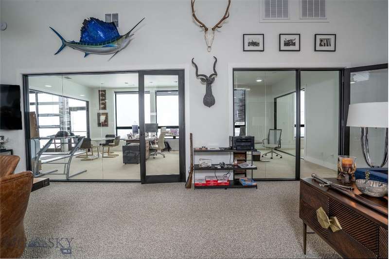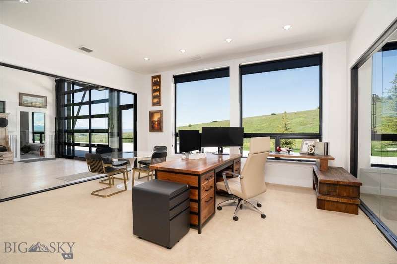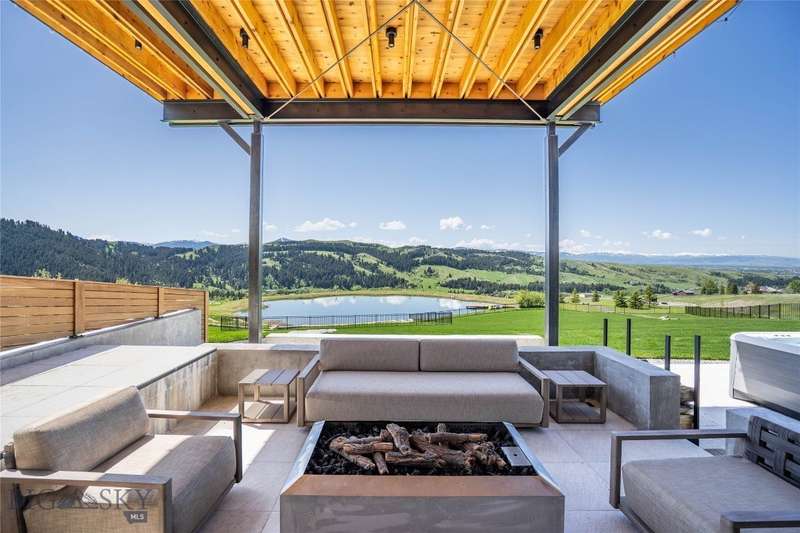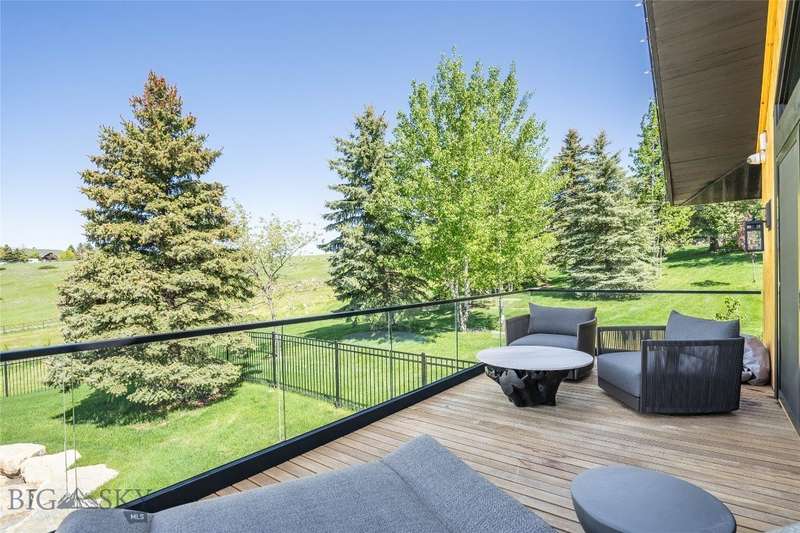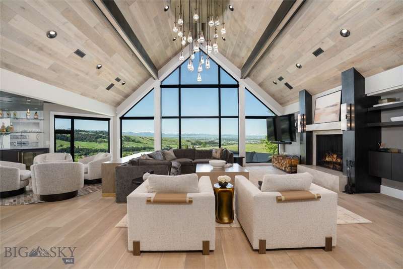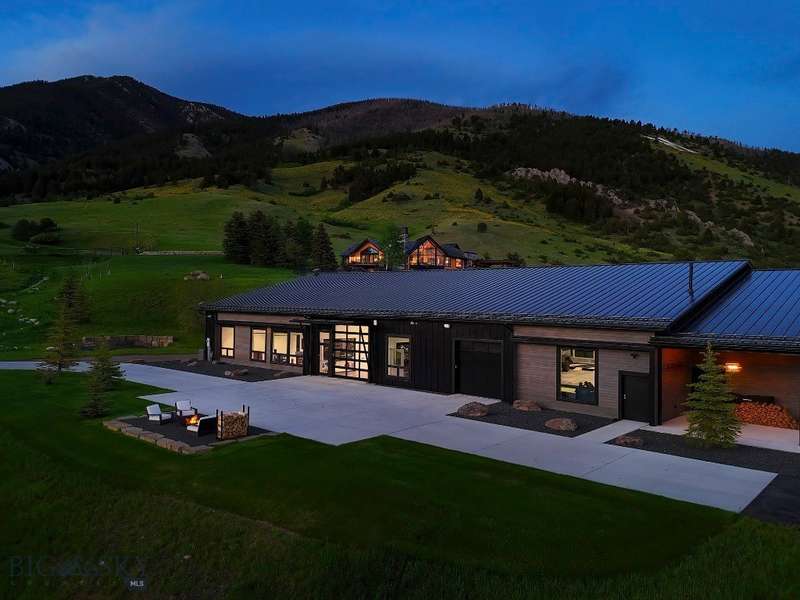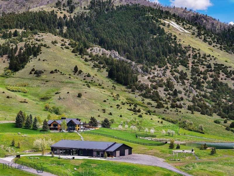 This exceptional 36.375-acre estate blends modern luxury with Montana's breathtaking landscape, just over 4 miles from downtown Bozeman. The newly remodeled 9,787 sq. ft. residence, originally built in 1989 and transformed in 2022 by NVS Architects and Villa Homes, features seven bedrooms, four and a half bathrooms, and sophisticated, thoughtful design throughout. Expansive living spaces include a state-of-the-art kitchen, theater room, gym, bonus room, dedicated dog room with outdoor access and a stunning outdoor area with a covered patio, outdoor kitchen, firepit, and astroturf dog run. The main level is anchored by a vaulted great room with expansive windows framing mountain views, a gas fireplace, and a Restoration Hardware chandelier. The kitchen is a showpiece, outfitted with high-end BlueStar appliances, a large island, and a hidden prep kitchen with Miele and True appliances-perfect for seamless entertaining. The stunning main level primary suite includes spa bath, dual walk-in closets and a private office with covered patio. The lower level offers four bedrooms, two bathrooms, a large family room with a gas fireplace, and walk-out access to a private patio and playground, creating an ideal space for guests or multigenerational living. The upper level of the home features a large media room with wet bar, two bedrooms, 3/4 bath and bonus room. Designed for year-round enjoyment, the outdoor areas seamlessly combine beauty and function. A warm mahogany deck provides a front-row seat to the mountains, while radiant heat in the surrounding tile ensures snow-free patios and walkways in winter. A 1.25-acre pond, greenhouse, heated driveways, a whole-home generator, and three gated entries with paved driveways enhance comfort and security. The 10,400 sq. ft. shop and showroom-fully redesigned in 2022-is a dream space for collectors, hobbyists, or business use. The shop features five car lifts, two gas heaters, and a dedicated workroom with a powder bath. The adjoining showroom offers an epoxy-finished floor, three stylish offices, a kitchenette, and an additional powder bath-ideal for professional operations, meetings, or displaying prized collections. With direct access to National Forest and the M Trailhead, this rare property offers the ultimate Montana lifestyle-private, convenient, and built for both adventure and elegance.