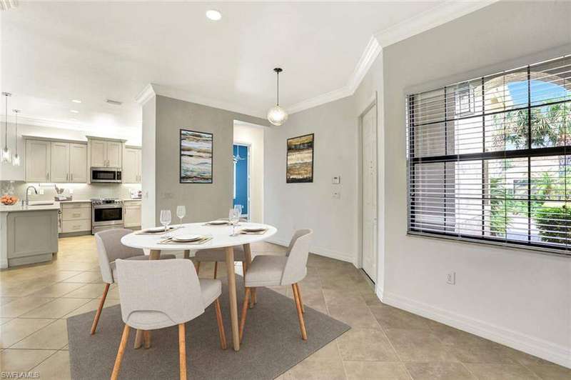 Discover comfort, style, and convenience in this beautifully maintained corner lot home in the sought-after gated community of Marbella Isles. With over 1,800 square feet under air, this light-filled home features southern and western exposures with lush, private garden views-ideal for quiet mornings and evening relaxation. Recent Updates- Custom closets in master bedroom for maximum storage and organization along with Roll-out shelves in kitchen cabinets for easy access. Garage upgrades: Epoxy-finished floor and overhead hanging storage rack. Custom cabinetry added in: Linen closets, Laundry room, and Primary bathroom for added functionality. Marbella Isles offers a vibrant lifestyle with a 9,500 sq. ft. clubhouse, resort-style pool and spa, children's water play area, and extensive indoor and outdoor amenities. Located just 3.5 miles from the beach and under 15 minutes to the shops and dining of Olde Naples, this gated community is also close to Osceola Elementary, Barron Collier High School, and The Community School. Easy access to Mercato, Waterside Shops, I-75, and SWFL International Airport ensures convenience in every direction.
