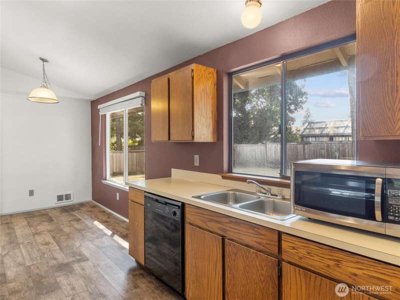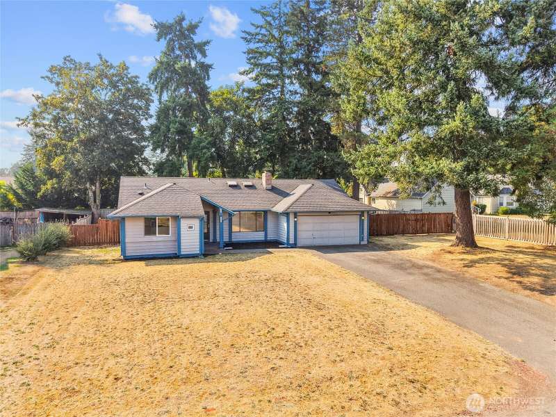 Welcome to this well-maintained 3-bed, 2-bath rambler nestled in peaceful Spanaway. The open-concept layout invites you in with vaulted ceilings and cozy fireplace, perfect for morning coffee or evening gatherings. This home features a spacious kitchen with ample cabinets and updated appliances. Retreat to the generously sized primary suite with a walk-in closet and private bath, while two additional bedrooms offer space for guests or a home office. Outside, the fully fenced backyard is equipped for summer barbecues, walking distance to community pool. New paint, fresh flooring, updated bathrooms, ready for you to move right in with peace of mind. Conveniently located just minutes from JBLM, shopping, parks, and major commutes