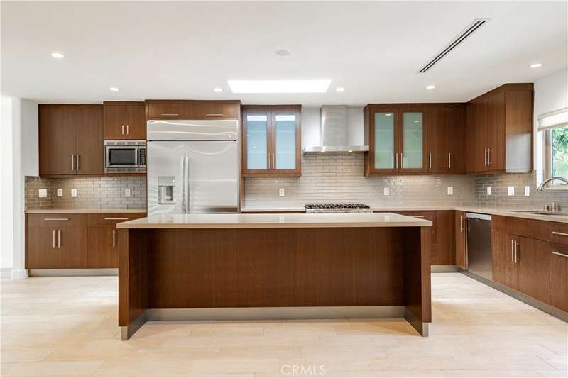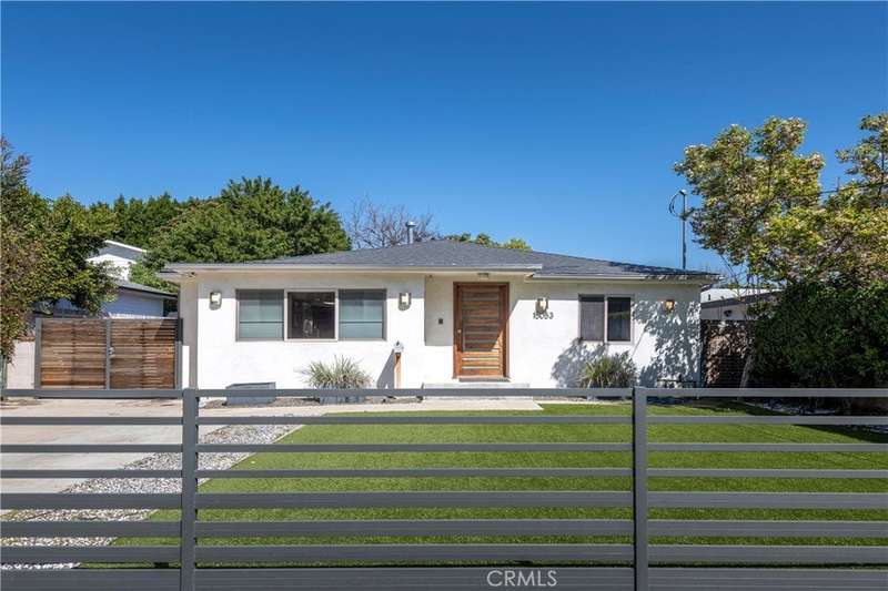 Set behind private gates in one of Sherman Oaks' most desirable south-of-the-Boulevard enclaves, this exquisitely renovated 4-bedroom, 4.5-bathroom single-level property offers the perfect blend of modern luxury and timeless design. Step inside to a sun-drenched open-concept floor plan where soaring ceilings, imported Italian porcelain tile flooring, and designer recessed lighting create an atmosphere of timeless sophistication. Beyond the living and family rooms at the heart of the home lies a gourmet chef’s kitchen, meticulously appointed with top-tier SS appliances, including a Viking Professional 6-burner range and Bosch dishwasher. Custom cabinetry with frosted glass accents, a skylight, sleek quartz countertops, classic subway tile backsplash, and an oversized center island with seating and built-in storage make this kitchen as functional as it is beautiful. The expansive primary suite is a serene retreat, complete with a cozy window seat, a professionally designed walk-in closet, and a spa-inspired ensuite bath featuring dual sinks, a jetted soaking tub, and an oversized 2-person walk-in rain shower with bench seating. Each of the three additional bedrooms is generously sized and offers its own ensuite bathroom and professionally organized closet—perfect for guests, or work-from-home flexibility. Outside, a private, beautifully landscaped backyard invites seamless indoor-outdoor living with mature fruit trees, a manicured turf lawn, and a charming patio ideal for al fresco dining and entertaining under the stars. Additional amenities include a stylish powder room, an interior laundry area with washer, dryer, and storage, 2 televisions, and dual zoned A/C. Perfectly situated minutes from the finest dining, shopping, and entertainment Sherman Oaks has to offer, with convenient access to major freeways. This is California living at its finest—schedule your private showing today. For more info or showings, please call or text Fran Chavez (818) 216-5061 or email Andrew@AndrewSpitz.com.