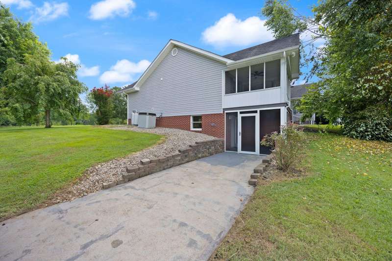Welcome home-where comfort, flexibility, and country charm come together on 1.05 acres! This spacious home offers over 3,000 sq ft of finished living space, including 1,877 sq ft on the main level & 1,200 sq ft in the finished walkout basement. The main floor features a cozy living room w/ gas fireplace, kitchen, and split-bedroom layout. Step out from the living room to a covered back porch and screened-in area w/ composite decking-perfect for relaxing outdoors. With 3-5 bedrooms, 3.5 baths, two kitchens, and two laundry areas, this home is ideal for multigenerational living, hosting guests, or rental potential. The basement includes two rooms w/ closets (no windows), second kitchen, washer/dryer hookup, and walkout access-dry and never leaked. Enjoy the above-ground pool (liner only 3years old), pool house, gazebo, and fenced backyard. A black wood fence outlines the property, adding classic country charm. You'll love the small orchard w/ apple & plum trees, blackberry bushes, and sunny garden spot. Other highlights: 2-car garage (1 door), blacktop driveway, and well water (city water to pool house/hydrant). Located on a quiet dead-end road just 7 miles west of Liberty!
