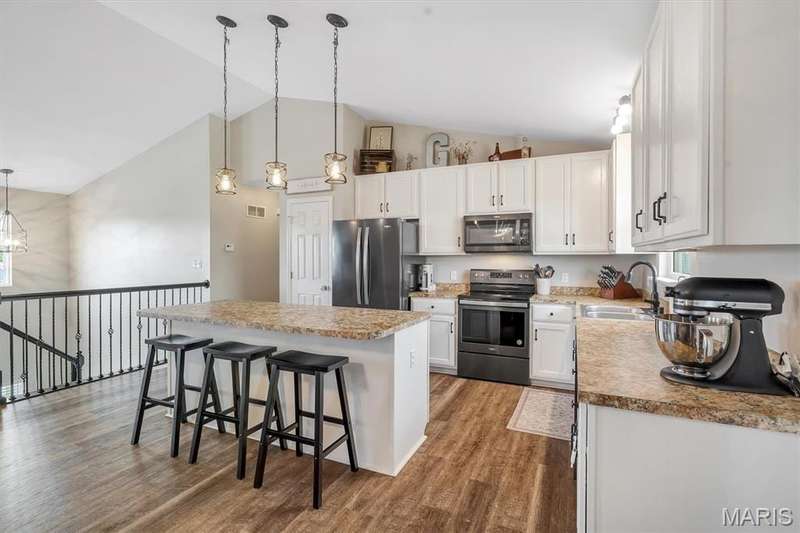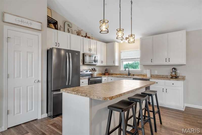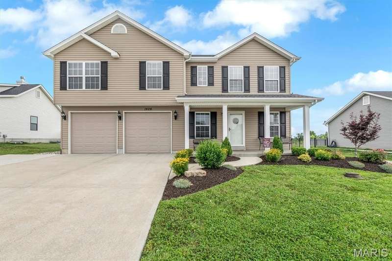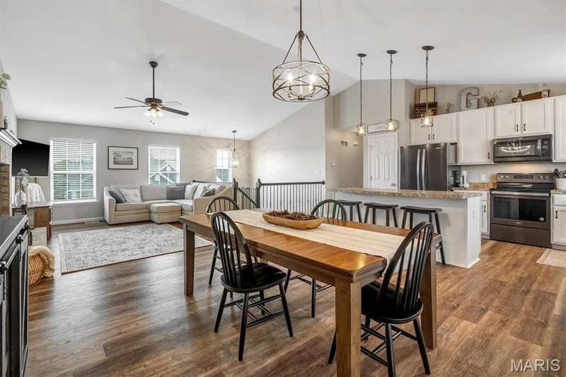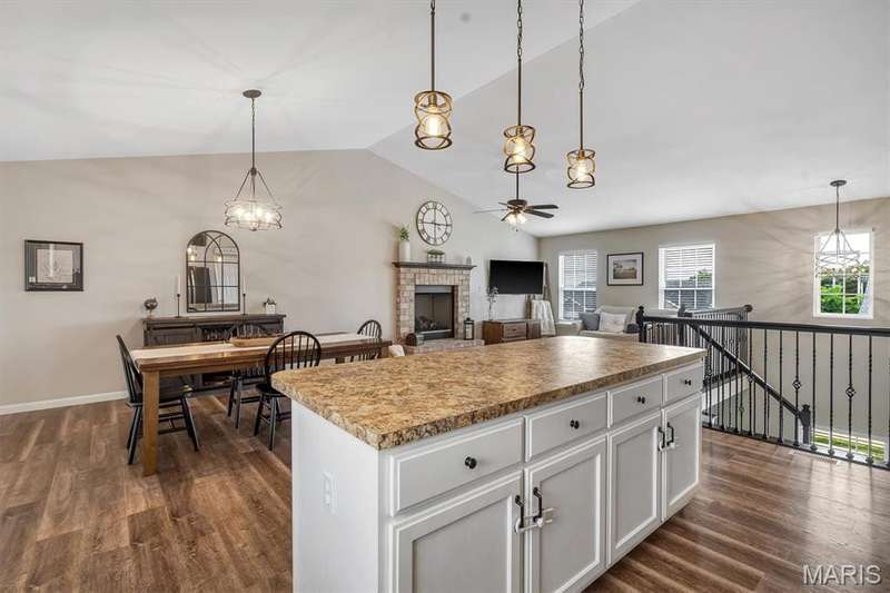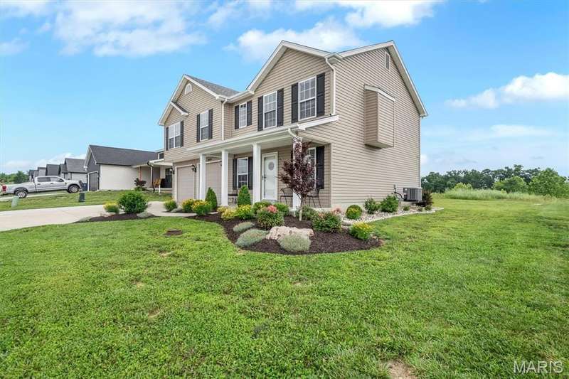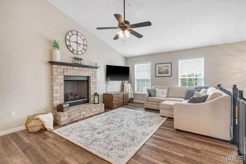Beautifully and meticulously maintained 3 bed with option for a 4th, 3 bath home captures the heart of farmhouse living with designer touches throughout. Nestled on a serene level lot backing to mature trees and open common ground in the highly desirable Brickyard subdivision. A striking 2-story entry, welcomes you into a bright open floor plan with vaulted ceilings, captivating the natural light. The kitchen is thoughtfully designed with black stainless steel appliances, a pantry, and center island -perfect for everyday living and entertaining. The great room offers a warm and inviting feel with a ventless gas log fireplace and elegant spindle rail staircase. Relax in the primary bedroom en-suite with walk-in closet and separate tub & shower in the primary bathroom. The finished lower level adds valuable living space with a spacious rec room, laundry area, and a half bath already plumbed for a future shower plus flexible space ideal for a 4th bedroom or home office. An oversized heated 2 car garage with insulated 8ft tall doors, built-in storage shelves, and extended parking pad offer both comfort and convenience. Professionally landscaped with a brand new roof and ridge vents -2025. Schedule a showing today and fall in love!