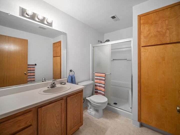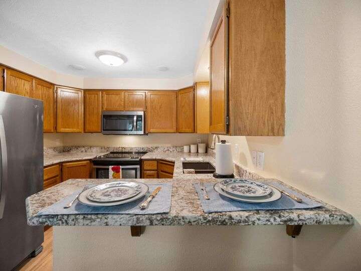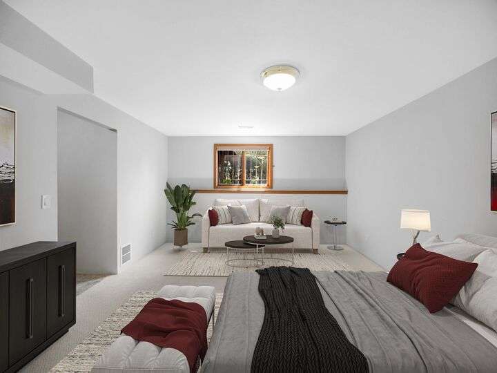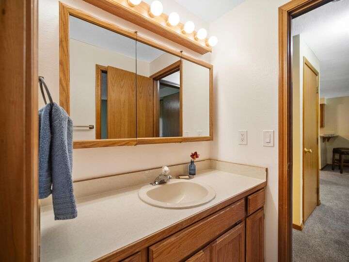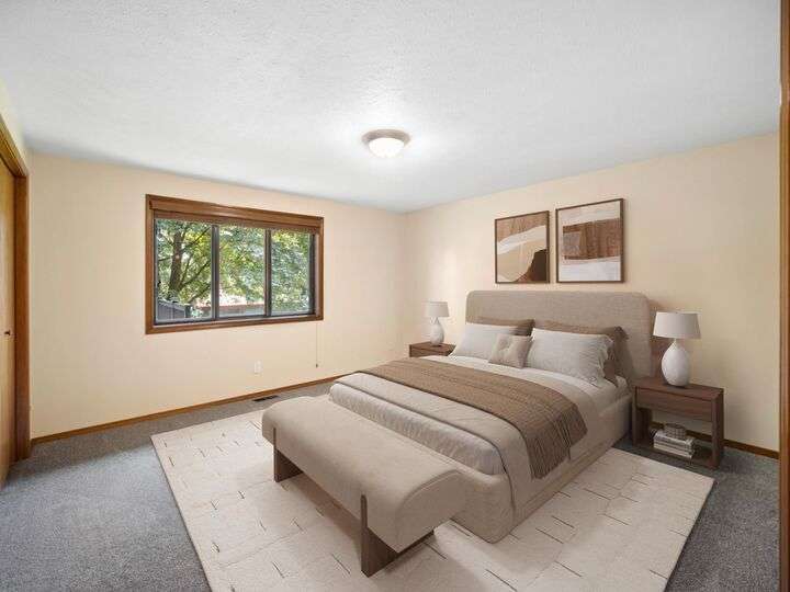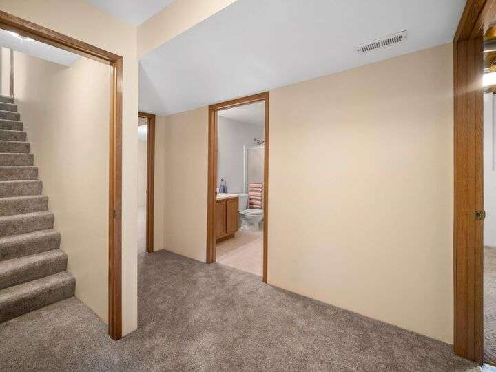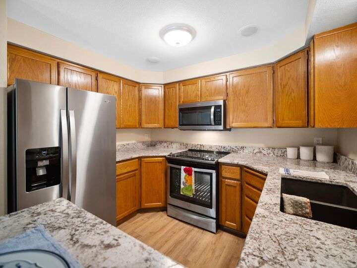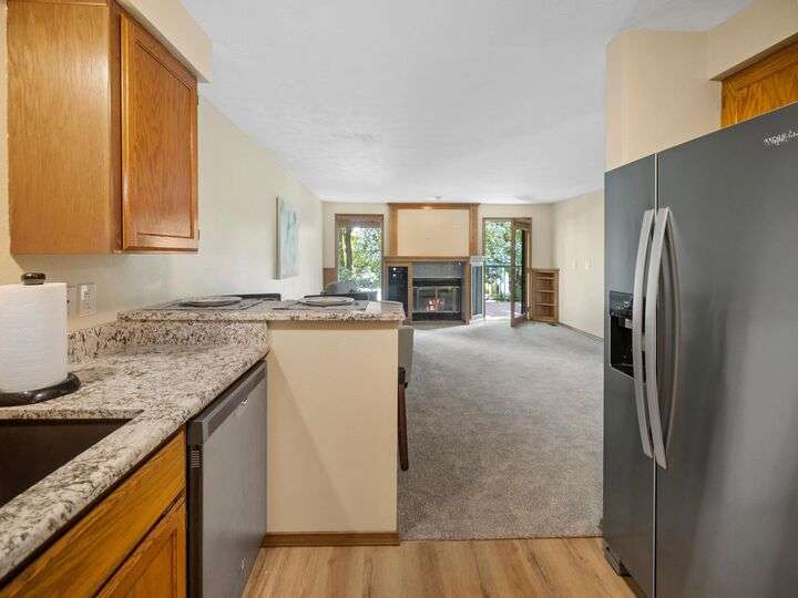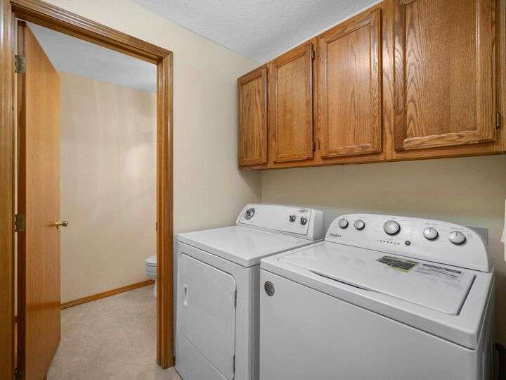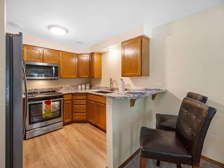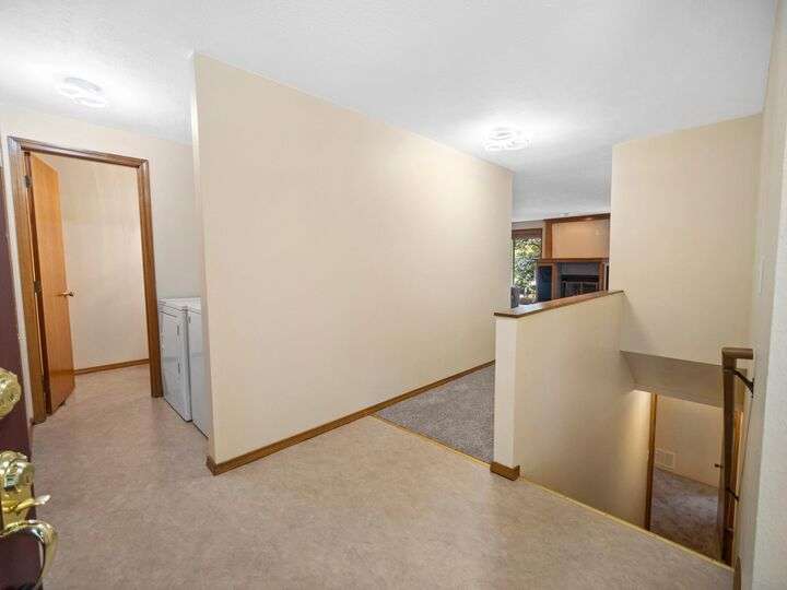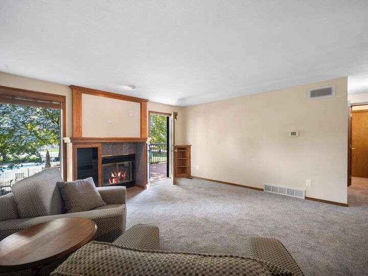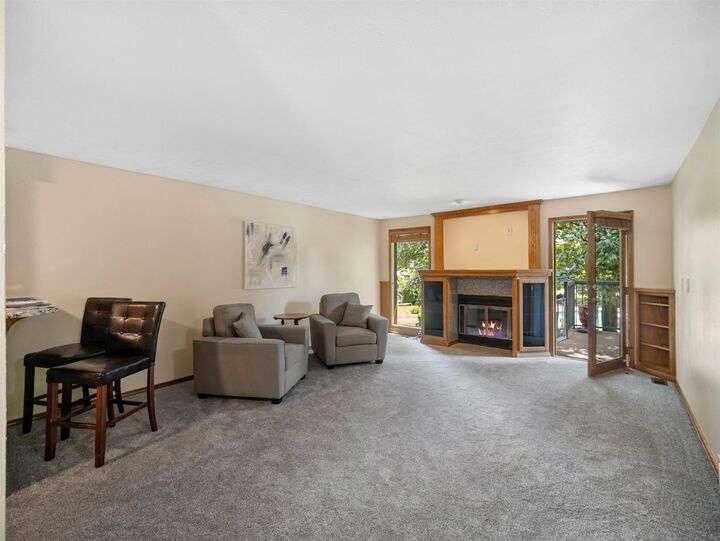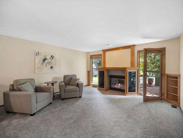 Gated Willow Glen PUD. Convenient main floor living, 3 bedroom, 2.5 baths with a gas fireplace for cozy days. Updated kitchen with granite counter tops, granite sink, and stainless steel appliances. Fabulous new composite deck with a lovely canopy, overlooking the community pool as well as a beautiful maple tree. Fresh paint and all new carpet on the main floor. Large lower level family room with and egress window, and a 3rd non egress room. Easy access to the pool and main grounds. PUD fees $505 pays water, sewer, street snow removal, lawn care, pool and exterior maintenance, insurance. Attached 2 car garage, in addition 4 guest parking spots directly across the unit. Updated furnace and A/C as well as a newer gas hot water tank. This is close to all three schools and all services. This is one of the nicer locations in the complex. Move in ready for you.