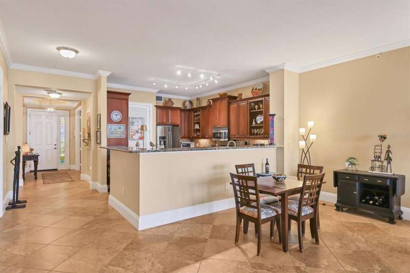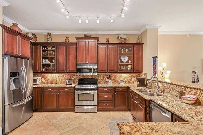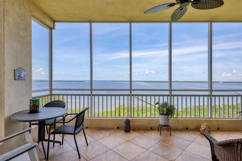 Take in spectacular sunsets and panoramic water views that allow you to watch ships sail under the Sunshine Skyway from your private 9th-floor lanai in this luxurious "Grand View" penthouse, located in the highly sought-after Terra Ceia Bay community. This spacious 3-bedroom + office/den, 2.5-bath home offers resort-style living with unmatched elegance and comfort. Step inside and be greeted by 10-foot ceilings and floor-to-ceiling impact sliders that flood the home with natural light and frame the breathtaking views. The open-concept floorplan offers an expansive living area, a formal dining room, and a cozy breakfast nook, perfect for both entertaining and everyday living. The chef’s kitchen features granite countertops, wood cabinetry, a large pantry, and stainless-steel appliances — everything you need to create memorable meals. Retreat to the luxurious primary suite, complete with two walk-in closets and a spa-inspired ensuite bath featuring a jetted tub, separate walk-in shower, and dual vanities. The split-bedroom layout offers maximum privacy for guests or family. This unit includes extra storage space on the ninth floor plus a one car garage with additional storage cabinets. Additional amenities include a beautiful and private pool area complete with bathrooms, outdoor shower, spa, gathering areas, BBQ area with additional picnic seating, and a firepit. This gated community also includes a fishing pier and ¼ mile boardwalk to take in the estuary and mangrove views. Amenities with additional fees include, an 18-hole executive golf course, pickleball, tennis, full-service restaurant and pub, additional pool with tiki bar, fitness center, and many social activities to participate in. Located near the world-renowned beaches of Anna Maria Island, and within easy reach of the arts, dining, and shopping in Bradenton, St. Pete and Sarasota, this home offers a rare blend of tranquility, convenience, and luxury.