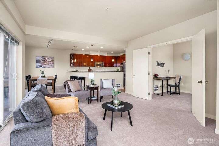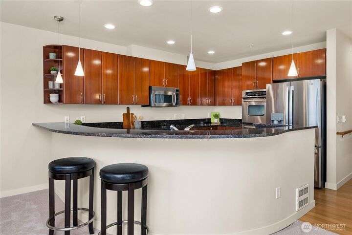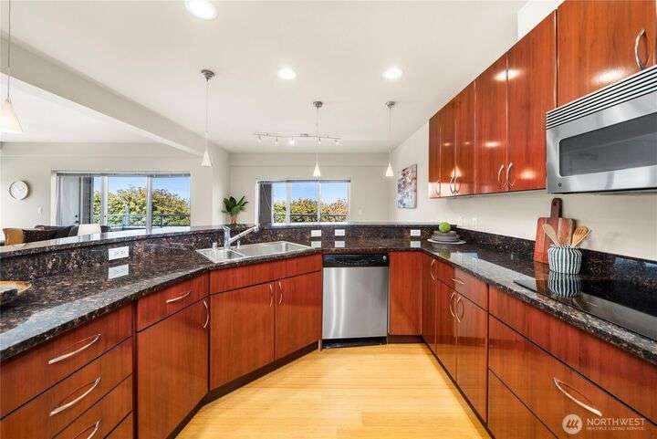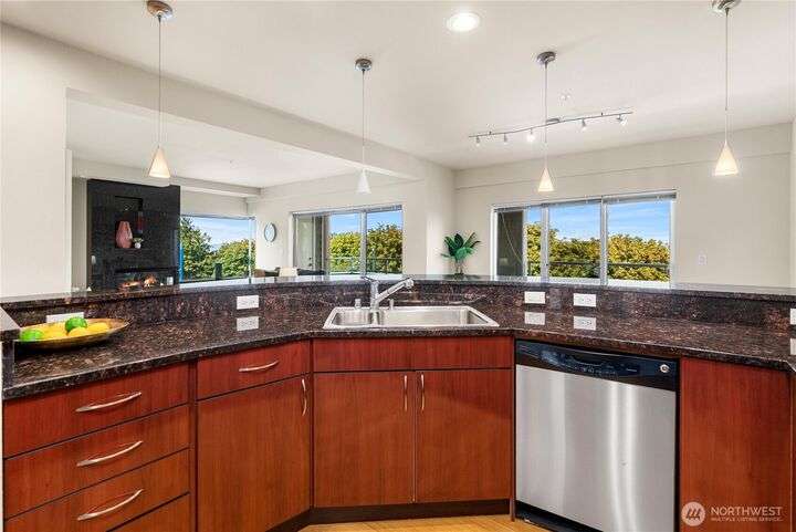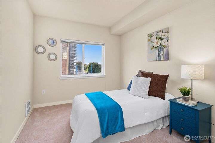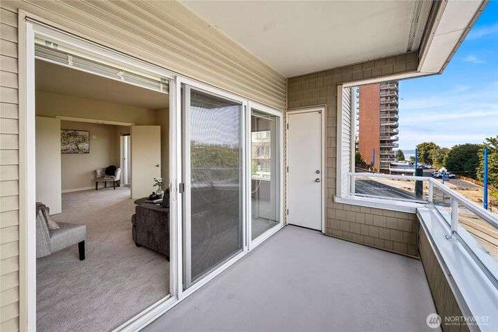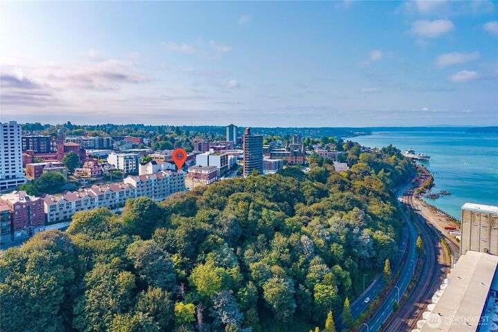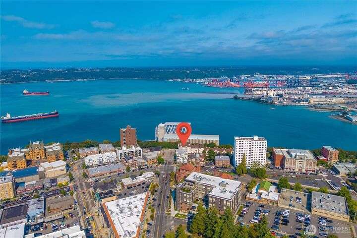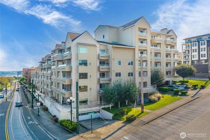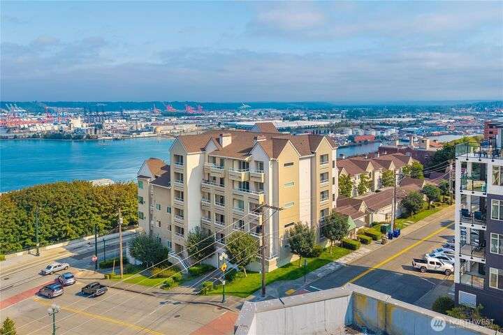 Honey stop the car! This rare corner unit floorplan in 1 Broadway has a chef's kitchen with wrap around granite counter. Room for a sizable dining table access to outside deck. At one time it had a commanding view of Commencement Bay. Now the view is better in the Winter when trees have shed their leaves. The den/office could be used as guest quarters. Stadium District lifestyle, all your amenities are within reach. Grocery, coffee shops, schools, theater, etc. Transit is nearby. Secured garage parking, gated entry. Low dues reflect a well managed complex. Recently painted, carpet replaced, new flooring, and deep cleaned. Move in ready!