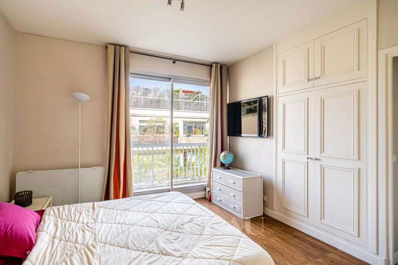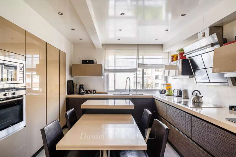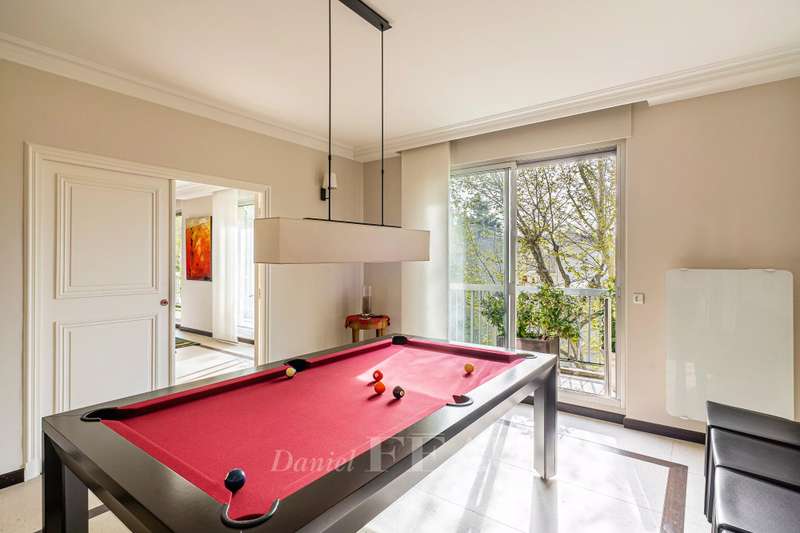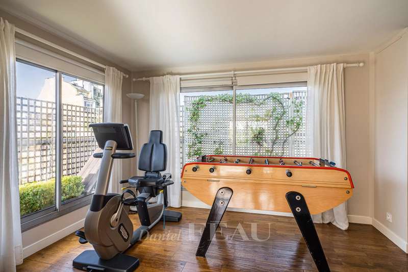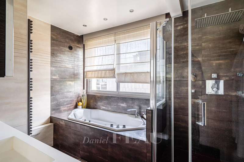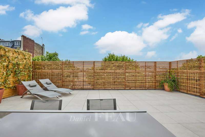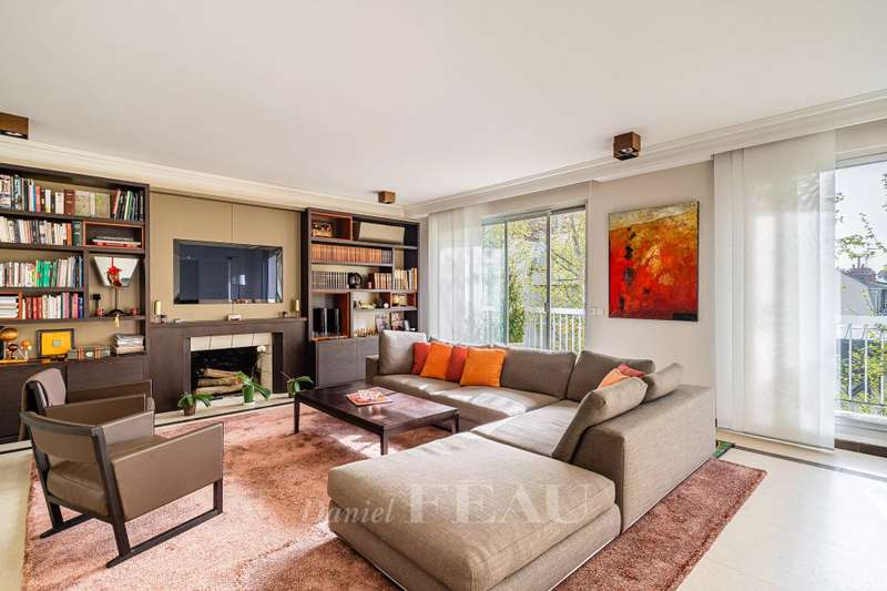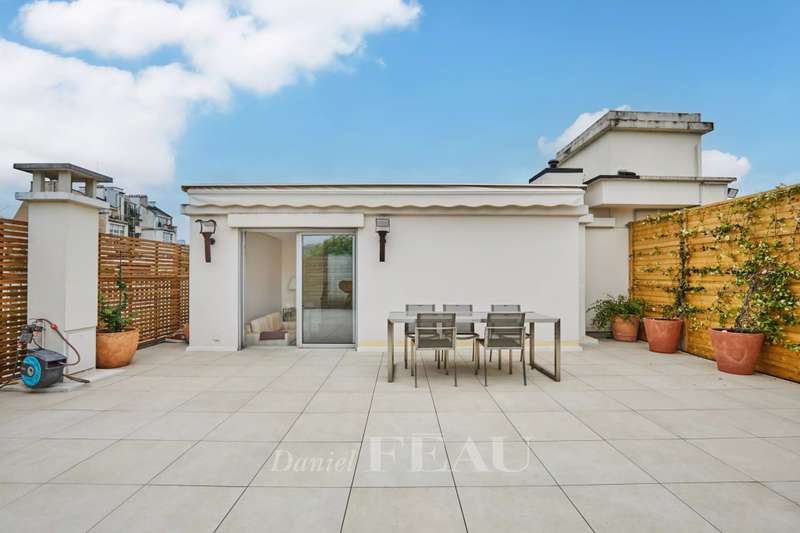 Rue de Chézy. This bright 195 sqm apartment on the 4th and 5th floors of a relatively recent building is in mint condition. It includes a 46.60 sqm living/reception room, a fitted and equipped 15 sqm kitchen, four spacious bedrooms with fitted cupboards, a bathroom, two shower rooms and two separate wc. The lower floor opens onto a continuous balcony, and the fifth floor boasts a superb 70 sqm terrace benefiting from no facing neighbours. With a double basement parking space and a cellar. Ample fitted storage space.