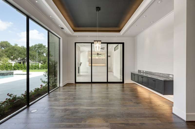 New construction by Stacey Fine Homes is underway on a 27,000+ SF (per builder) corner lot in Tanglewood! This elegant, custom 11,300+ SF (per Builder) home will include 6 bedrooms, 7 full and 3 half baths, indoor/outdoor living and an open floor plan that is an entertainer’s dream! A spacious living room opens into a sitting area equipped with a bar and a wine room on either end. The formal dining room is attached to the butler’s pantry which leads you into the chef’s kitchen. The kitchen will include KitchenAid and Thermador appliances, a large kitchen island with breakfast bar and a breakfast nook for family dining. The expansive indoor/outdoor living area is equipped with a wet bar, barbecue area, a fireplace, and an approximate 17' x 32' pool. Other amenities include an oversized 4-car garage, a whole house generator, an elevator, 2 staircases, and 4 gas log fireplaces. Completion expected July 2025. All per Seller.