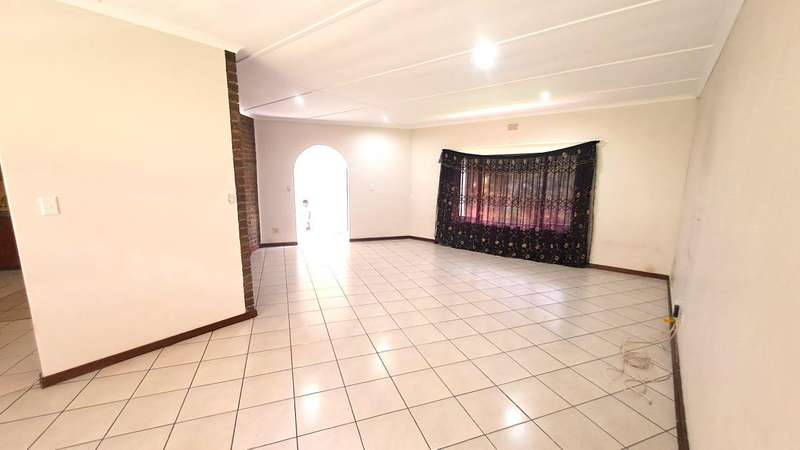 This beauty is set in a lovely garden, with ample space for kiddies to play, the home consist of three bedrooms, a study that can be a 4th bedroom, floors are tiled and the bathrooms was upgraded with modern finishes. Main bedroom has a full bathroom with walk in cupboard, lots of clothing space. The Lounge and dinning room is open plan and leads to a lovely kitchen and separate laundry/Scullery, the laundry/Scullery has a door going to the Double garage, and a double covered carport. Security is ample; alarm and Beams. Plus Back up water tanks 5000L A must to view!!!!