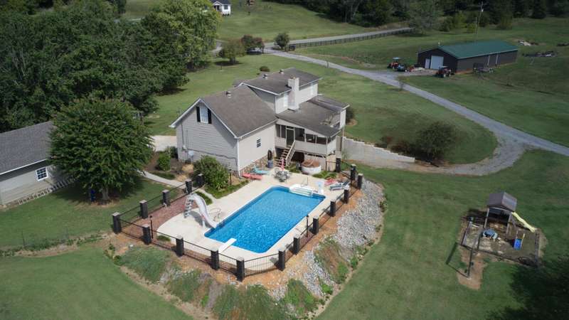 Dreaming of wide open spaces with beautiful mountain views?This 17+/- acre property has it all! It combines comfort, functionality, and endless potential. The main home offers inviting living spaces and a large porch to take in the scenery. It also includes an additional detached garage for additional car storage and basement garage for boat or lawn equipment. An extra cabin provides the perfect setup for separate living quarters, guest lodging, or rental income.For relaxation and entertainment, enjoy your own in-ground salt water pool surrounded by open skies.Bring your hobbies, projects, or business needs. The large shop offers plenty of workspace and storage. Let's not forget the pond to enjoy fishing after a long day.