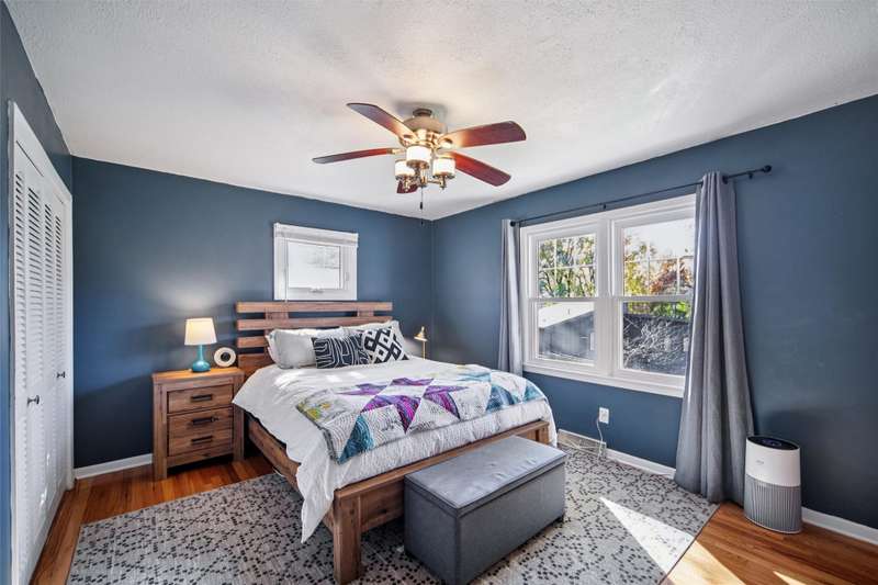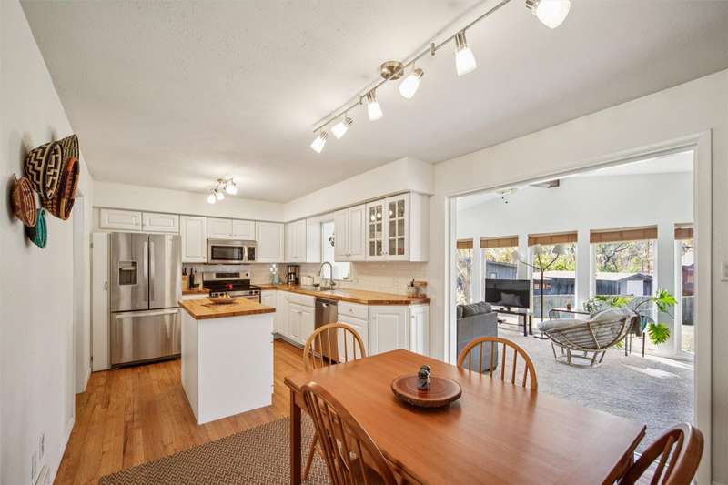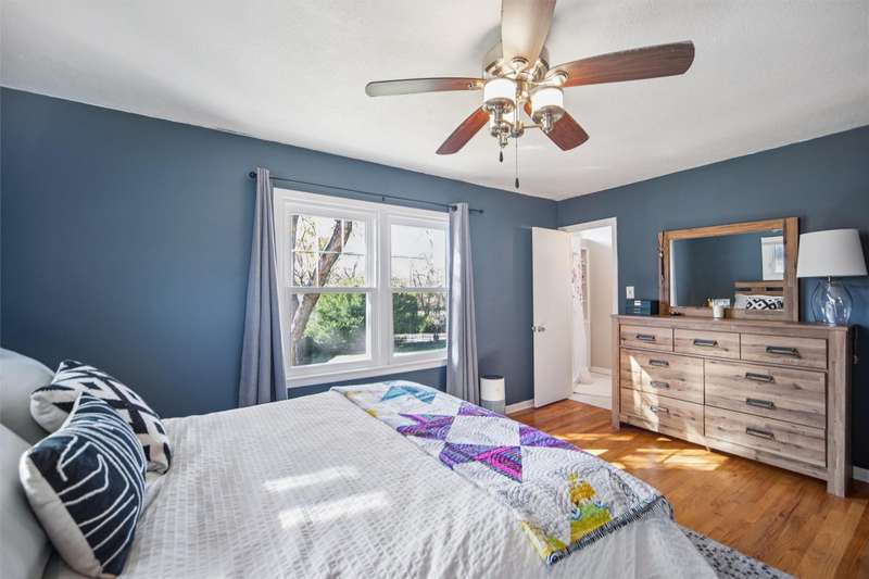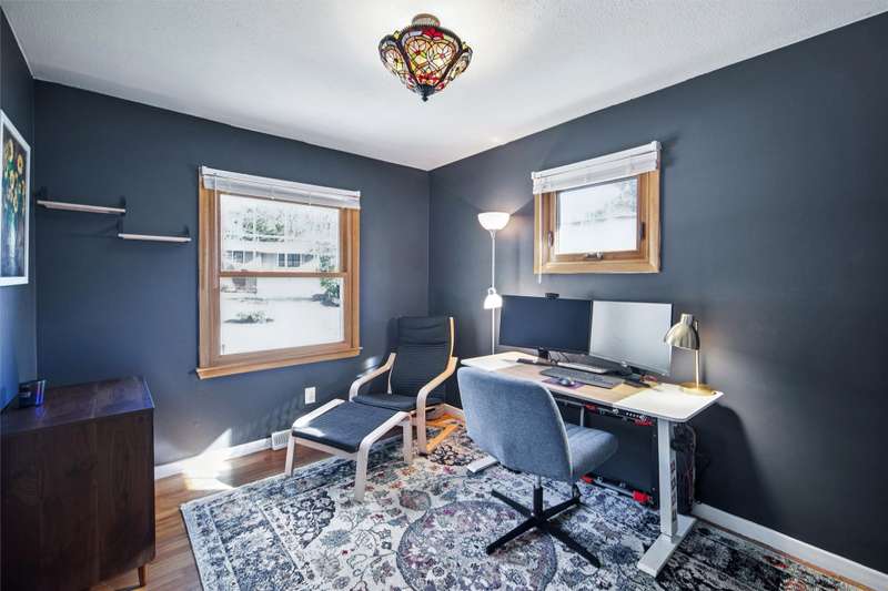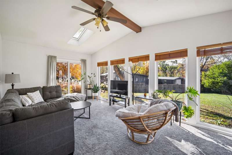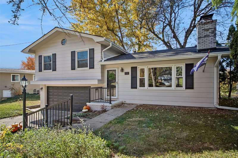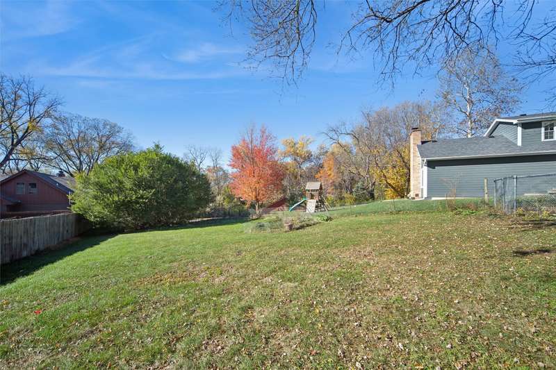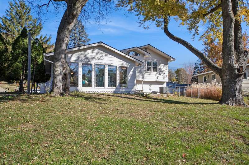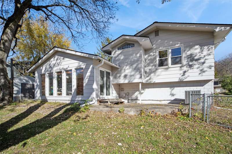 Check out this Mid-century gem nestled in the South of Grand neighborhood with a large fenced yard and mature trees. The stand out features in the front room are the curved brick front of the gas burning fireplace, the oak floors, and large front window bringing in tons of natural light. The kitchen is updated with white cabinets, stainless appliances, and cutting board countertops. The large southeast facing sunroom is great for relaxing with natural light pouring in from it's huge windows and skylights. The carpet and skylights in the sunroom are newer with access to both decks and patio. Upstairs you will find 3 generously sized bedrooms with oak floors. The ensuite primary bath has tiled floors and tiled shower. The hall bath also has tiled floors and a tiled bath. The 2 car garage is easily accessed from the main level. The lower level has a finished family room, mechanicals, and laundry. The back yard is fully fenced, ready for your family to enjoy. A storage shed is included out back. Recent updates include electrical panel, radon mitigation, roof, skylights, carpet, furnace, and front stoop railing. The home is centrally located so you're less then 15 minutes from everything in the metro. Set a time to check out this wonderful South of Grand home.
