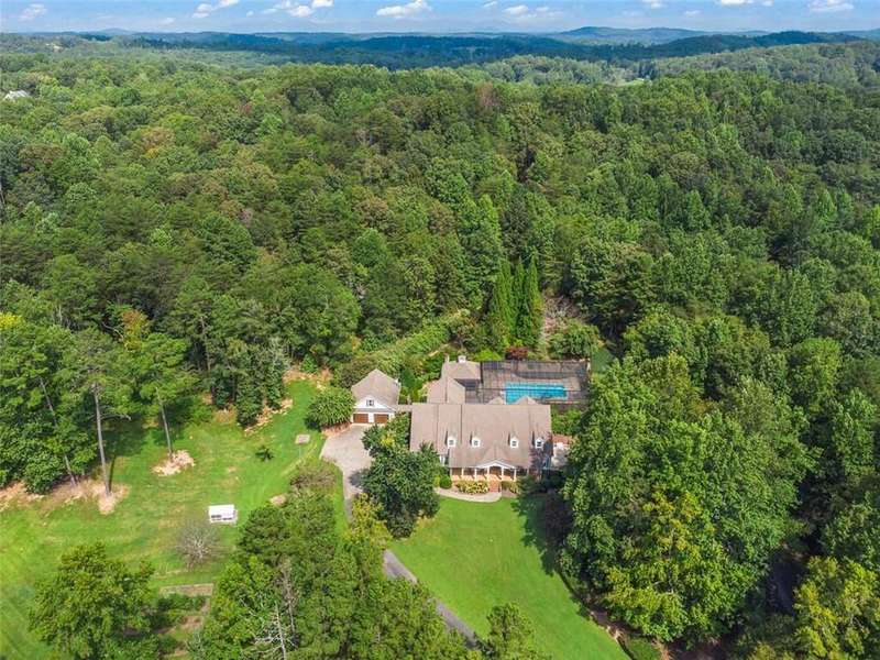 Discover your own private North Georgia retreat-an expansive 52+ acre gated and fully fenced estate. This remarkable property combines timeless craftsmanship with modern updates, creating a refined showcase of Southern charm and hospitality. The residence has been completely reimagined in recent years, rebuilt with today's preferred colors, a brand-new kitchen, and five luxurious bathrooms. Inside, you'll find elegant design, balanced proportions, and meticulous attention to detail. Outdoors, the estate offers endless amenities: a gated entry, stocked pond with trout and brim, fenced pastures for horses, wooded trails, chicken coop, rose gardens, fig trees, a pole barn, and a cow pond. Entertaining is effortless with a basketball half court, resort-style pool, putting green, waterfall, fenced dog park, and sweeping mountain views. Nature lovers will appreciate the abundance of birds, ducks, and deer throughout the grounds. Step onto the welcoming rocking chair front porch and into a vaulted foyer, framed by a formal dining room and a distinguished office. The home features seven bedrooms, including a primary suite with a fireplace, spa-like bath with soaking tub, walk-in shower, double vanities, heated floors, and custom his-and-hers closets. Four additional bedrooms sit on the main level two ensuite- two jack-n-jill. The gourmet kitchen is designed for both function and gathering, offering quartz countertops, commercial-grade appliances, custom cabinetry, and dual islands with double sinks. The light-filled great room opens to a full-length back deck, complete with screened seating, sun deck, and a covered outdoor kitchen. A fireside keeping room just off the kitchen adds warmth and convenience, with a half bath and direct pool access. The terrace level includes a media room, kitchenette/bar area with wine refrigerator, fitness room with steam shower, flex space with a dog wash, and additional storage. Above the garage, a bonus room awaits-ideal for a playroom, classroom, or private office. Private dock and TROPHY BASS LAKE, designed by Aquatic Environmental Services. The lake is its own ecosystem including investment into Electofish research, 5 feeders, bluegill, crawfish, trout, strain bass, grass carp, as well as a pebble bottom and appropriate aquatic plant life. Additional features include a whole-home generator, clean air and water purification systems, and a radon system-ensuring both comfort and peace of mind. Perfectly situated, the estate offers easy access to top schools, medical centers, and is just 11 miles to Dahlonega, 5 miles to Gainesville, and only 5 miles to Lake Lanier. This rare property represents the pinnacle of country estate living-a once-in-a-lifetime opportunity to own a true North Georgia masterpiece. The driveway provides easement to a neighboring 36+ acre estate that is also on the market with another company, for those interested in a combined 88+ acre compound. Call today for an appointment to have a private showing!