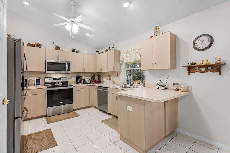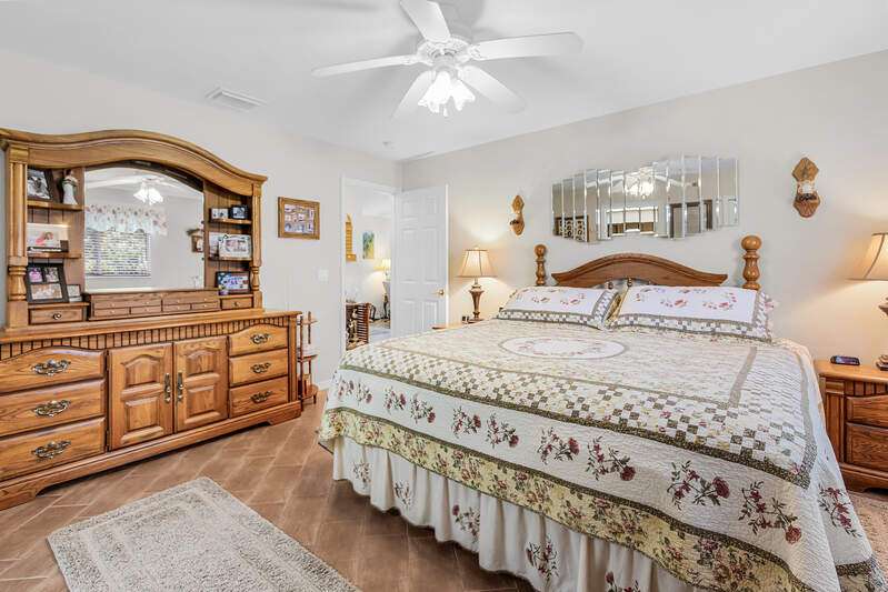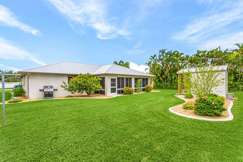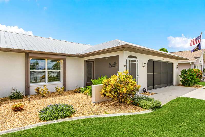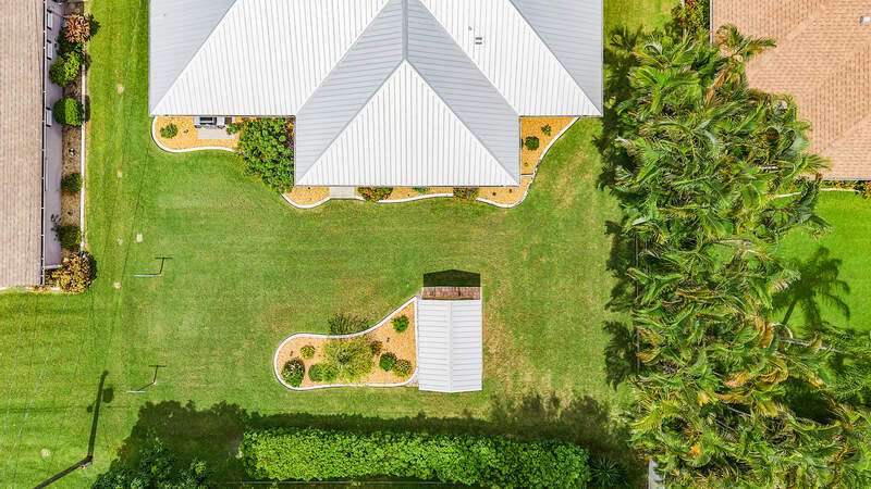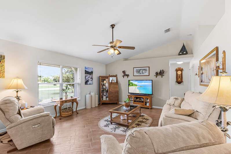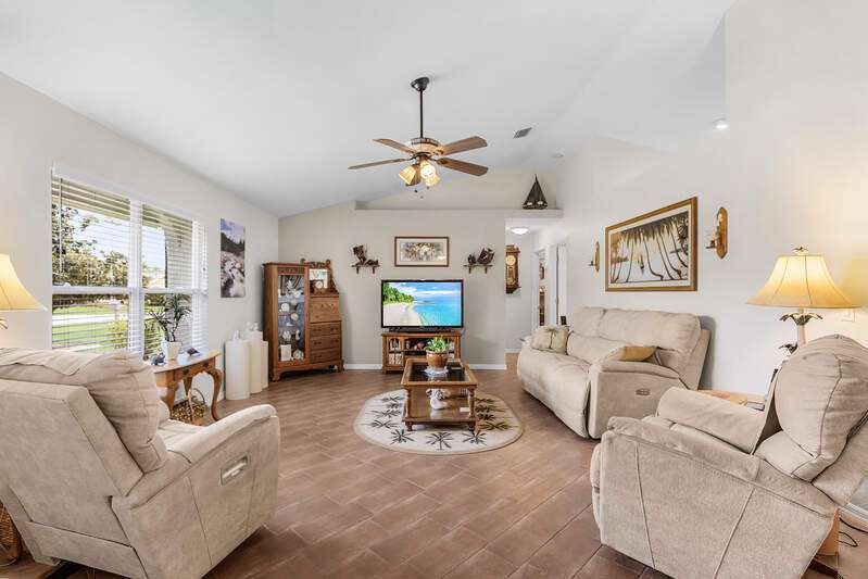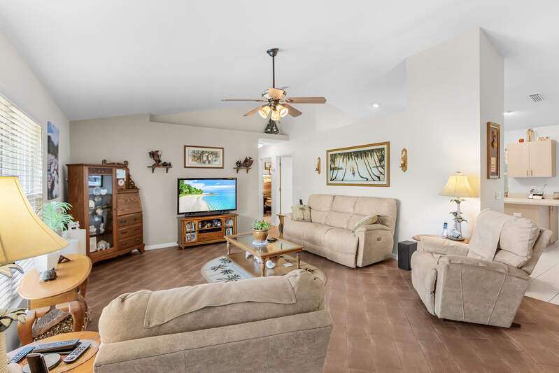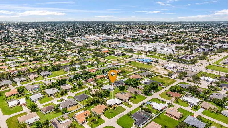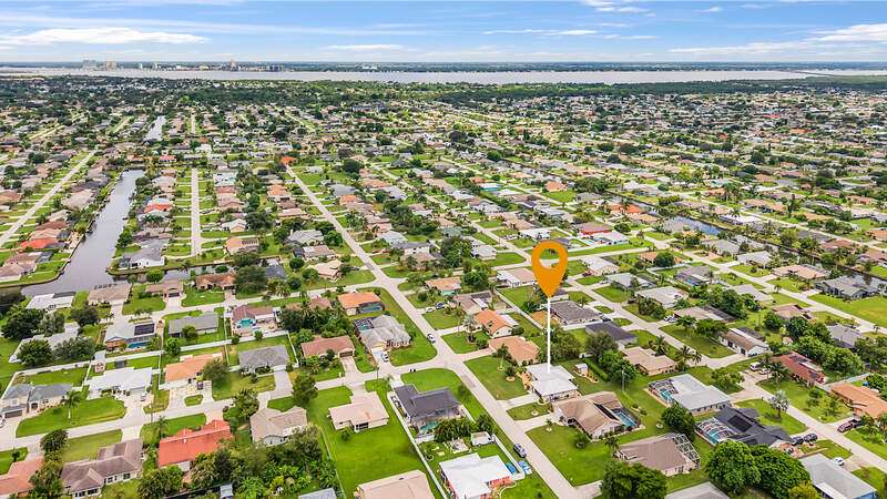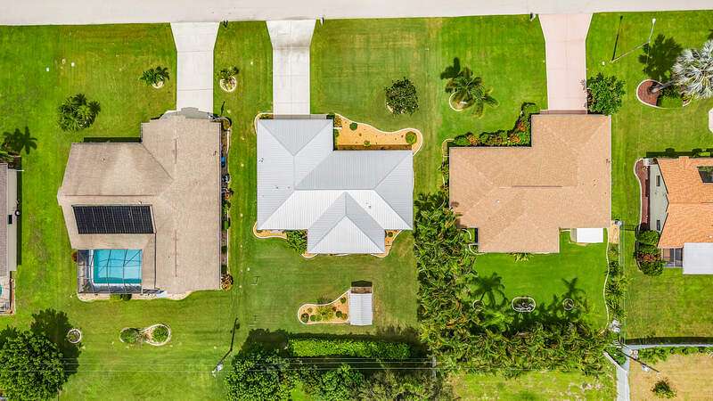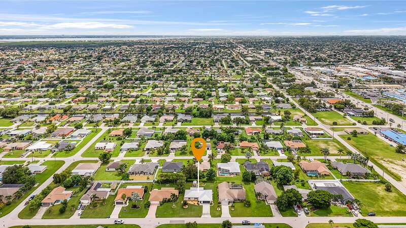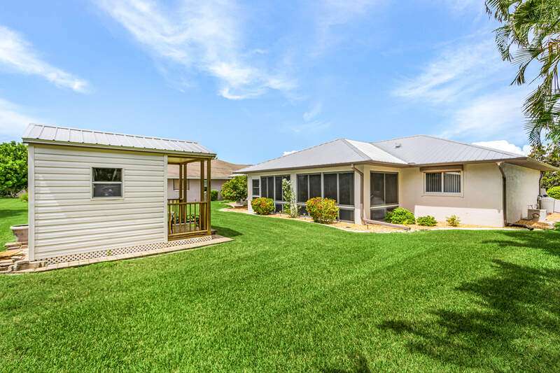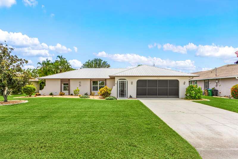 Pride of ownership shines throughout this rare SE Cape Coral home! immaculate inside and out, with every detail carefully maintained. Built in 2001, this residence offers peace of mind with a 2018 metal roof, accordion storm shutters, city water & sewer in and paid and no flood insurance required, (a huge savings for the new owner). The desirable split-bedroom design features 3 bedrooms and 2 baths, including a guest bath that also serves as a pool bath. The spacious family room flows to the oversized under-truss screened lanai, complete with a pass-through kitchen window that makes entertaining easy. The manicured lawn and landscaping further highlight the care and attention invested in this home. The South facing backyard provides sunshine all day, plenty of room for a future pool, and a charming shed for extra storage. Conveniently located in a highly desirable part of SE Cape Coral, you'll enjoy easy access to shopping, dining, schools, and all of your daily needs, just minutes away. This move-in-ready gem truly combines quality, comfort, and value. Homes this well cared for are a rare find. Schedule your private showing today!