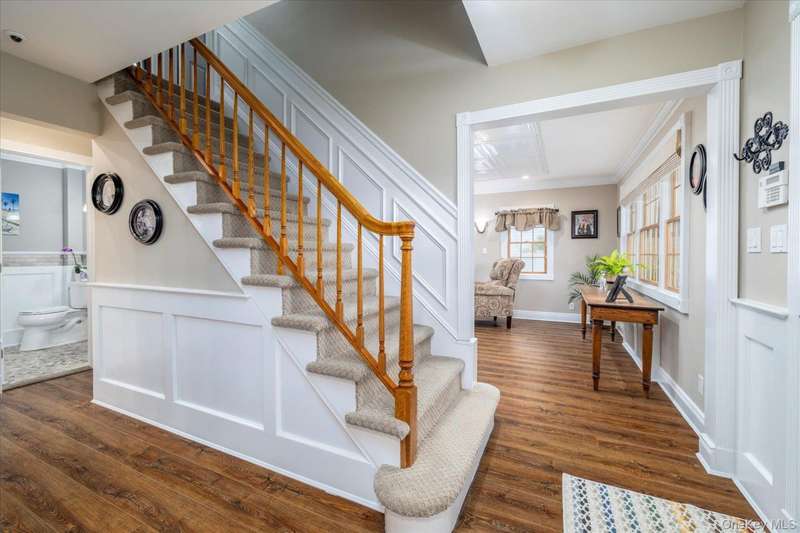 Welcome to this stunning Center Hall Colonial in the quiet neighborhood of the Birchwood Section of Rockville Centre. Enter into a Foyer that leads to a formalLiving Room with a gas fireplace and connected to the Living Room is an office. The Informal Dining Room which has a tray ceiling and beautiful moldings leads into the fabulous updated Kitchen with great counter space for getting everyone together and continues into the Great Room with a cathedral ceiling and a second gasfireplace. Both Office and Great Room has patio doors which leads to the backyard area for entertaining. Off the Kitchen is the Laundry/Mud Room with washer and dryer, sink, tons of cabinets and a double closet, which leads to the side of the house and garage. Off the hallway is a renovated Half Bath. The second level has a nice size Primary Bedroom, Primary Bath with double sinks and a closet for storage. There are two additional Bedrooms, and updated Hall Bath. The lower level of this home was totally redone and extended with an egress window, radiant heat, vinyl flooring and a mini split unit. There are additional closets and cabinets for storage. Utilities include gas burner, hot water heater and water filter system. Updated 200 amp electrical panel and foam insulation through out. This home also includes a one year old Kohler gas generator (20KW). The private yard has a lovely patio for relaxation and entertaining. This beautiful home has too much to list, you must come and see for yourself. Simply move in and enjoy this wonderful neighborhood we call Rockville Centre.