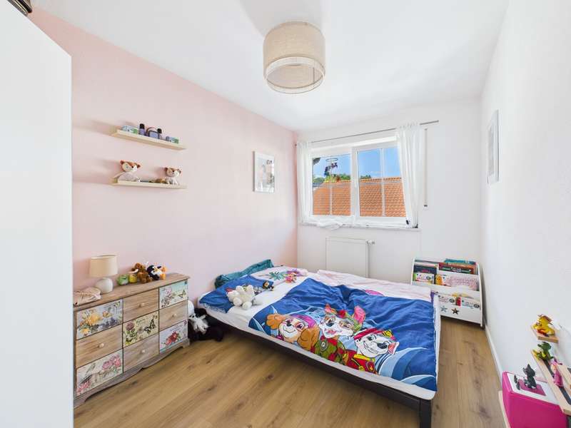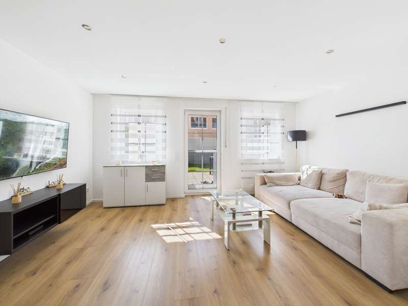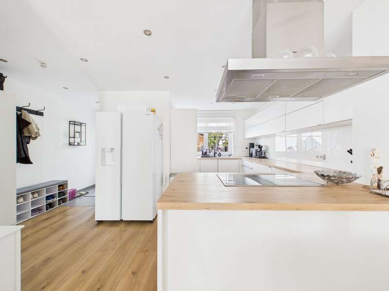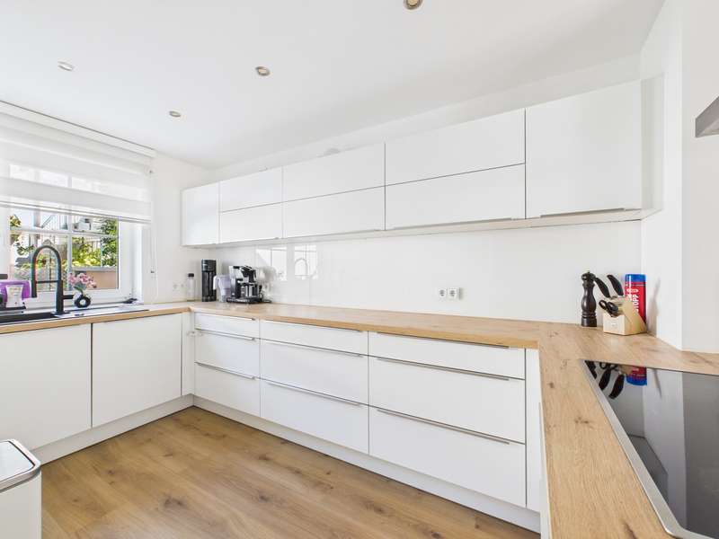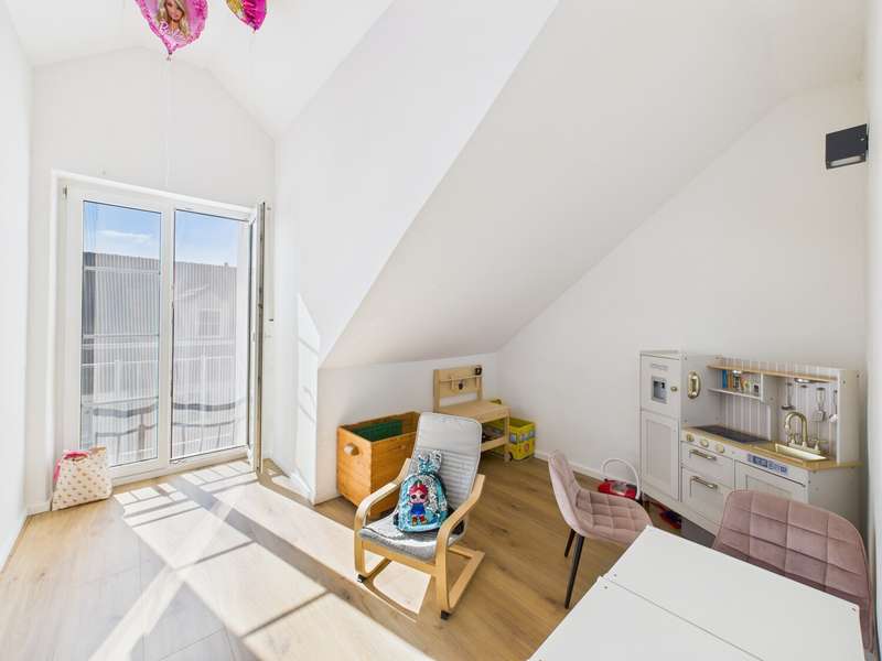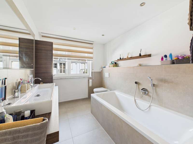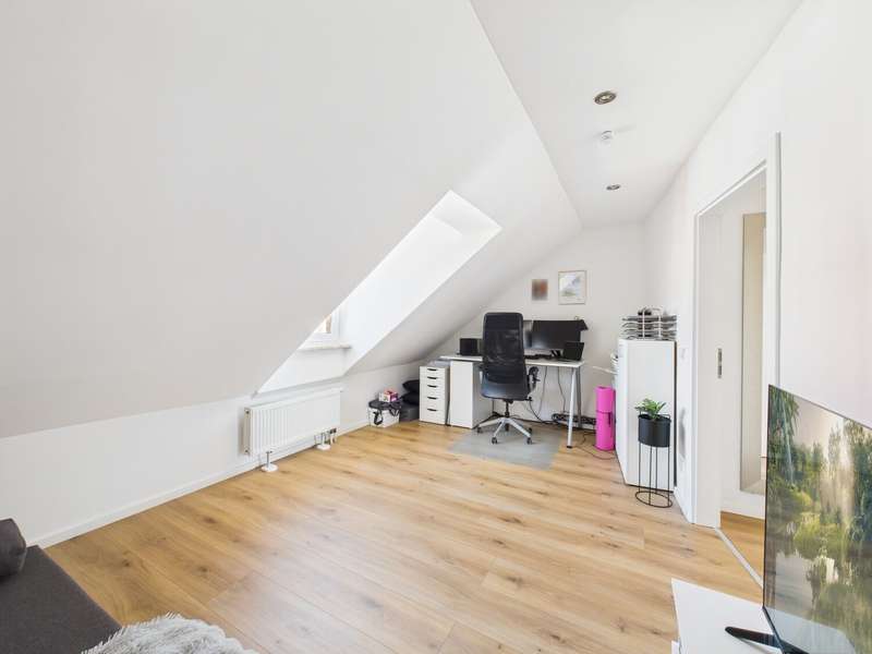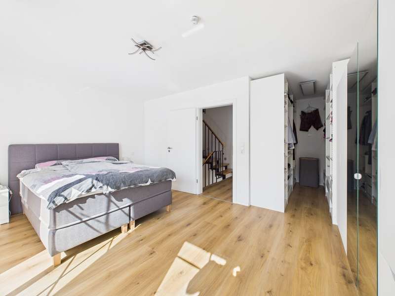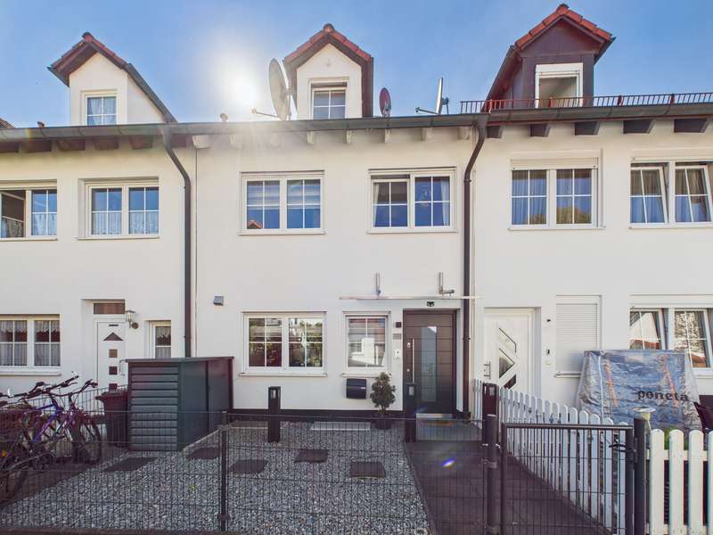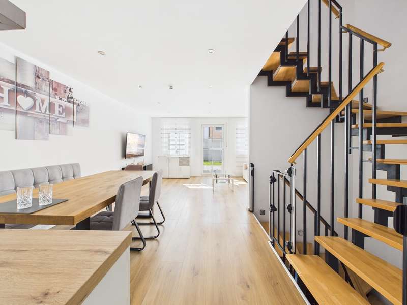 This family-friendly terraced house from 2002 combines modern living with a well thought-out room concept and offers an astonishing amount of space on a compact plot of 113 m² with a living area of around 135 m². The property was extensively renovated in 2018/2019: Pipes, screed, tiles, floors and the bathrooms and entrance area were renewed. Underfloor heating on the first floor and in all bathrooms also ensures cozy living comfort. A bright hallway with guest WC welcomes you on the first floor. The open-plan living and dining area with access to the terrace and the low-maintenance garden forms the focal point of the house. The spacious, modern fitted kitchen from 2019 with high-quality electrical appliances fits perfectly into the room and invites you to cook together. The upper floor offers a bedroom with adjoining dressing room and access to a small balcony, a children's room and an elegant bathroom with bathtub, shower and double washbasin. On the top floor there is another children's room, a guest room and a modern shower room - ideal for growing families or visitors. The basement impresses with plenty of storage space, a utility room with washing machine connection and sink, a hobby room and a water softening system. An attic with heating offers additional usable space. The house includes a prefabricated garage with electricity and storage space as well as a further parking space. Thanks to the high-quality renovations, modern furnishings and efficient use of space, this house is the ideal choice for families looking for spacious living on a small plot. Here is the link for the 360° digital tour to get a first impression of the mid-terrace house: https://tour.giraffe360.com/3b54b68ca94f422c8469c128669dcf65 The best way to see this property for yourself is to visit it in person.