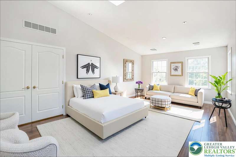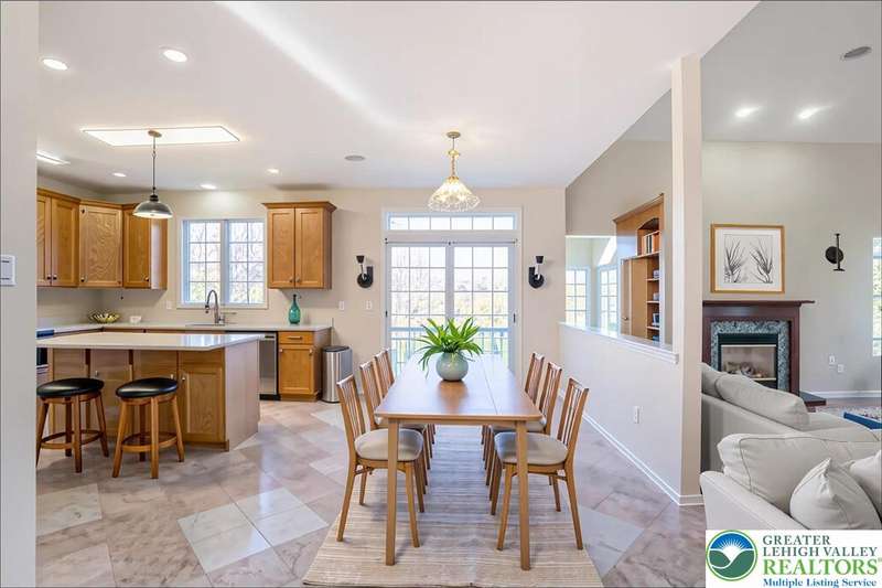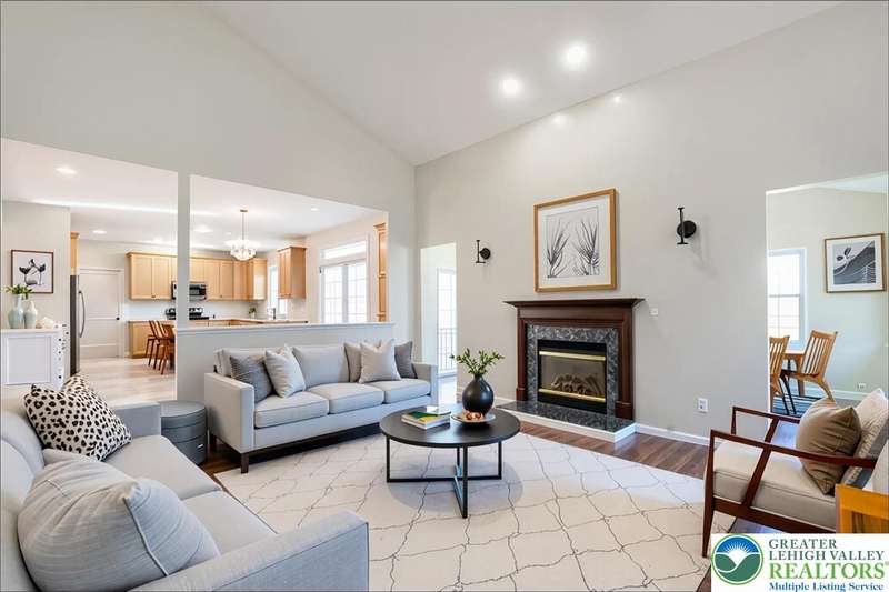 Boasting nearly 5,600 sq. ft. of total square footage, this elegant 4-bedroom, 3.5-bath Colonial sits on 1.39 acres in Center Valley s Sunrise Valley neighborhood within the Southern Lehigh School District and blends timeless design with modern updates. The open layout features a grand two-story foyer, formal living and dining rooms, and a spacious family room with cathedral ceilings, large windows, and a gas fireplace. The kitchen includes quartz countertops, new stainless-steel appliances, and access to a deck overlooking the private, tree-lined backyard. A sunroom, conservatory, home office, and first-floor laundry complete the main level. Upstairs, the primary suite offers a walk-in closet, soaking tub, and separate shower. Three additional bedrooms share a full bath. The finished walkout basement includes a bonus room, walk in closet and full bath-plus a game room/recreation area and almost 1000 sq.ft. of additional storage space. Recent updates include a new HVAC system (2025), kitchen appliances, quartz counters, and fresh paint. The property also features a 2-car garage, extended driveway, and landscaped yard. Just minutes from The Promenade Shops, this home combines space, comfort, and convenience with easy access to major highways, shopping, and dining. Move-in ready and well maintained, this home is a rare find in Center Valley.