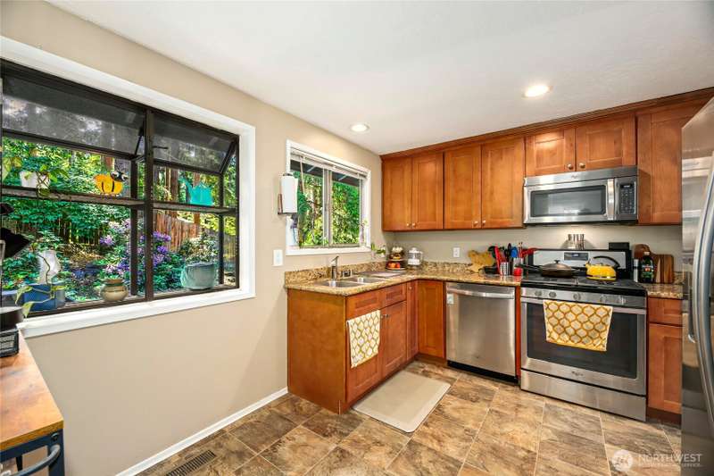 Come see this thoughtfully updated turnkey home on a private cul-de-sac in Alderwood Manor. You’ll appreciate 2 separate living areas, granite countertops, stainless appliances, updated bathrooms, lovely refinished oak hardwoods and an updated basement with new luxury plank flooring. Relax outside on the new composite deck overlooking a fully fenced private backyard with space for pets, play, and enjoying nature. The oversized heated garage has LED lighting, a sink, ample space, and is complete with 2 automatic doors. Conveniently located near Seattle, Everett, Bothell, and Bellevue with easy access to Lynnwood light rail, REI, Whole Foods, Mill Creek Town Center, Alderwood Mall, I5, and I405. Don’t miss the chance to make this home yours!