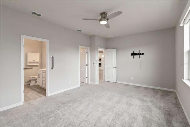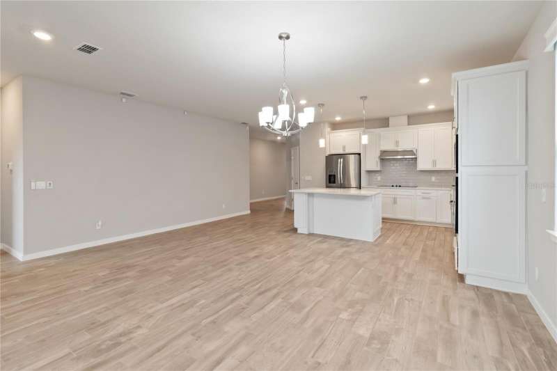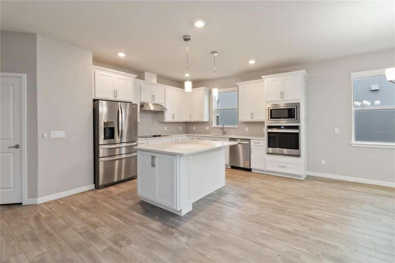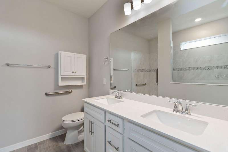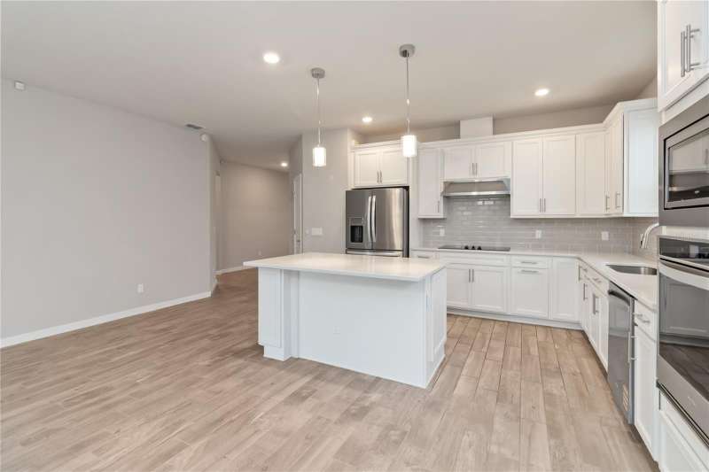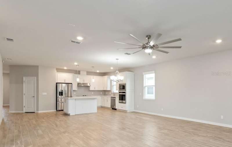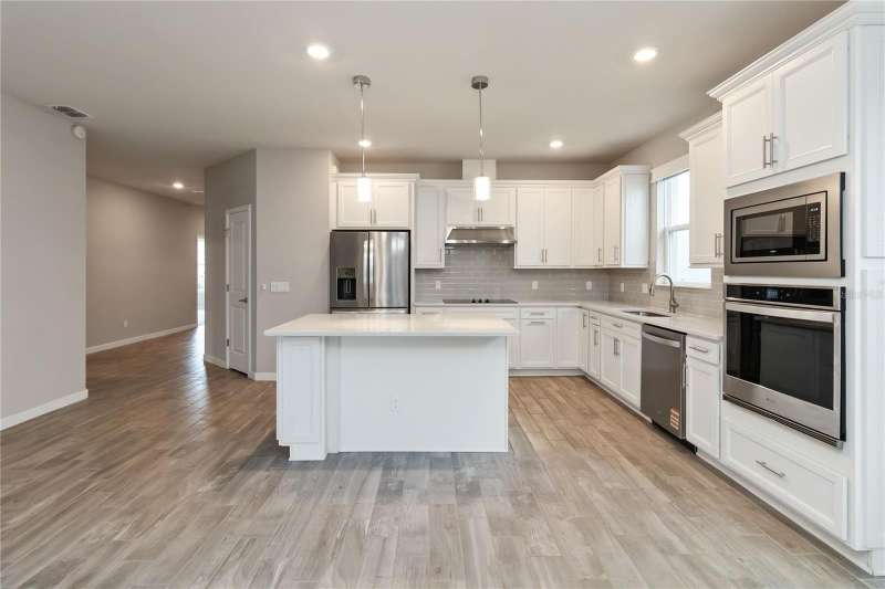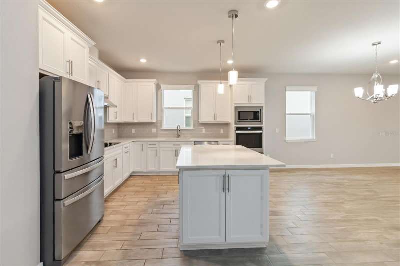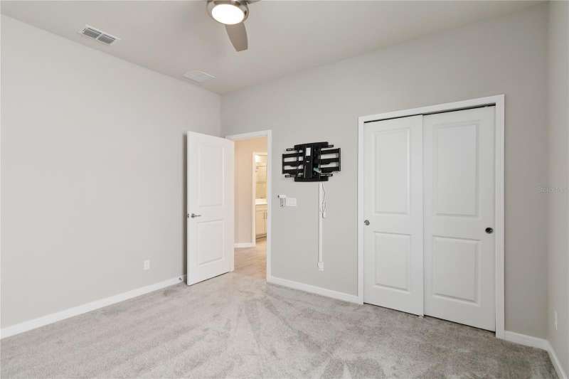 Welcome to this beautifully maintained 4 bedroom, 2 bath home, built in 2022, offering 2,200 sq. ft. of modern living space that's designed with an open concept split floor plan. This popular Pulte Spruce model combines comfort, functionality, and style. At the heart of the home is the chef’s kitchen, featuring an oversized island/breakfast counter, soft close cabinets, quartz countertops, stainless steel appliances (2022-2025), and a clear view of the gathering room perfect for everyday living and entertaining. Notable upgrades include: wood-look ceramic tile flooring in all common areas, custom remote-control blinds with valances in every room, energy efficient windows, modern ceiling fans and light fixtures, 9-ft ceilings, 8-ft interior/exterior doors, epoxy-finished garage with custom overhead storage, enclosed lanai with category 3 hurricane screens, professionally landscaped front and backyard, Rain Bird irrigation, stone paved driveway, lanai and back patio, in-wall pest control system, security system, six foot vinyl fence with two access gates. This home is set in a small community. Residents may enjoy a pool, cabana, and playground, all with no CDD fees. It's conveniently located minutes from Lake Nona’s shopping, dining, and entertainment district and Brevard Beaches are just a one hour drive away. It truly offers the best of Central Florida living, whether you’re a first time homebuyer, growing family, or looking to downsize. Don’t miss your chance to make it yours!