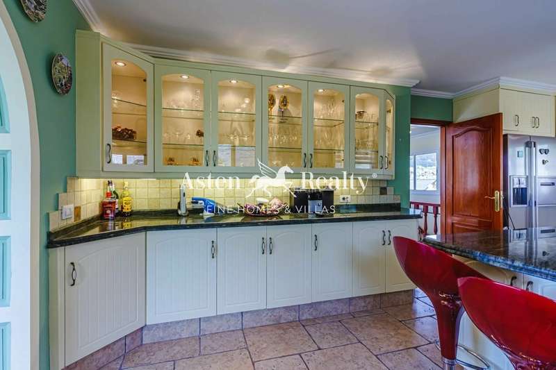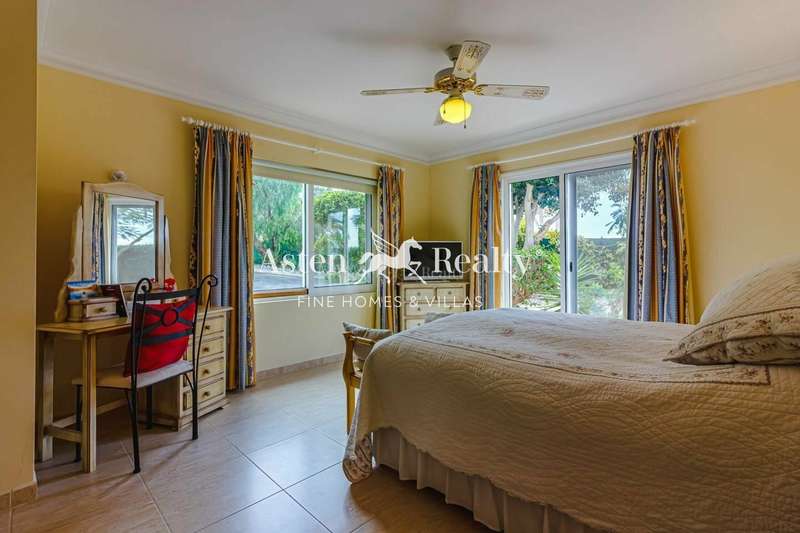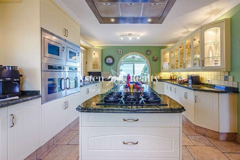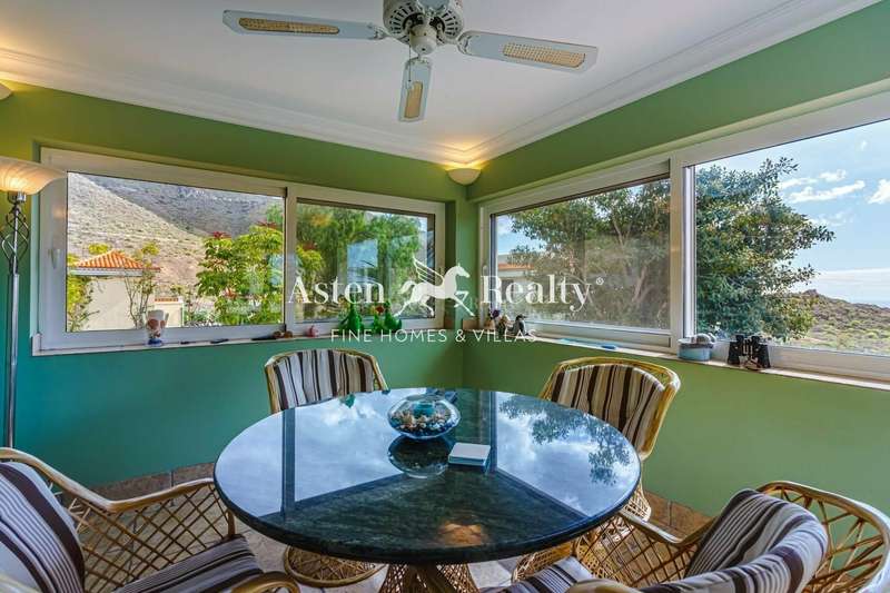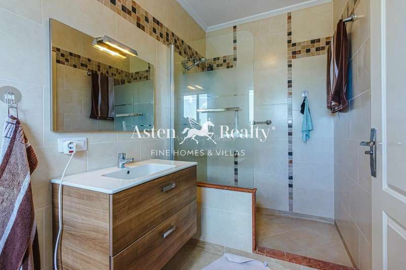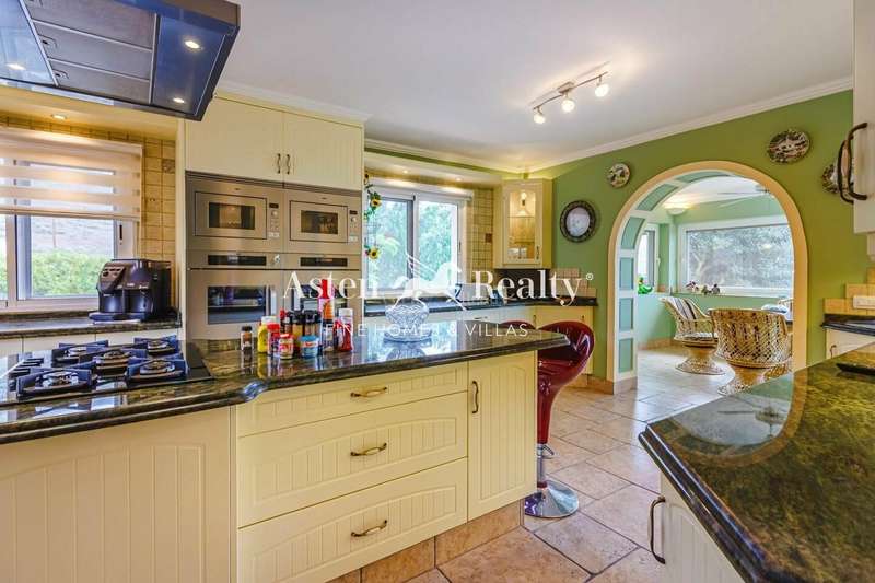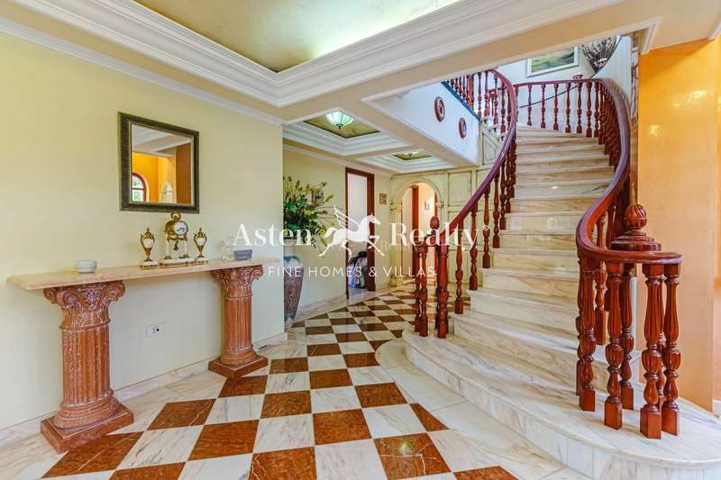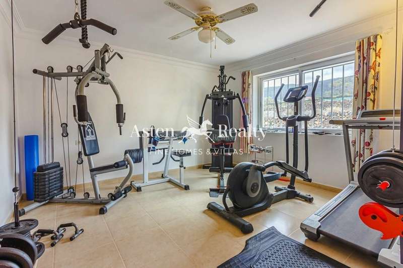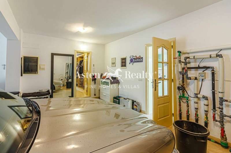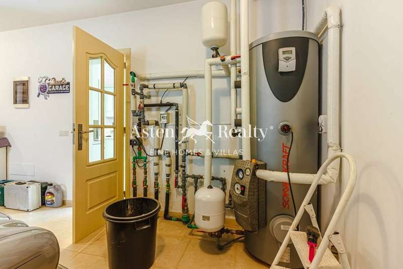 This luxury house with 6 bedrooms and 6 bathrooms a large plot complemented with stunning sea views is located in San Lorenzo Valley. A place where you can enjoy beauty and loneliness with your family and receive guests! The ground floor of the house covers a total area of 412 m2, and distributed as follows: The main entrance to the house with a hall and a marble staircase, six bedrooms. The rooms overlook the well-kept garden and the sea, and of the three there is direct access to the pool. Each room has a bathroom, fitted wardrobes. The master bedroom is connected to two dressing rooms. Two living rooms on the ground floor, a part of one is converted to a billiard room. On the ground floor there is also an office and a gym, a bathroom. The kitchen on the ground floor is currently used as a laundry room and utility room and has direct access to the garage for two cars. First floor with a total area of 140 m2 consists of a large main kitchen with an islet and fully equipped plus a spacious living and dining room with chimney, a library, a home cinema room, a relaxation room with panoramic windows and a terrace with Seaview. Direct access to the solarium with an area of 228 m2. On the underground floor there is a room for pool machines, a water purification system. Heated pool of 15/5 m2. Solar panels. The house is surrounded by a beautiful garden with fruit trees and exotic plants. The garden area is 1180 m2. The total land area of 3000 m2. The villa has a separate technical house and a 300 liter water collector.