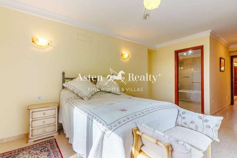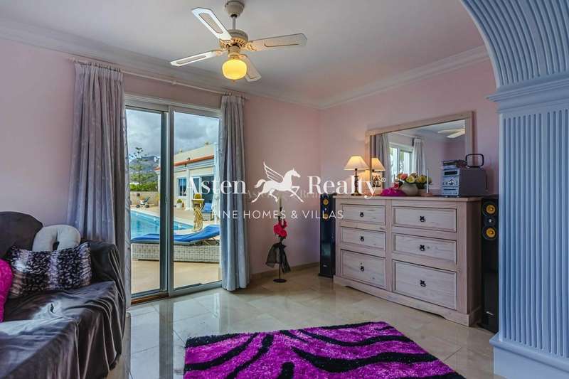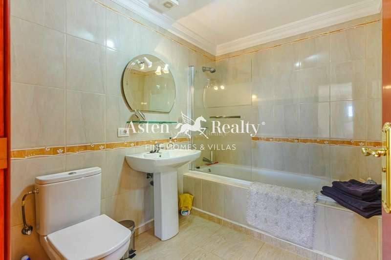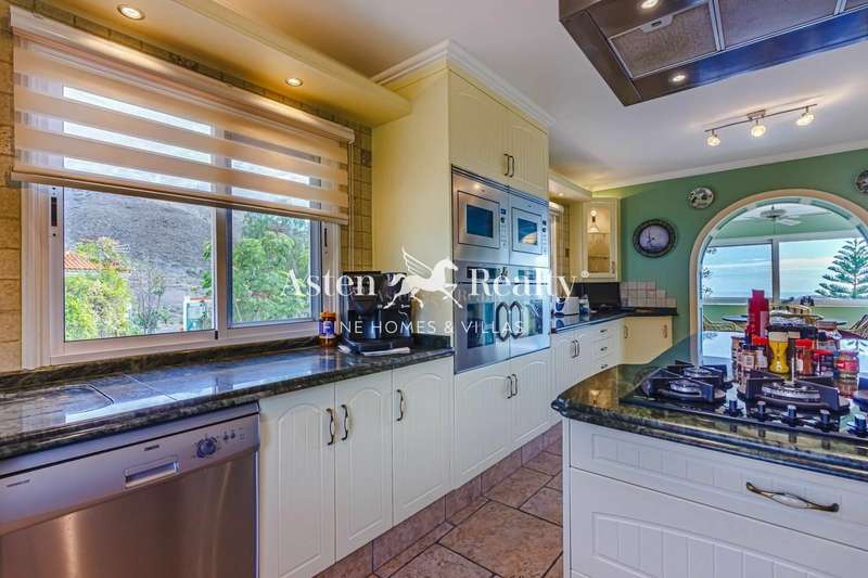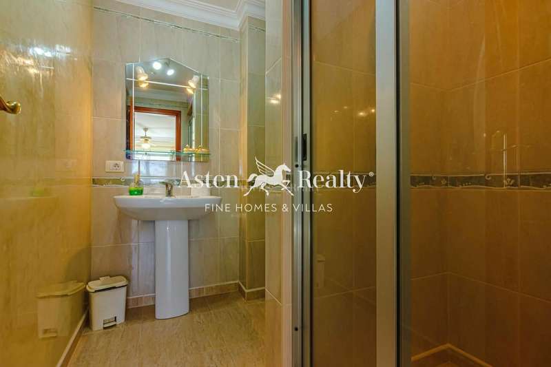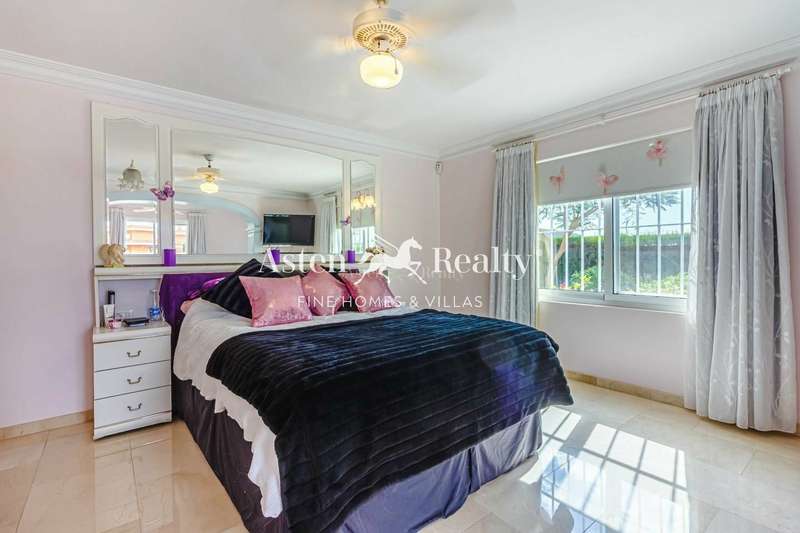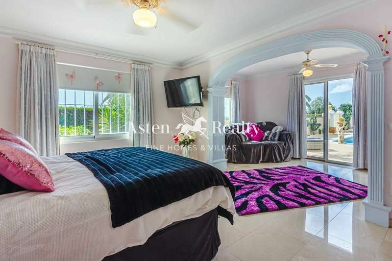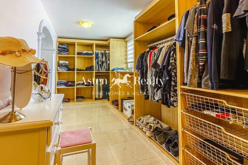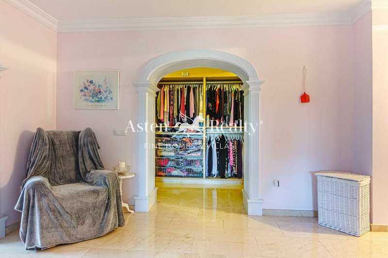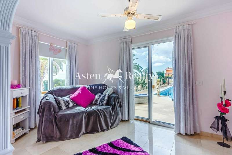 This luxury house with 6 bedrooms and 6 bathrooms a large plot complemented with stunning sea views is located in San Lorenzo Valley. A place where you can enjoy beauty and loneliness with your family and receive guests! The ground floor of the house covers a total area of 412 m2, and distributed as follows: The main entrance to the house with a hall and a marble staircase, six bedrooms. The rooms overlook the well-kept garden and the sea, and of the three there is direct access to the pool. Each room has a bathroom, fitted wardrobes. The master bedroom is connected to two dressing rooms. Two living rooms on the ground floor, a part of one is converted to a billiard room. On the ground floor there is also an office and a gym, a bathroom. The kitchen on the ground floor is currently used as a laundry room and utility room and has direct access to the garage for two cars. First floor with a total area of 140 m2 consists of a large main kitchen with an islet and fully equipped plus a spacious living and dining room with chimney, a library, a home cinema room, a relaxation room with panoramic windows and a terrace with Seaview. Direct access to the solarium with an area of 228 m2. On the underground floor there is a room for pool machines, a water purification system. Heated pool of 15/5 m2. Solar panels. The house is surrounded by a beautiful garden with fruit trees and exotic plants. The garden area is 1180 m2. The total land area of 3000 m2. The villa has a separate technical house and a 300 liter water collector.
