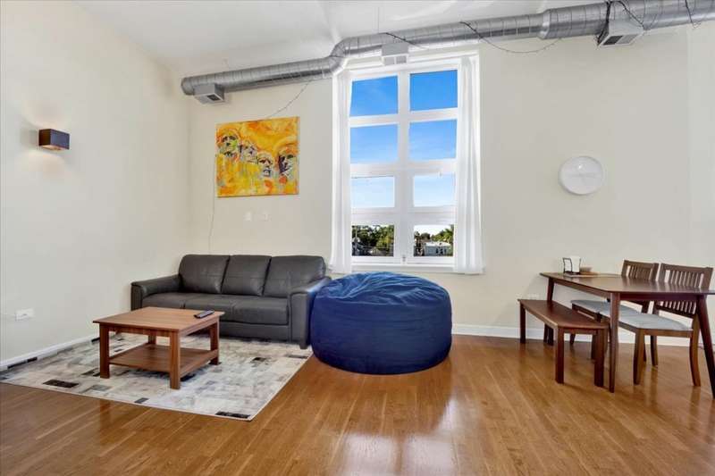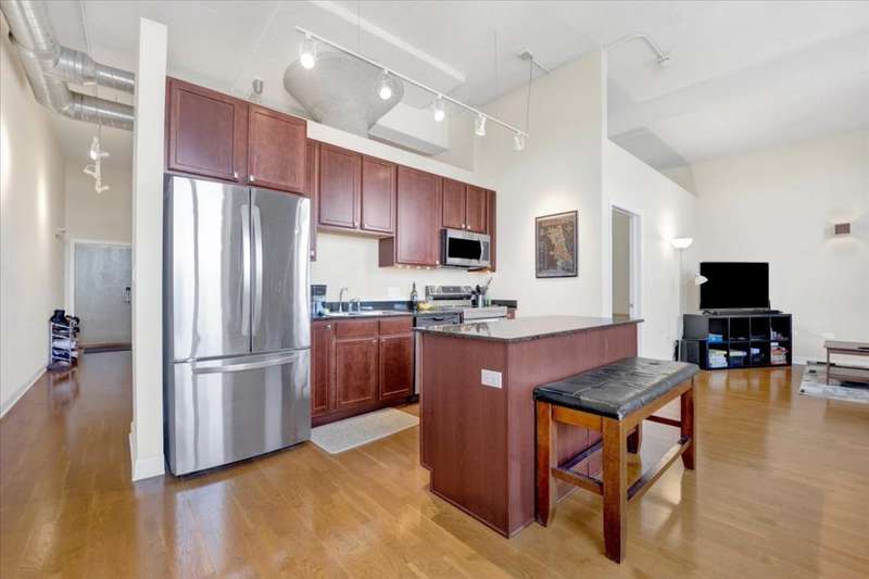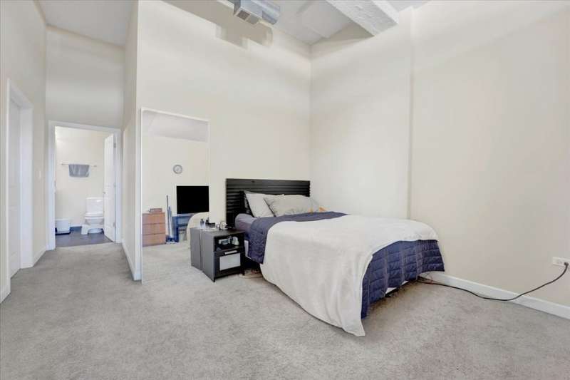 This unit will take your breath away! Filled with natural light coming through huge, North facing windows, features high ceilings and hardwood floors in the living area; this very spacious unit can be configured as a 2 bedroom or a 1 bedroom with an office/den; the modern kitchen features an island, SS appliances including a dishwasher and 42 cabinets; separate dining area, and a vast living room, ideal for true loft living; exposed beams, concrete pillars, high ceilings, all contribute to the uniqueness of this space; the large primary bedroom closet leads to a Jack & Jill bathroom with a walk in shower; hardwood floors, granite countertops, stainless steel appliances, and the convenience of an in-unit washer and dryer all add to the appeal of this fantastic home; Garage parking is included in the price! Tenant pays electric only.