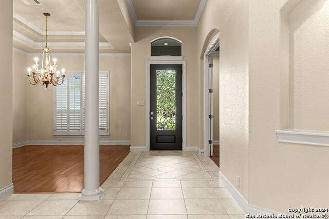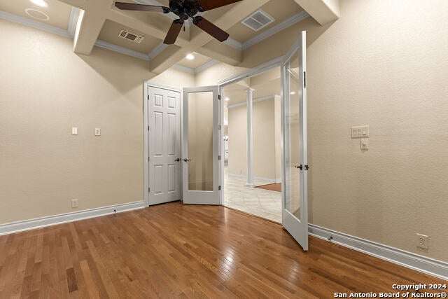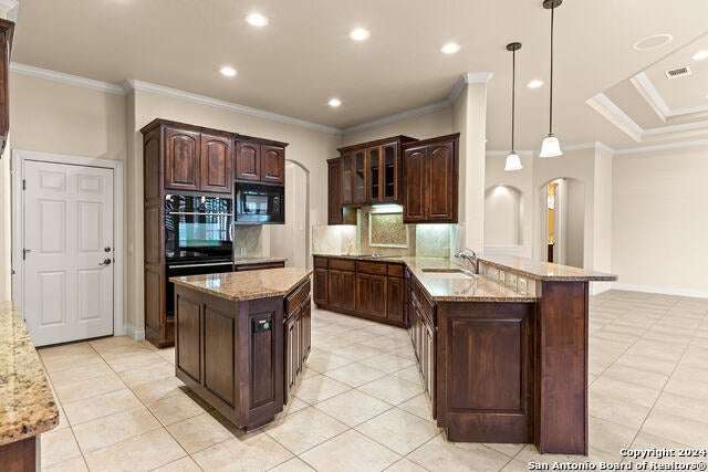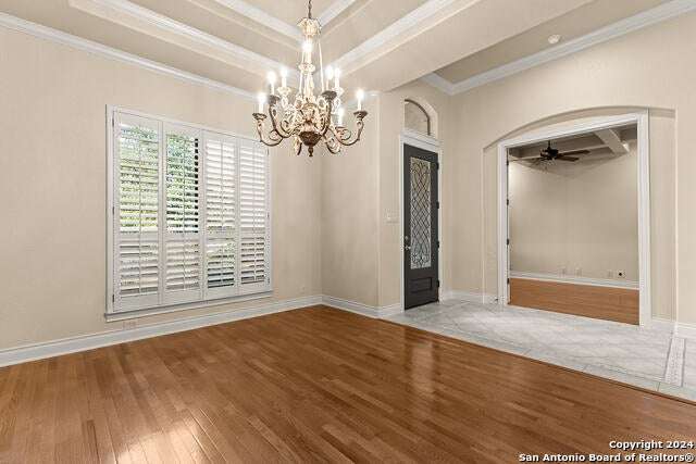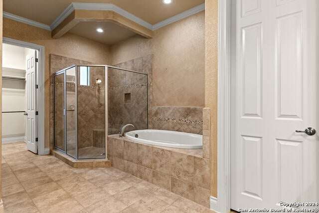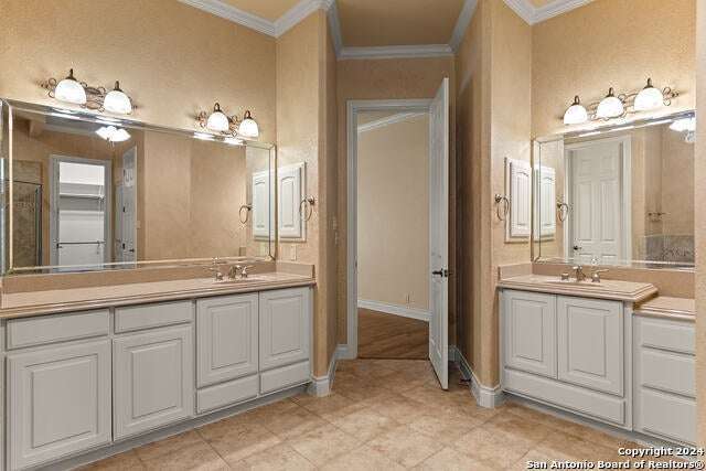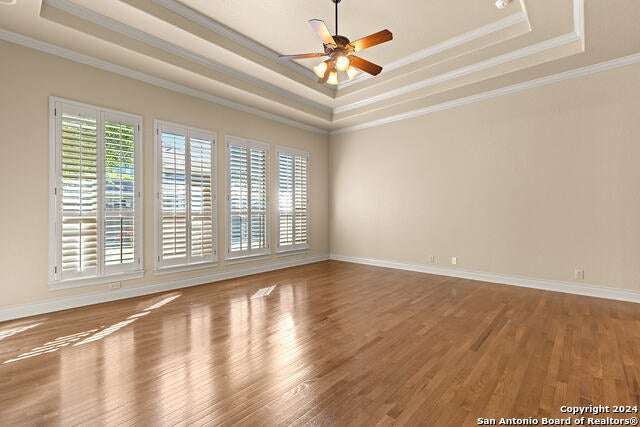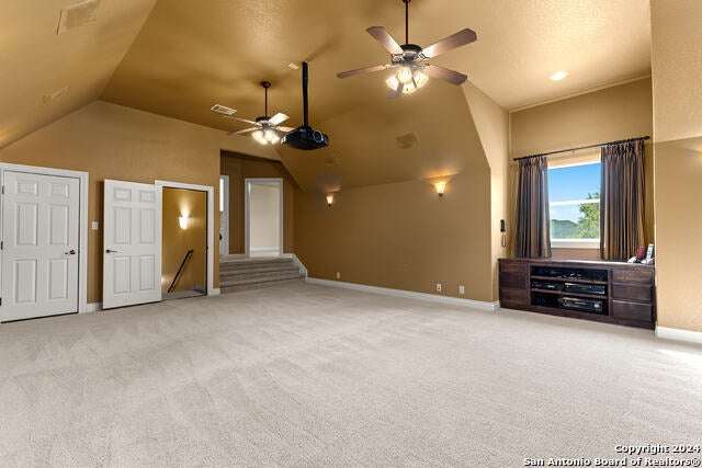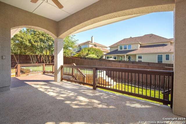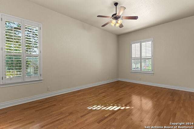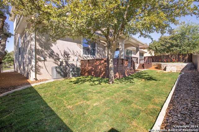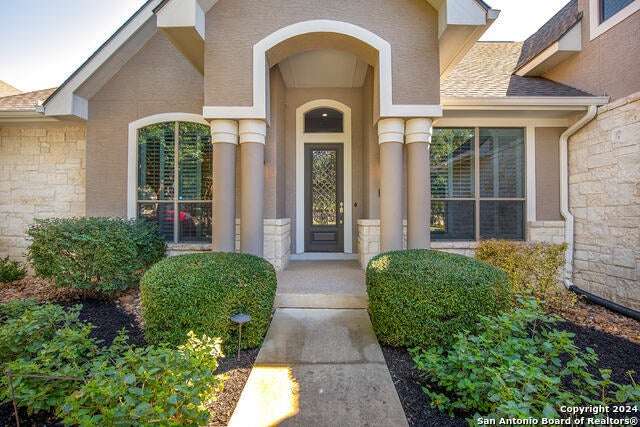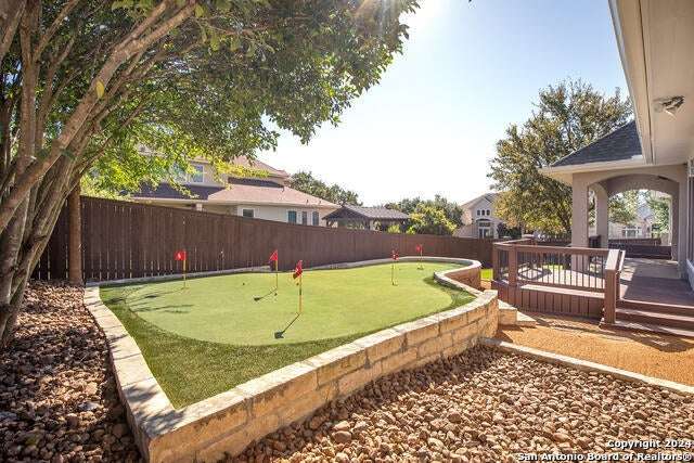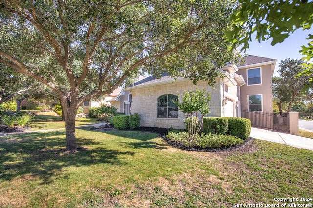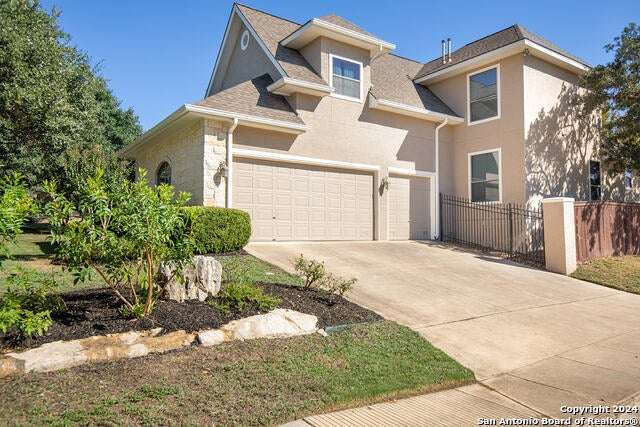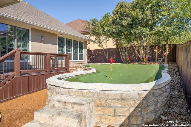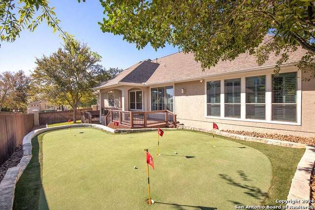 Luxury spacious home located in the sought after beautiful gated community of Rogers Ranch/Point Bluff. First floor features formal dining, large family room, study with French doors, gourmet island kitchen with granite countertops, custom cabinets, and breakfast area. Primary suite includes walk-in closet with built ins and master bathroom with separate shower/whirlpool tub and dual vanities. Two additional downstairs bedrooms with a jack and jill bath, plus additional bedroom upstairs with full bath. Large media room upstairs to include projector and screen. Tile and wood throughout downstairs. Plantation shutters throughout the downstairs Private backyard with a covered patio and open decks. For the golfer in the family, they will love the putting green in the backyard. Easy access to 1604, close proximity to parks, restaurants, schools and shopping.