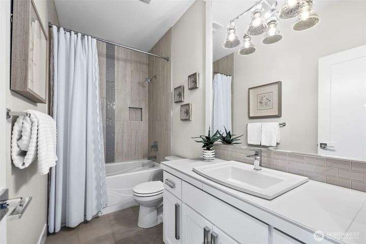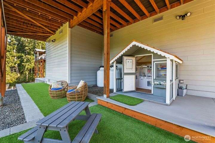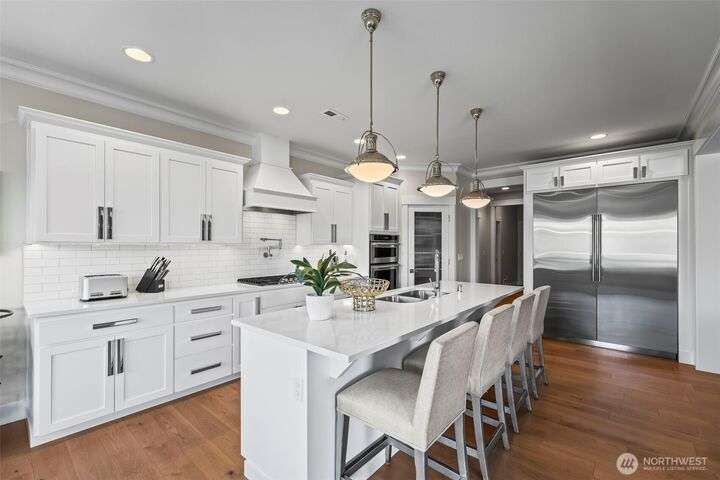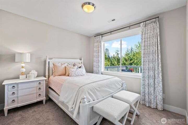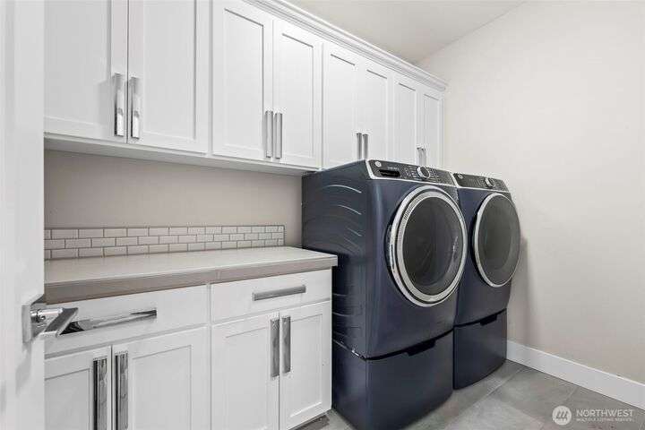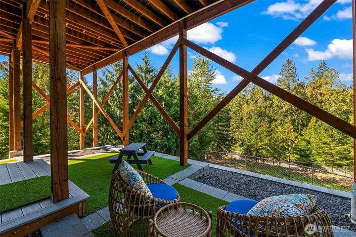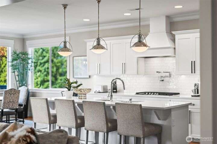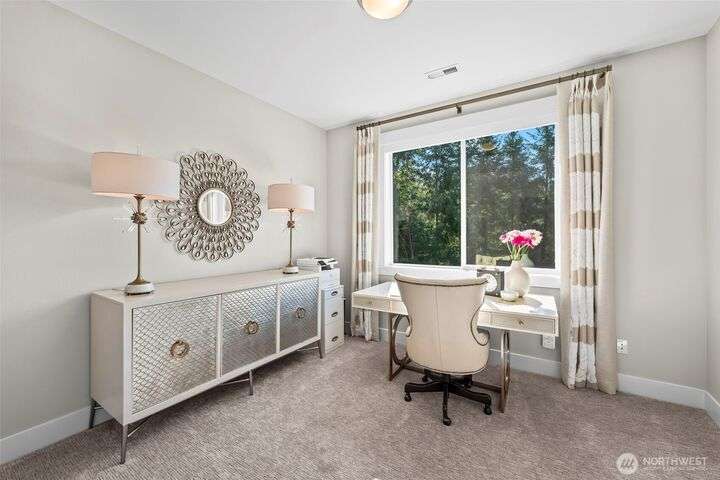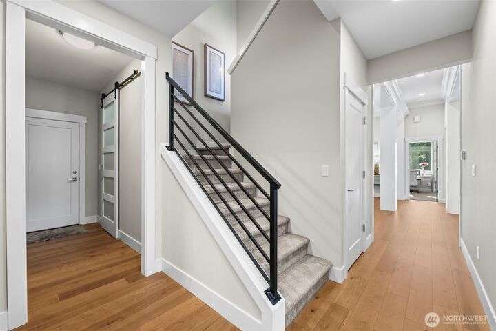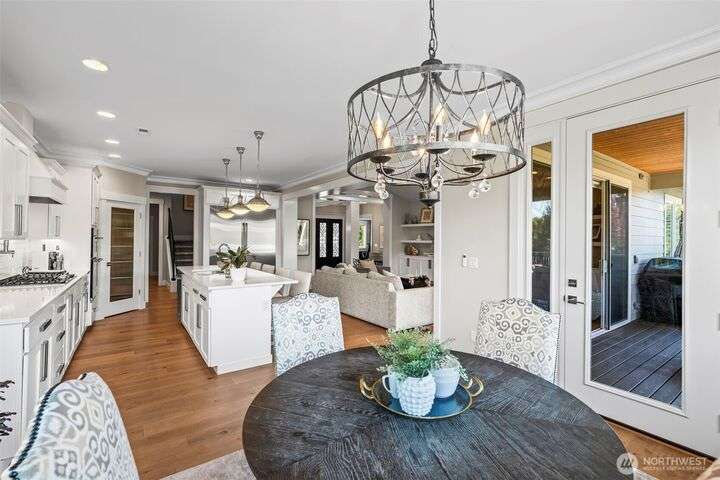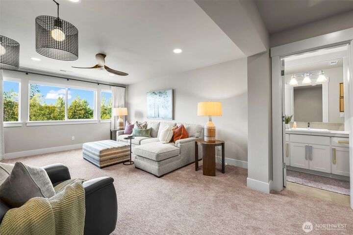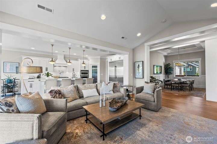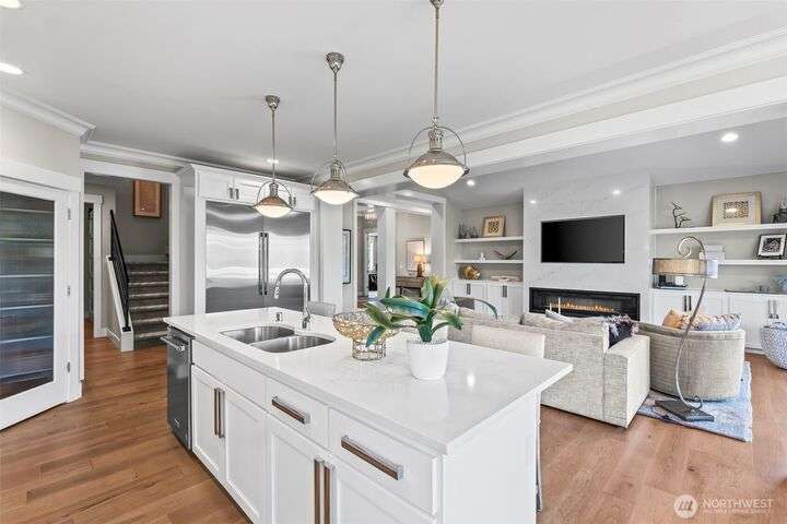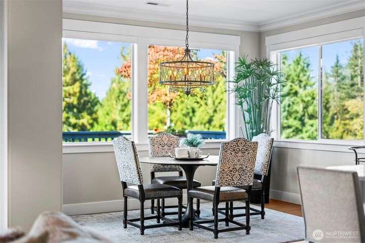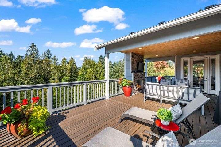 Sophisticated, sleek, and in a class of its own. Behind the gates of Trinity Ridge this MAIN FLOOR living home sits on a sun-filled lot and showcases hundreds of thousands in curated custom details, timeless finishes, and flawless condition. Everyday living is elevated here. A statement fireplace wrapped in custom marble serves as the elegant centerpiece, while the easy-care outdoor space lets you spend more time living, not maintaining. You'll find the primary retreat, library, two additional bedrms, formal dining and utility room all on the main. Upstairs, a versatile bonus rm, full bath, large flex space. 900 sf finished storage below. Entertain with ease in the great room or on the expansive deck that captures the best of PNW living.