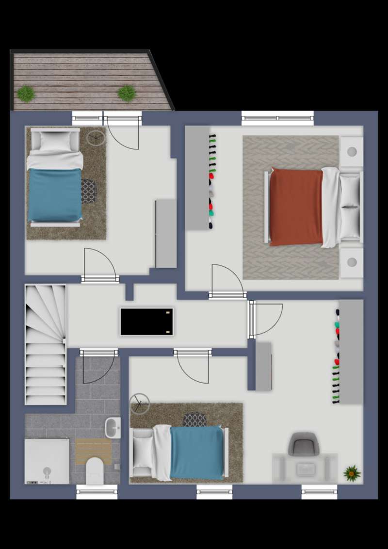 This terraced house in Wolfenbüttel is located in a well-kept residential area and offers 109 m² of living space on a plot of 309 m². Originally built in 1967, the house was modernized in 1984 after a change of ownership. The property has parquet flooring in parts and comprises 4.5 rooms. The guest WC is located in the vestibule of the entrance area. A small hallway with stairs leading up and down follows. To the right is the kitchen with a passageway to the open-plan dining/living room area, which is L-shaped and faces west and offers a beautiful view of the landscaped garden through a large sliding glass element. A terrace in front invites you to relax. Upstairs there are three bedrooms of different sizes and the master bathroom with a shower. One of the rooms also has a small west-facing balcony. In the hallway on the upper floor, an electrically extendable staircase leads up to the converted attic, which can be used as a hobby room or storage space. attic, which can be used as a hobby room or a quiet retreat. Electricity and heating are available. The basement of the house consists of four rooms, one of which houses the gas heating system with hot water tank. A sturdy fence borders the property and the landscaped garden, with a west-facing terrace.