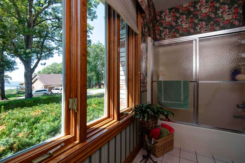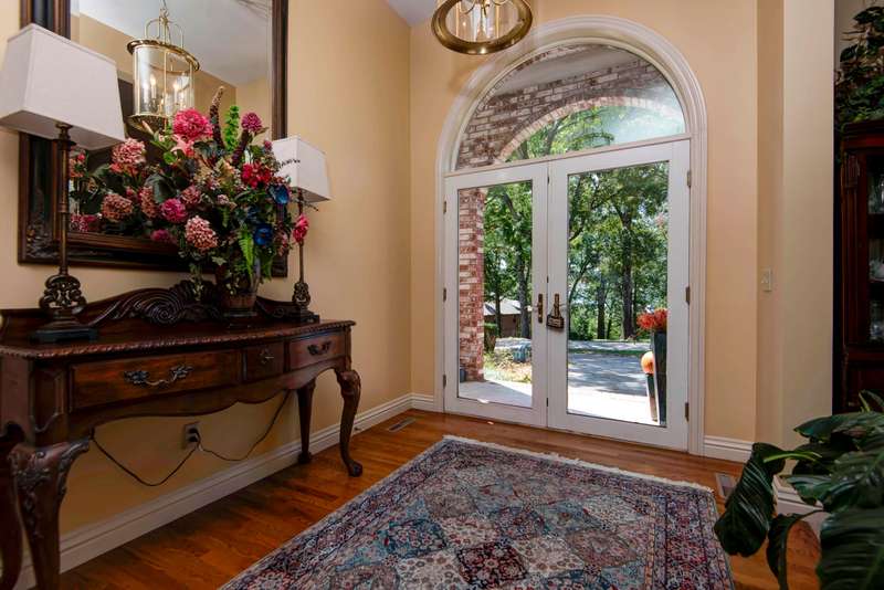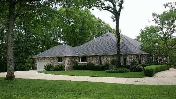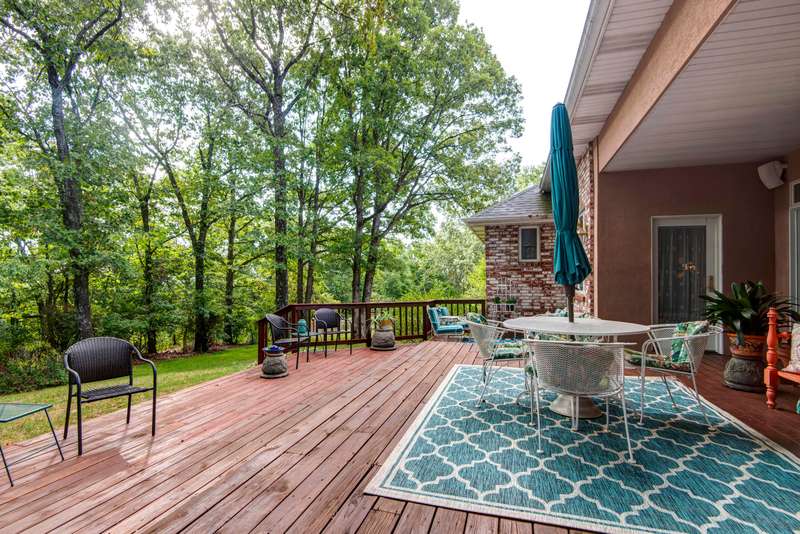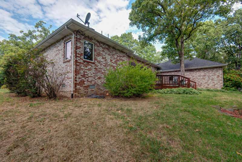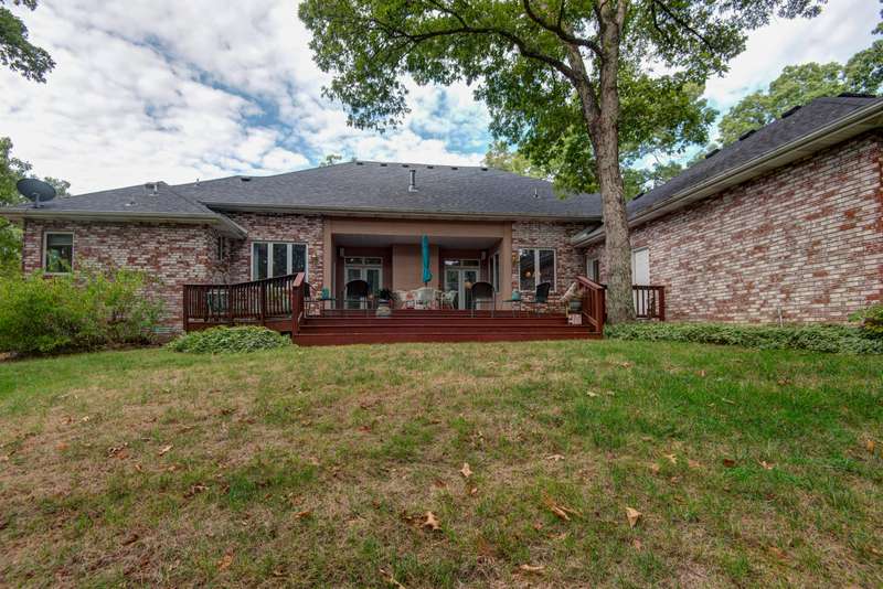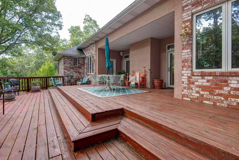 Won't last long! Don't wait to look at this home! 70K Price Reductution! Near Pristine Table Rock Lake, This custom designed sprawling ONE-LEVEL 3,649 SQFT HOME with 2 Living Areas is adorned with maintenance free handsome brick exterior, perched on a one-acre plus lot. A side entry garage with an extra large concrete driveway & a front circle drive gives ample parking for guest get-togethers! A large partially recessed back deck provides nice views of the wooded part of the lot for wildlife viewing & privacy. Built with 2x6 wall construction & Hurd wood encasement windows for timeless quality. Upon entering, you'll find solid oak hallways and kitchen flooring for protection and beauty in high traffic areas. A spacious formal dining room as well as a separate breakfast area awaits. All rooms have tall ceilings throughout with oak trim. The gourmet kitchen with island and built-in office desk features oak cabinets, a induction cooktop, built-in oven and microwave, trash compactor, dishwasher, and the refrigerators stays as well. Check out the dream laundry room with more cabinets than most kitchens. 2 Living Areas. The living room is elegant with tall ceilings and a gas fireplace. A Spacious family room is perfect for company and game nights. Each bedroom has its own walk-in closet. Central vacuum throughout. Spacious master bedroom with room for loveseat (sitting area), and coffered ceiling with recessed ambience lighting. Master bath with dual vanities, corner jetted tub, and walk-in shower. Custom designed draperies throughout. Other special features include alarm system with 2 keypads, 2 HVAC Units for zoned areas, Leafgaurd gutter system, and lawn sprinkler system. Conveniently located near State Park Marina which is only 10 minutes way, or Table Rock State Park, Moonshine Beach, or 76 Country Blvd. This one-owner home has been lovingly maintained and is move in ready.
