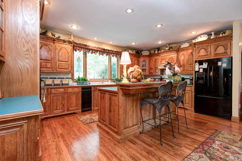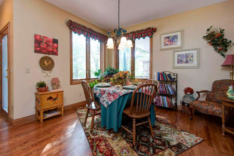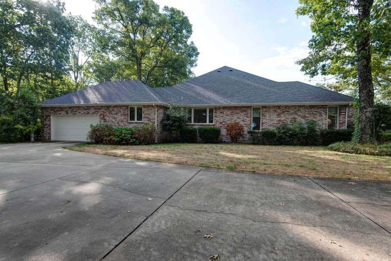 Near Pristine Table Rock Lake, This custom designed sprawling ONE-LEVEL 3,649 SQFT HOME with 2 Living Areas is adorned with maintenance free handsome brick exterior, perched on a one-acre plus lot. A side entry garage with an extra large concrete driveway & a front circle drive gives ample parking for guest get-togethers! A large partially recessed back deck provides nice views of the wooded part of the lot for wildlife viewing & privacy. Built with 2x6 wall construction & Hurd wood encasement windows for timeless quality. Upon entering, you'll find solid oak hallways and kitchen flooring for protection and beauty in high traffic areas. A spacious formal dining room as well as a separate breakfast area awaits. All rooms have tall ceilings throughout with oak trim. The gourmet kitchen with island and built-in office desk features oak cabinets, a induction cooktop, built-in oven and microwave, trash compactor, dishwasher, and the refrigerators stays as well. Check out the dream laundry room with more cabinets than most kitchens. 2 Living Areas. The living room is elegant with tall ceilings and a gas fireplace. A Spacious family room is perfect for company and game nights. Each bedroom has its own walk-in closet. Central vacuum throughout. Spacious master bedroom with room for loveseat (sitting area), and coffered ceiling with recessed ambience lighting. Master bath with dual vanities, corner jetted tub, and walk-in shower. Custom designed draperies throughout. Other special features include alarm system with 2 keypads, 2 HVAC Units for zoned areas, Leafgaurd gutter system, and lawn sprinkler system. Conveniently located near State Park Marina which is only 10 minutes way, or Table Rock State Park, Moonshine Beach, or 76 Country Blvd. This one-owner home has been lovingly maintained and is move in ready.