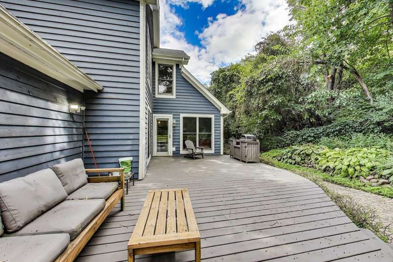 Exclusive Barrington retreat with three finished levels of living! Tucked away on a quiet, low-traffic cul-de-sac, this beautifully renovated home offers unmatched privacy while being just minutes from the Metra, Downtown Barrington, and Countryside Elementary. Set on a picturesque 1+ acre lot, the property features a gentle slope-perfect for winter sledding-and multiple outdoor spaces, including a large wood deck and a charming stone patio designed for entertaining. Inside, natural light fills the premium walk-out family room, complete with a wood-burning fireplace, wet bar, and full bath. The home has been thoughtfully updated throughout with countless upgrades: chef's appliances, a dual-zone HVAC system, and a luxurious primary bath with dual vanities, a separate shower, and a soaking tub. The spacious primary suite also includes a private office/den, ideal for working from home or creating a media retreat. The bright, eat-in kitchen shines with skylights, a built-in banquet bench, and direct access to the outdoor living spaces. Additional highlights include a convenient mudroom with laundry and coat closet off the oversized garage, and abundant storage throughout the home.