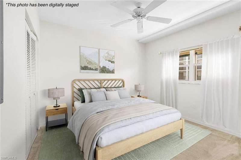 Great investment opportunity at Hibiscus Pointe! This 2bed/2bath condo odffers a split bedroom floor plan perfect for entertaining guests. The primary bedroom features a large walk in closet and ensuite bathroom. Enjoy watching the dolphins and manatees from the oversized lanai! Have peace of mind with electric storm shutters. Condo includes extra storage cage, under building assigned parking and guest parking. Perfectly located on the south end of Fort Myers Beach close to Santini Plaza, restaurants, Lover's Key State Park, easy access to RSW Airport, Bonita Springs, and Naples. Boat docks are available for sale. Community Amenities: Pool, shuffleboard, car wash area and guest parking. EBIA amenities: tennis courts, pickleball, fishing pier, beach parking, walking paths, chipping greens, golf driving cage and DEEDED Beach access.