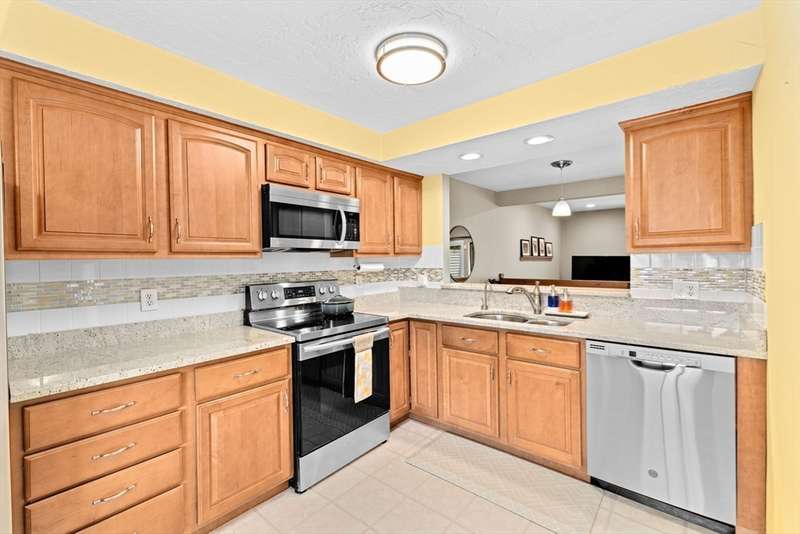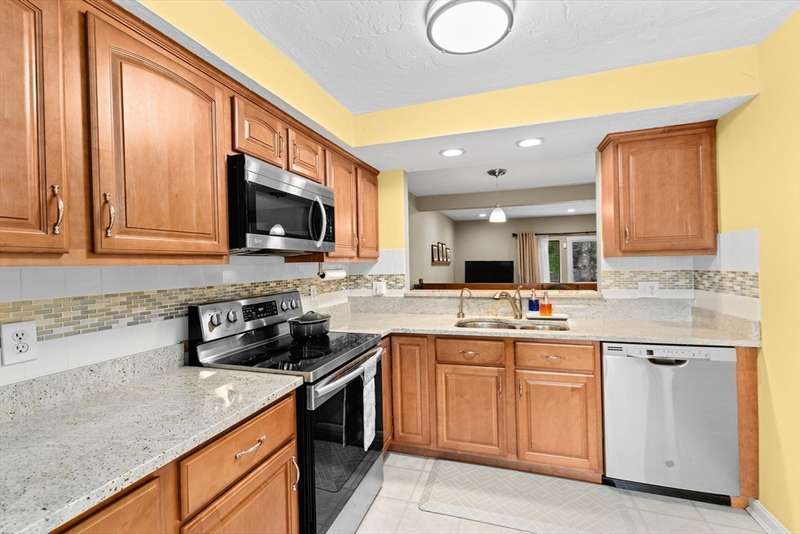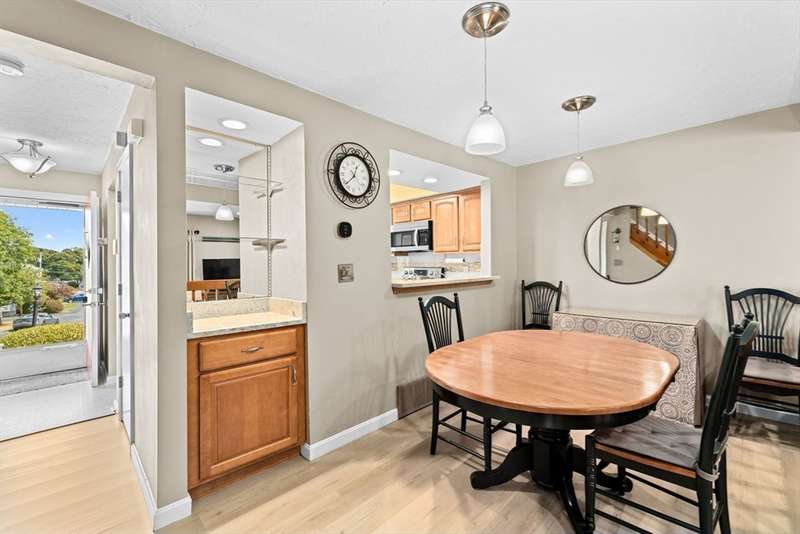 Location, Location, Location! This beautifully updated and maintained unit is in my opinion in one of the best spots in the Pine Brook East community. Set back away from Pleasant Street backing up to a private wooded area. This unit has so much to offer with high ceilings, luxury vinal flooring, updated kitchens & baths. Open floor plan with a fireplaced sunken living room and slider to an oversized deck for entertaining or just relaxing to enjoy the change of seasons. Full basement with pantry closet, washer and dryer and lots of storage. In addition to the many updates over the years there is a new (2024) Heating and Air Conditioning system. Great Commuter location being close to bus to Quincy, commuter rail to Boston, highway access, Jackson Square, South Shore Hospital, restaurants & shopping.