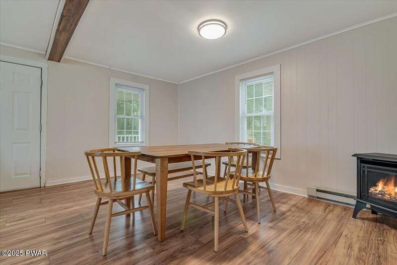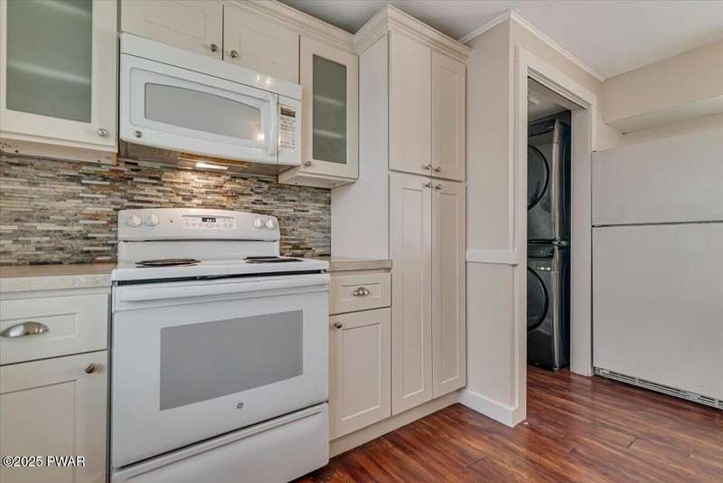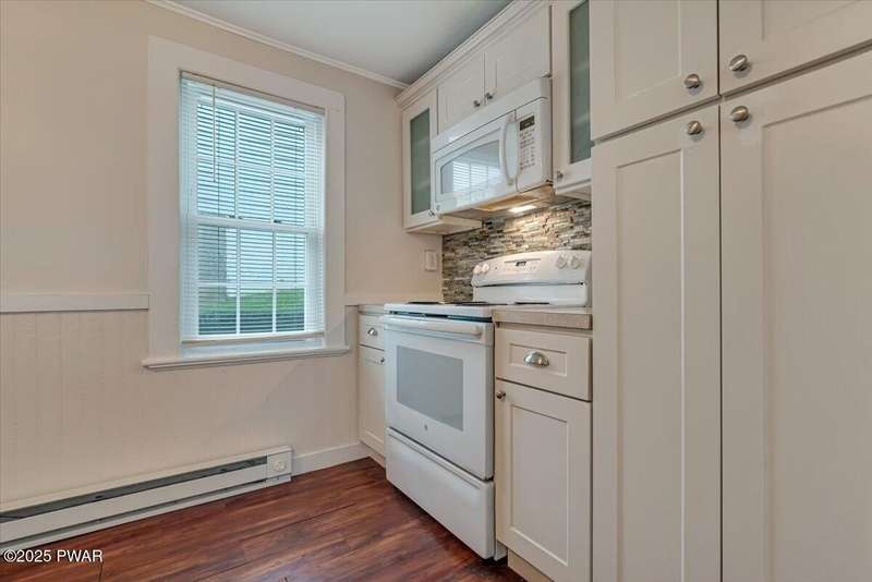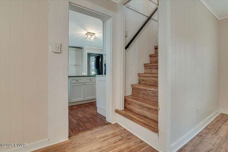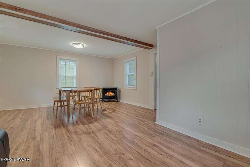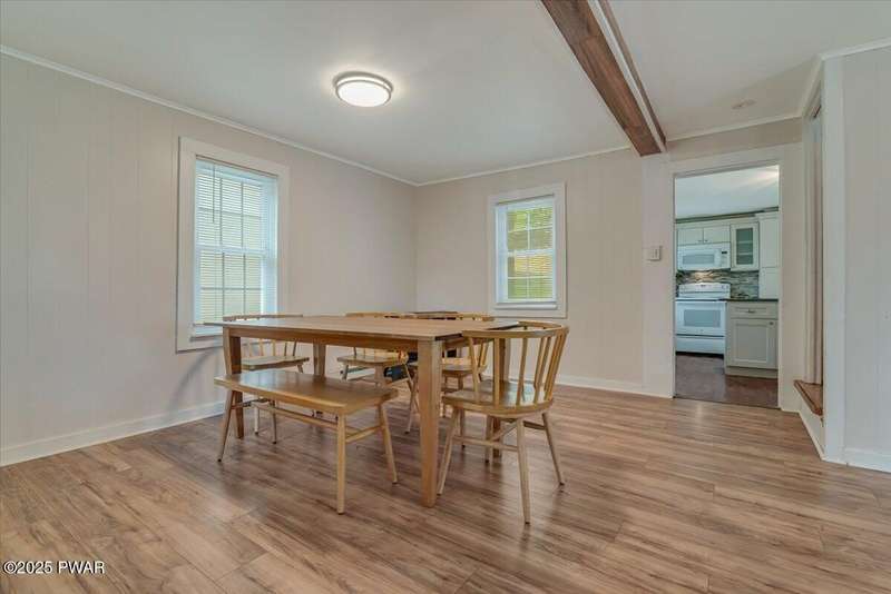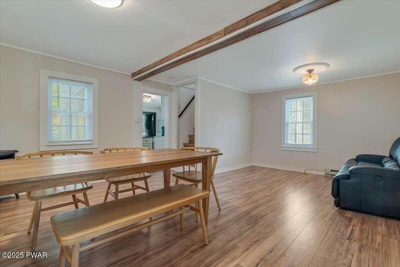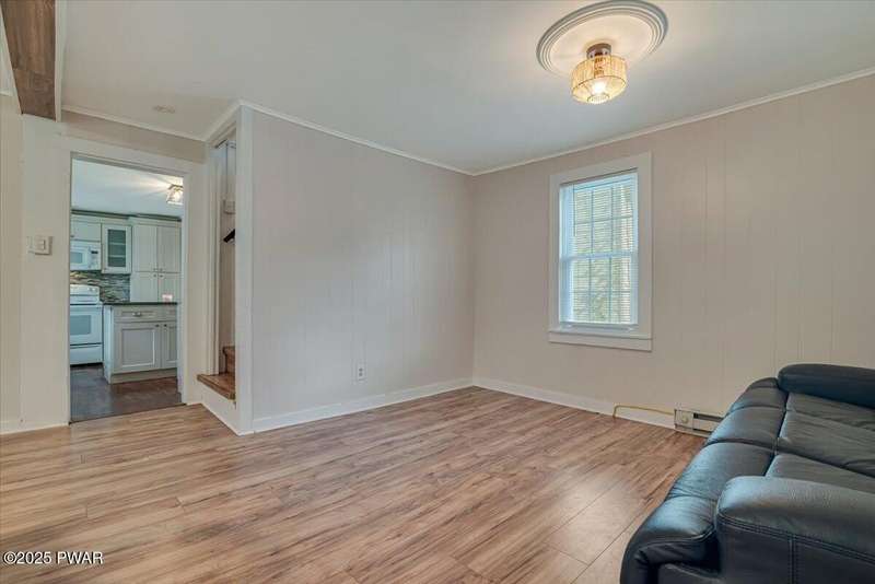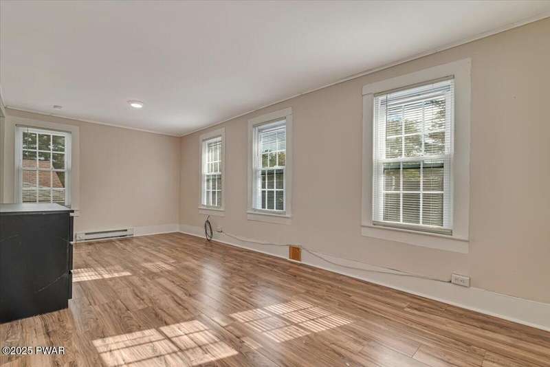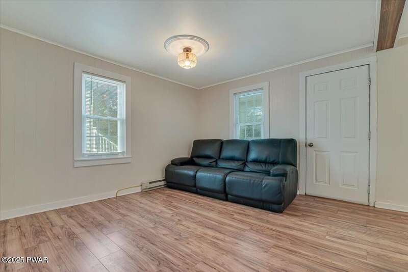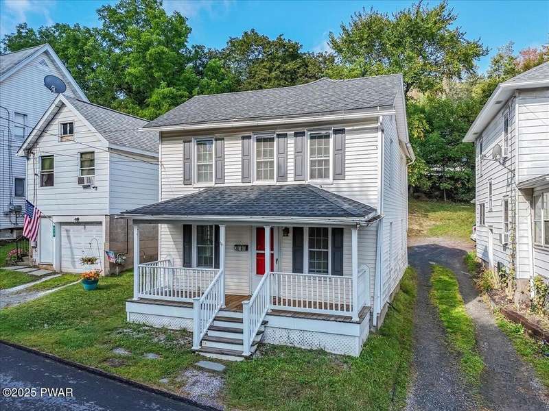 Well-maintained 2 bedroom home in Honesdale featuring a welcoming covered front porch. Inside, the updated kitchen offers a granite center island, tiled backsplash, propane stove, and new laminate flooring. Additional features include a washer & dryer, tankless hot water heater, and an oversized primary bedroom that could easily be converted back into two separate rooms if desired. A shared driveway provides parking for up to 2 vehicles.Recent improvements include a new roof, windows, and updated electric. With its modern upgrades and low-maintenance features, this property is ideal as a starter home, investment, or rental opportunity. Conveniently located close to town, shopping, schools, and local amenities--move-in ready and a great value in Honesdale!