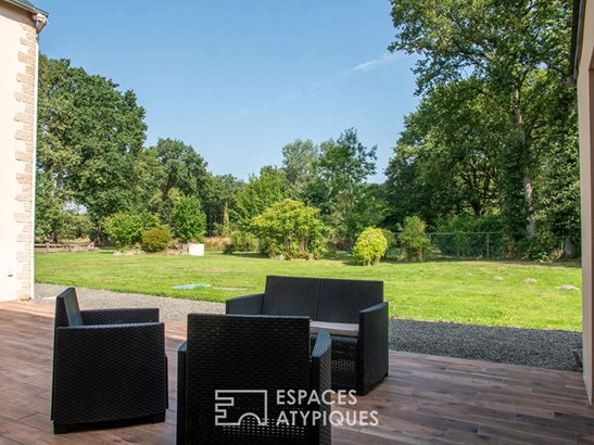 Nestled in a green setting in the Plumaugat countryside, this magnificent property of approximately 294 sqm, established on a plot of more than 2 hectares with a pond, offers an ideal space for relaxing or enjoying outdoor activities.